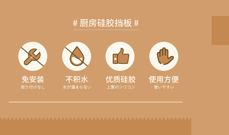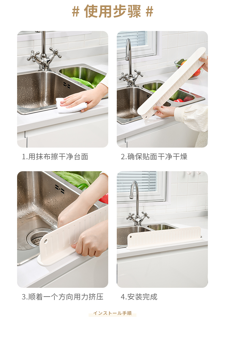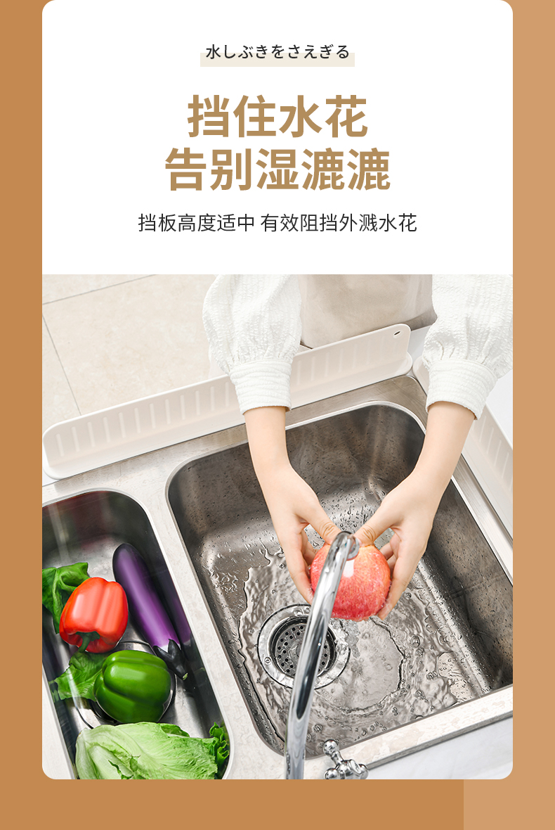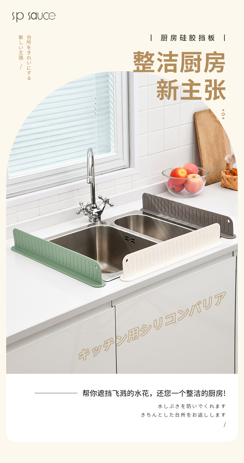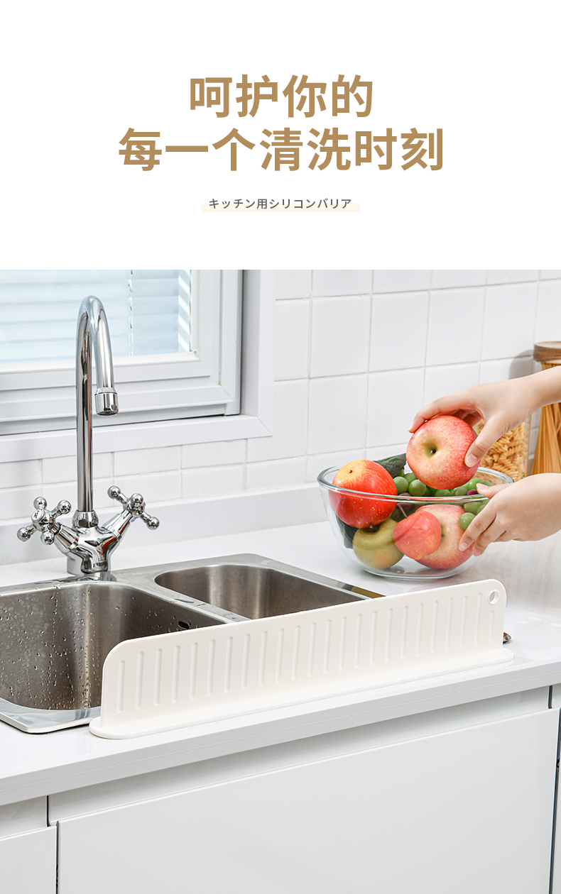 D 厨房硅胶挡水板 厨房水槽洗手台挡水板防溅水挡板水池洗碗池洗菜盆台面防水条硅胶