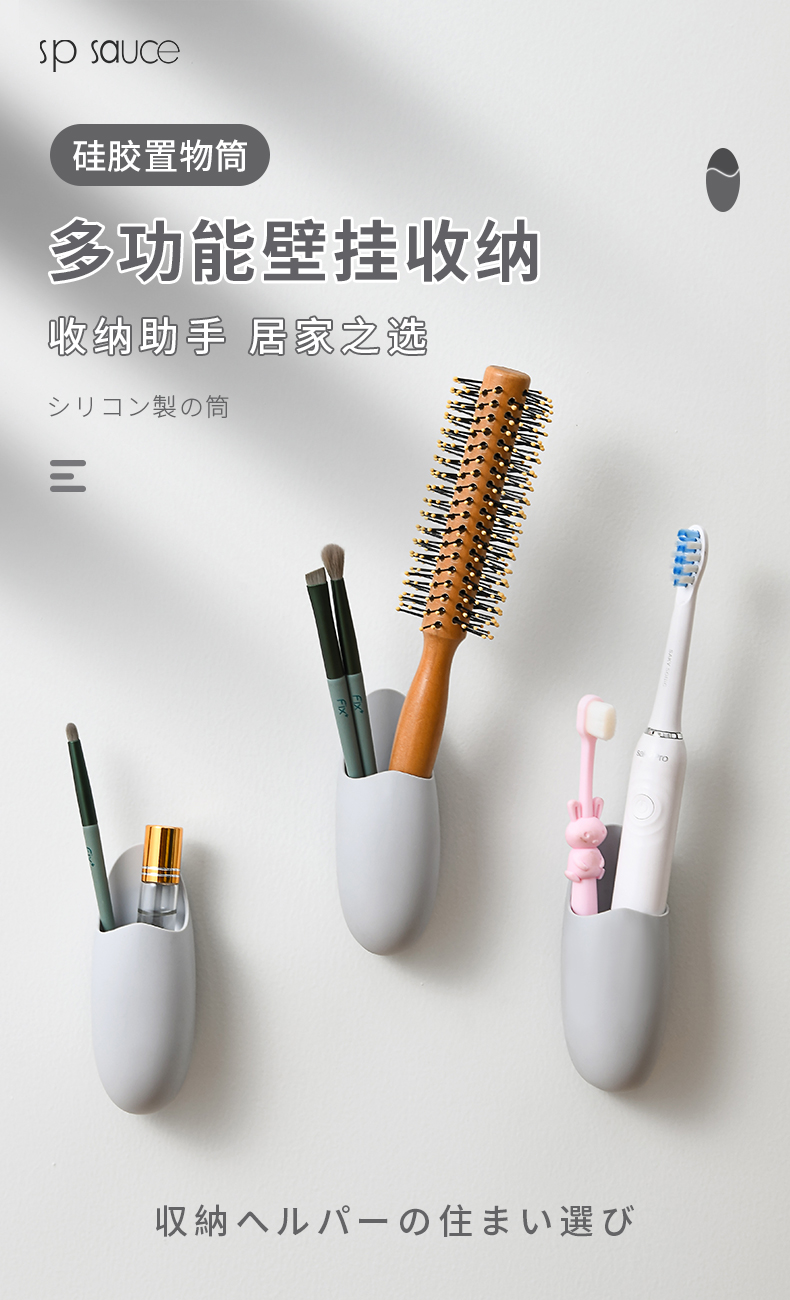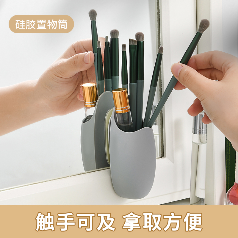 D 硅胶置物筒 硅胶置物筒壁挂置物筒电动牙刷架打蛋器收纳架多功能收纳筒