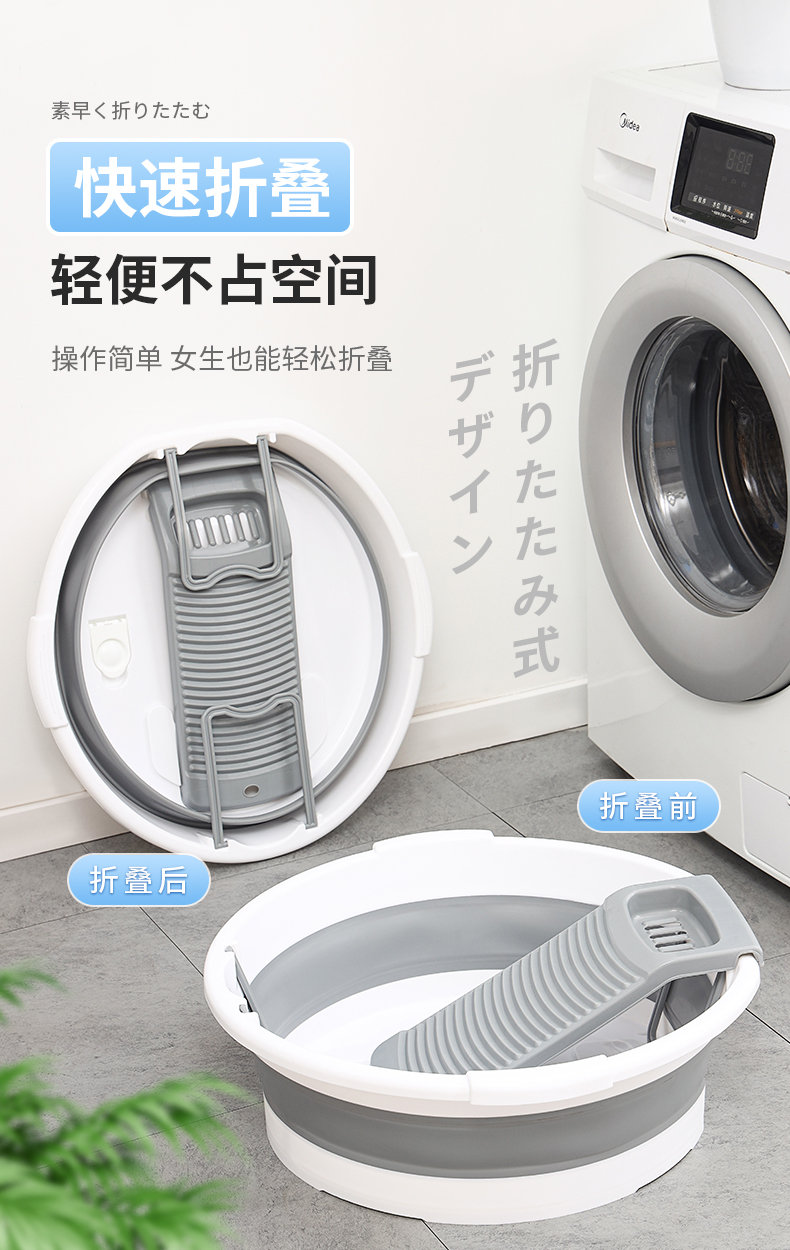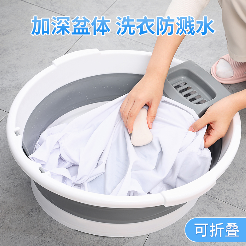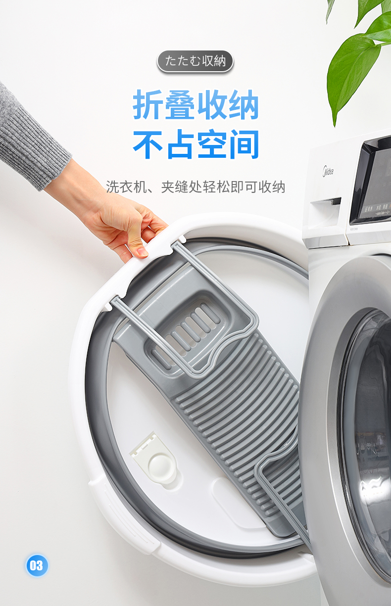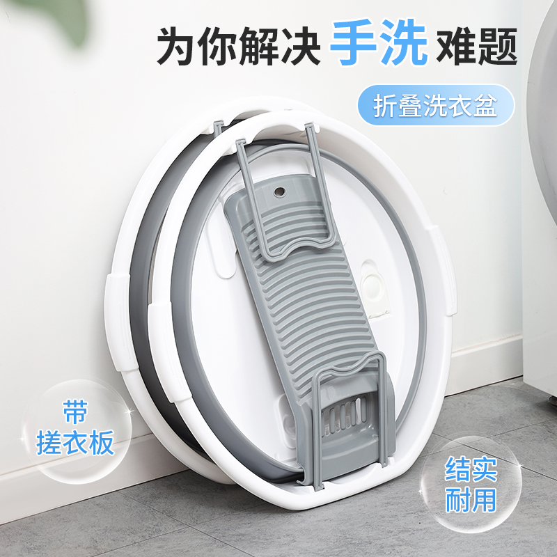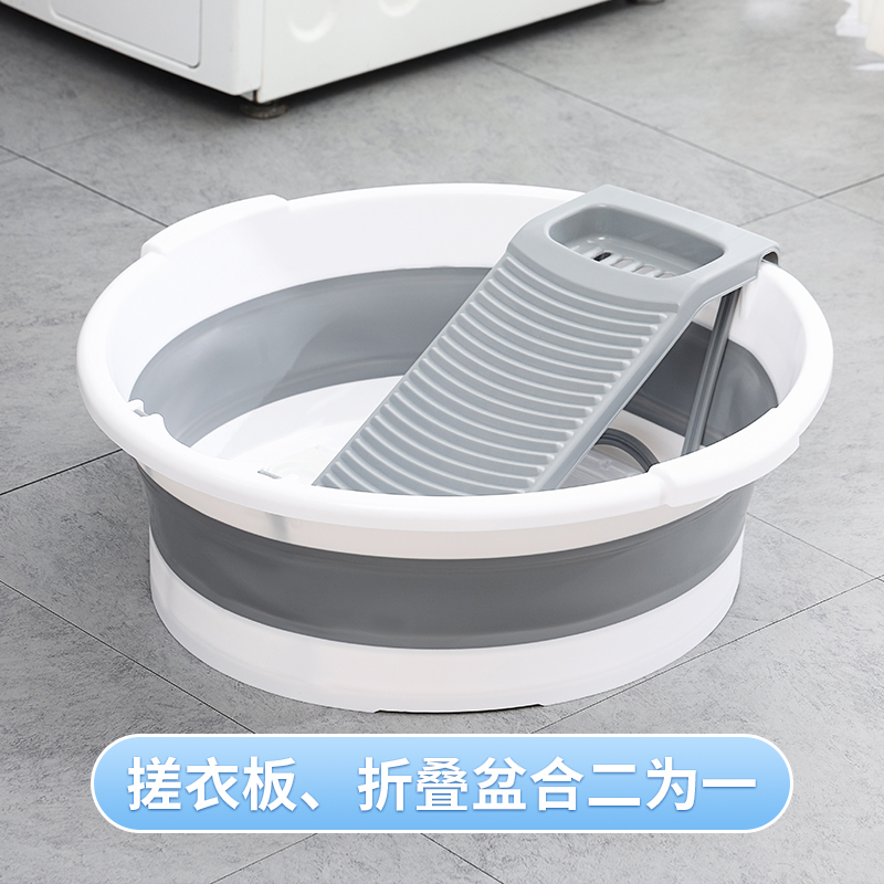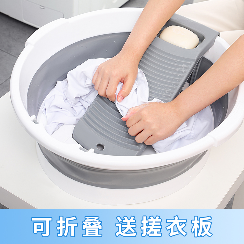 D 折叠洗衣盆 折叠洗衣盆省空间收纳盆窄缝收纳盆大容搓衣盆带搓衣板盆子