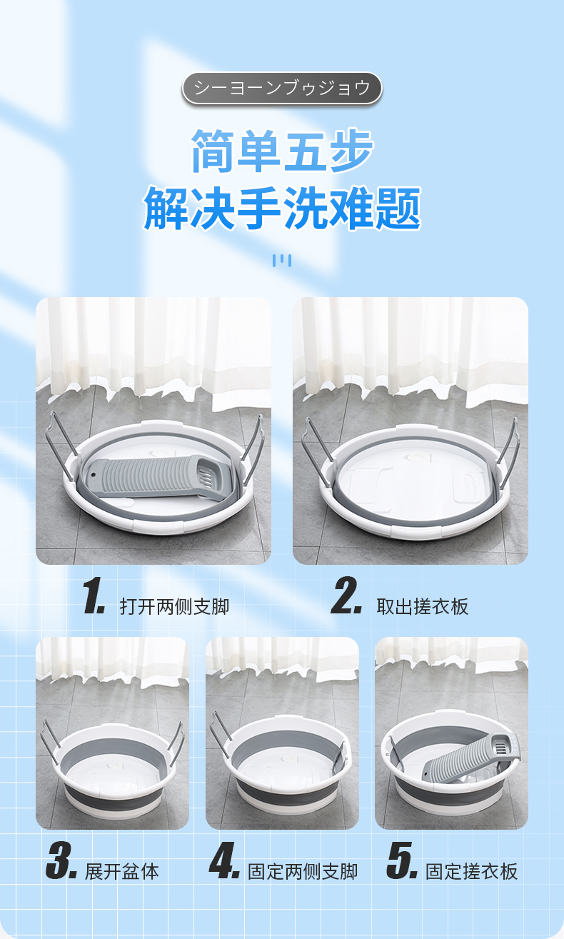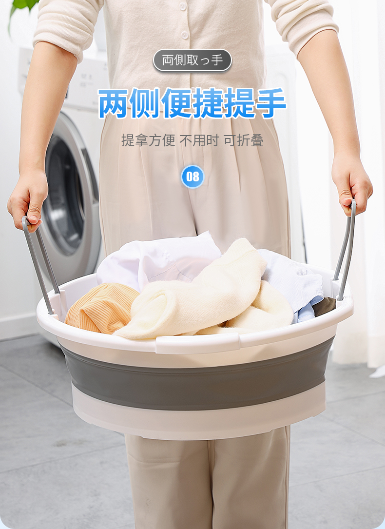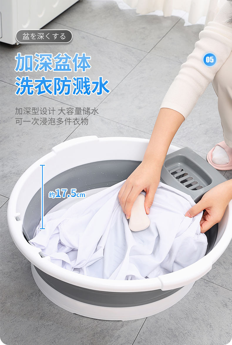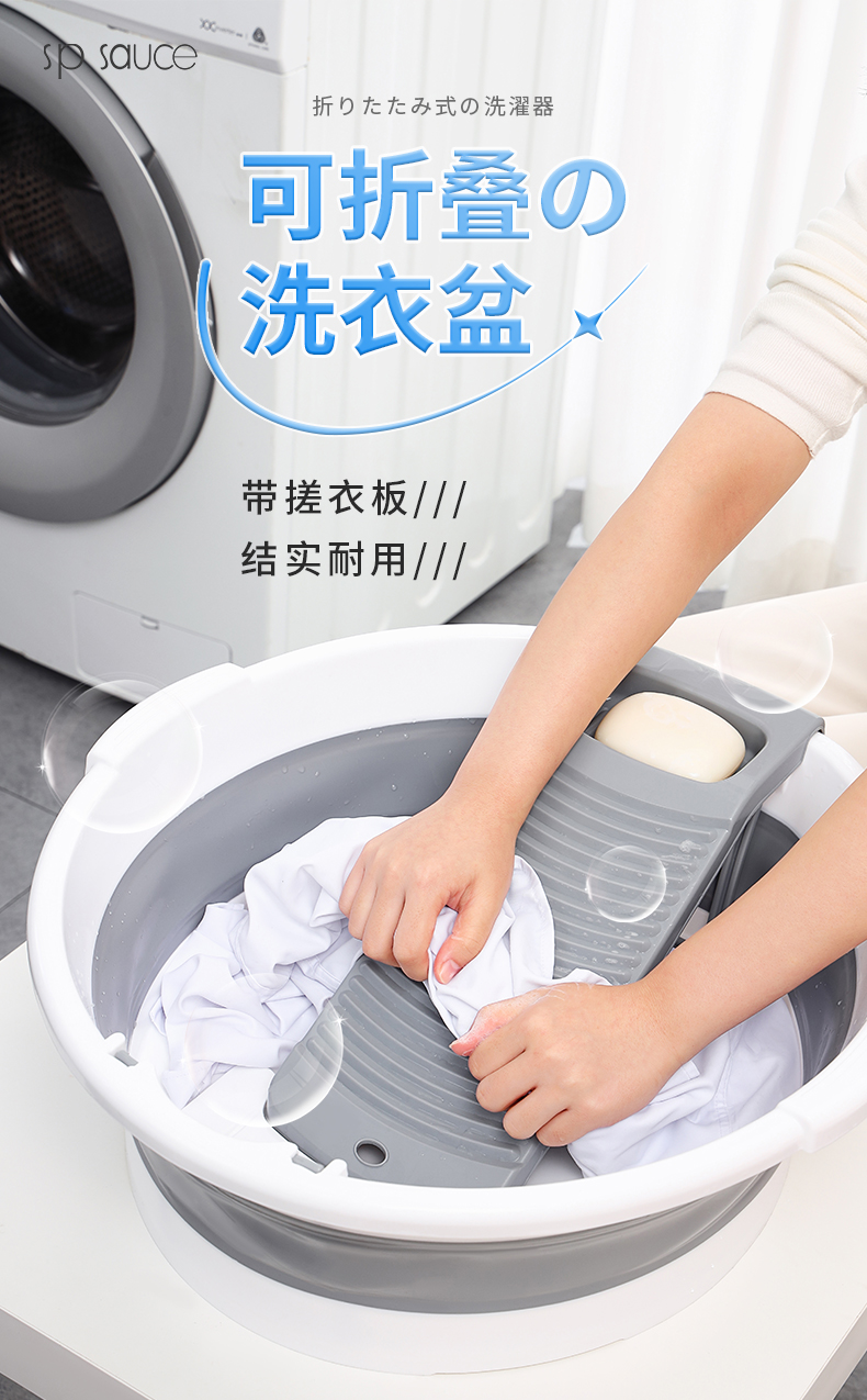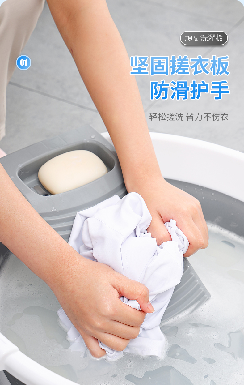 D 折叠洗衣盆 折叠洗衣盆省空间收纳盆窄缝收纳盆大容搓衣盆带搓衣板盆子