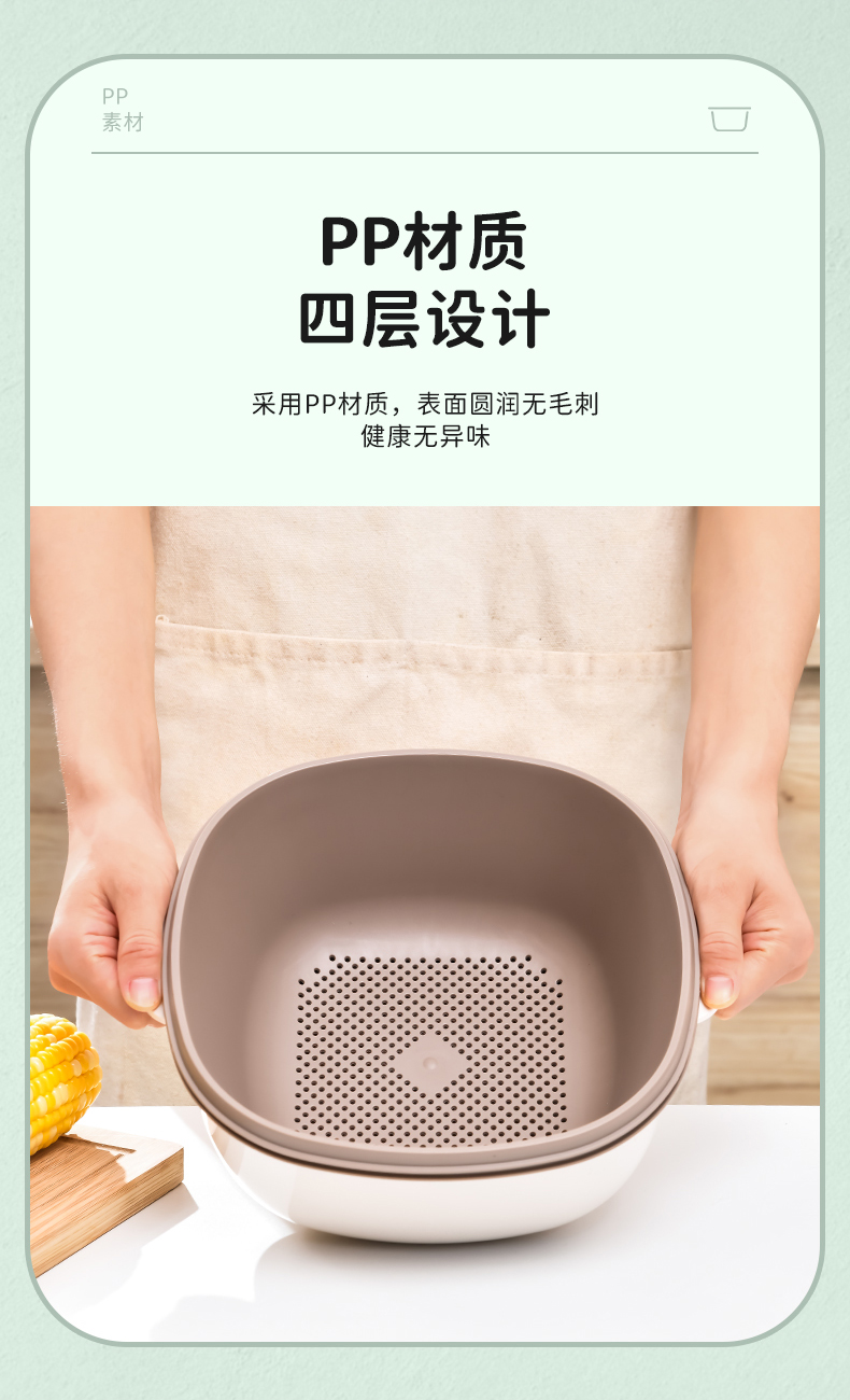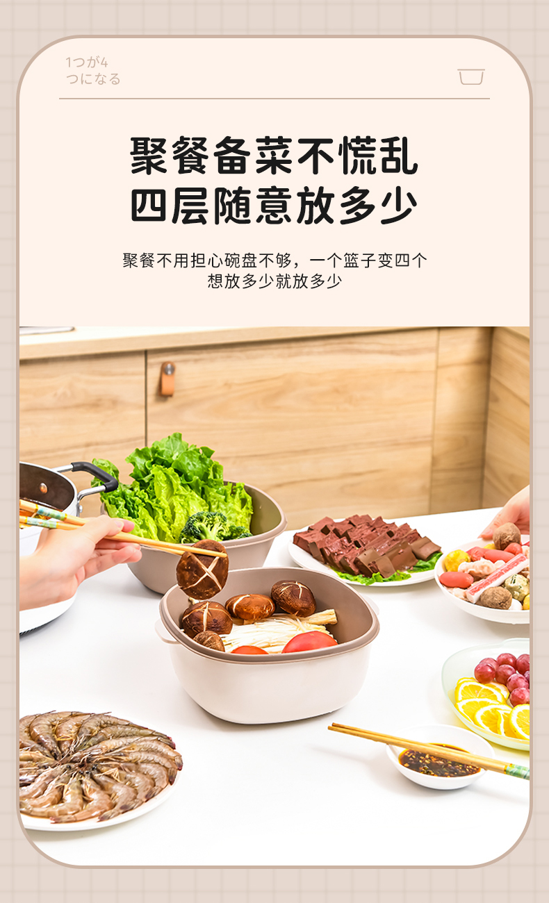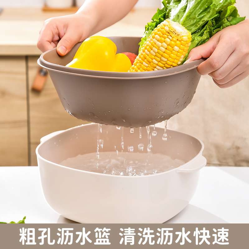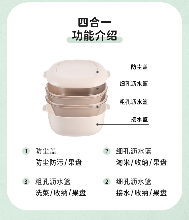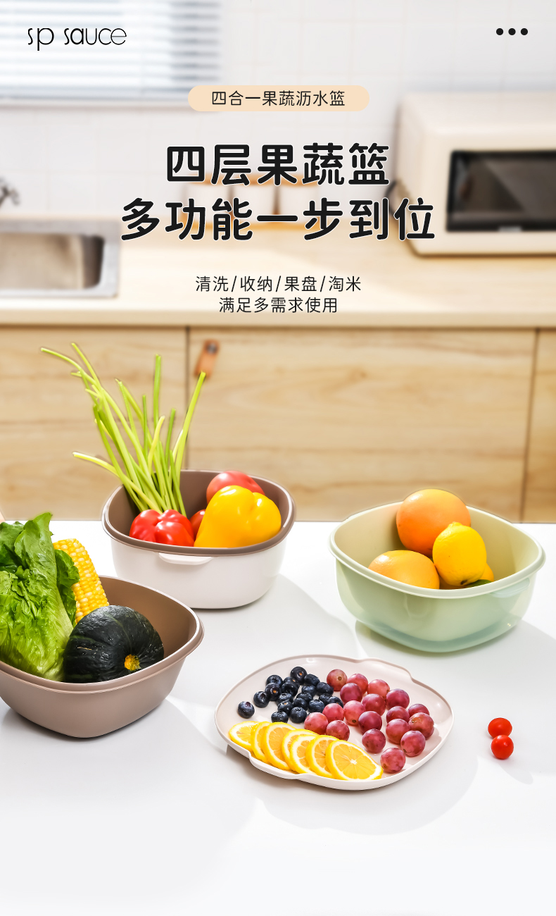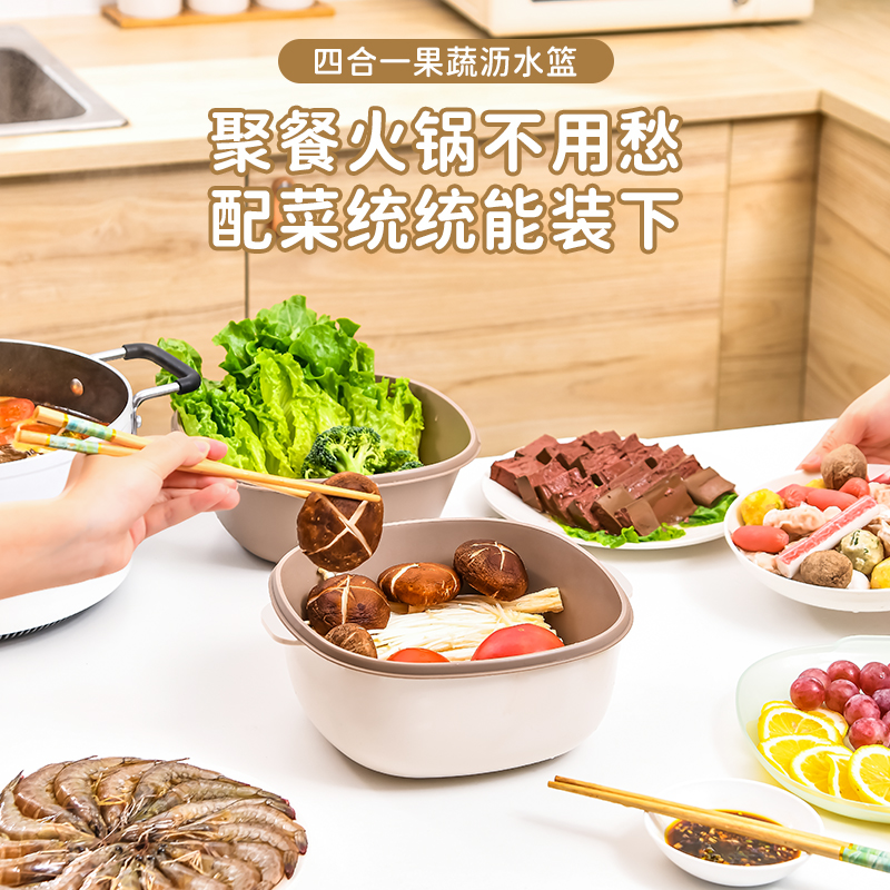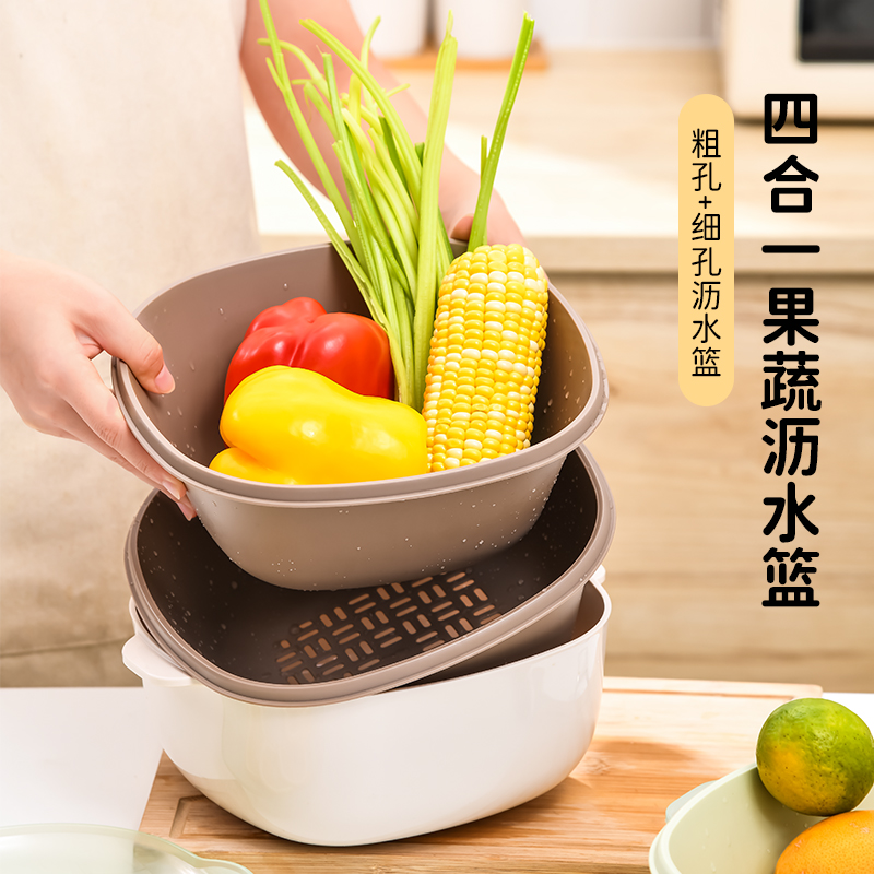 D四合一果蔬沥水篮 四合一洗菜盆沥水篮淘米篮厨房客厅家用淘米神器洗菜篮洗水果盘子