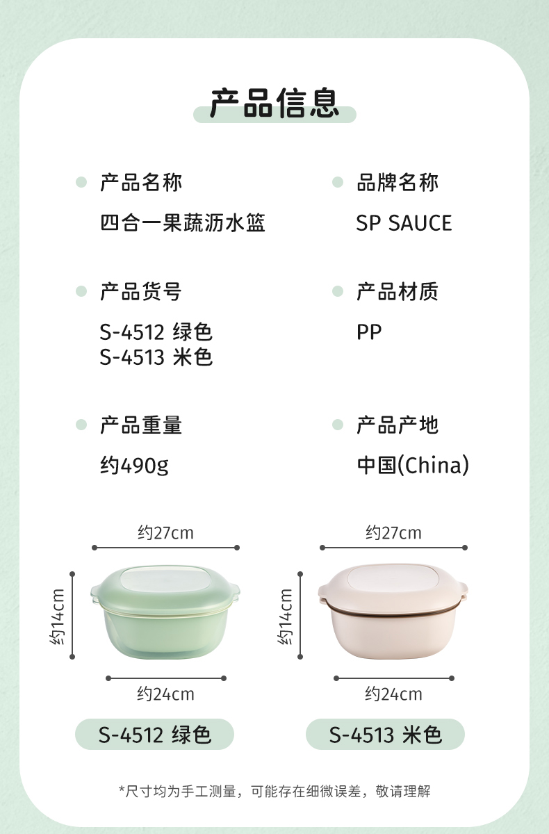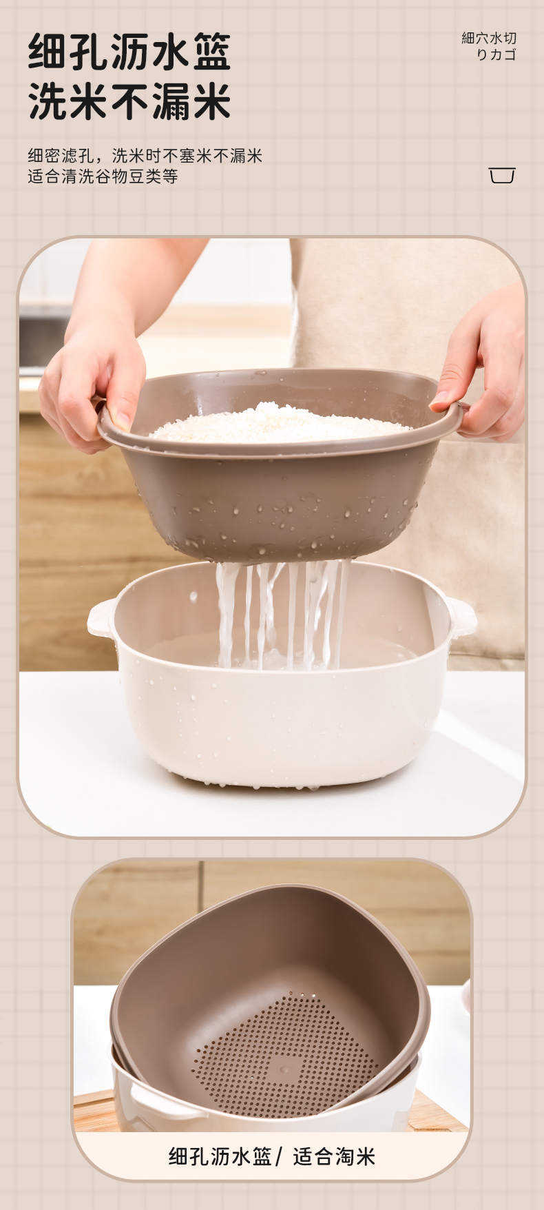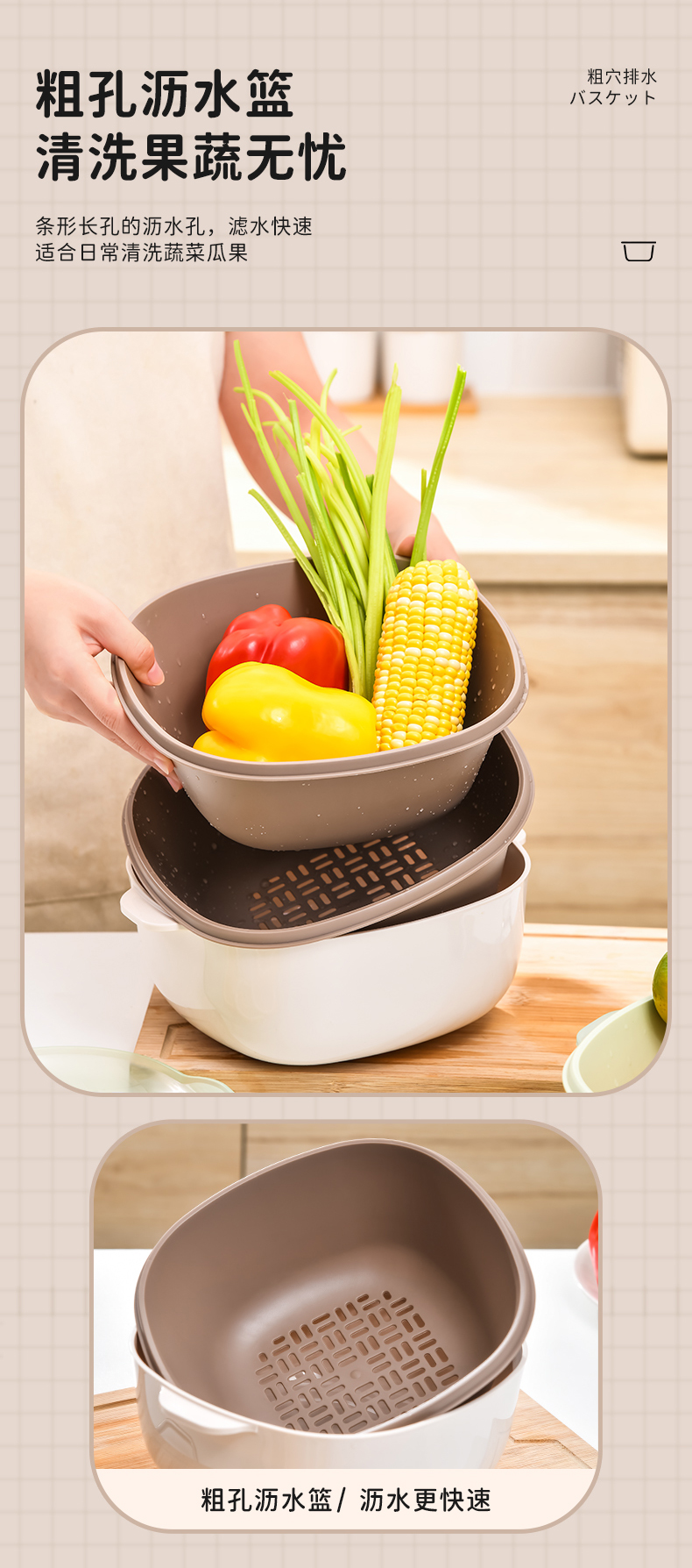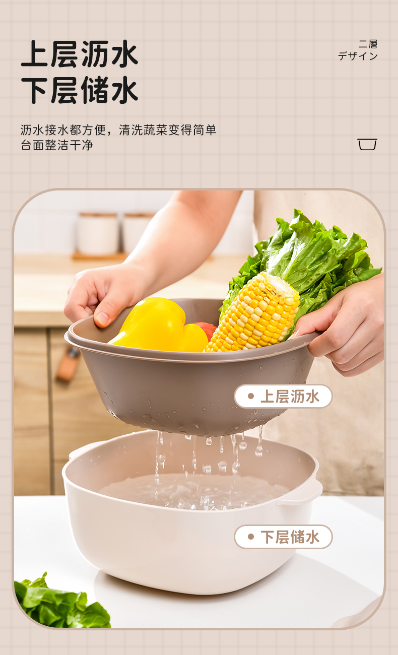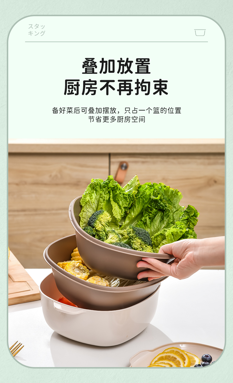 D四合一果蔬沥水篮 四合一洗菜盆沥水篮淘米篮厨房客厅家用淘米神器洗菜篮洗水果盘子