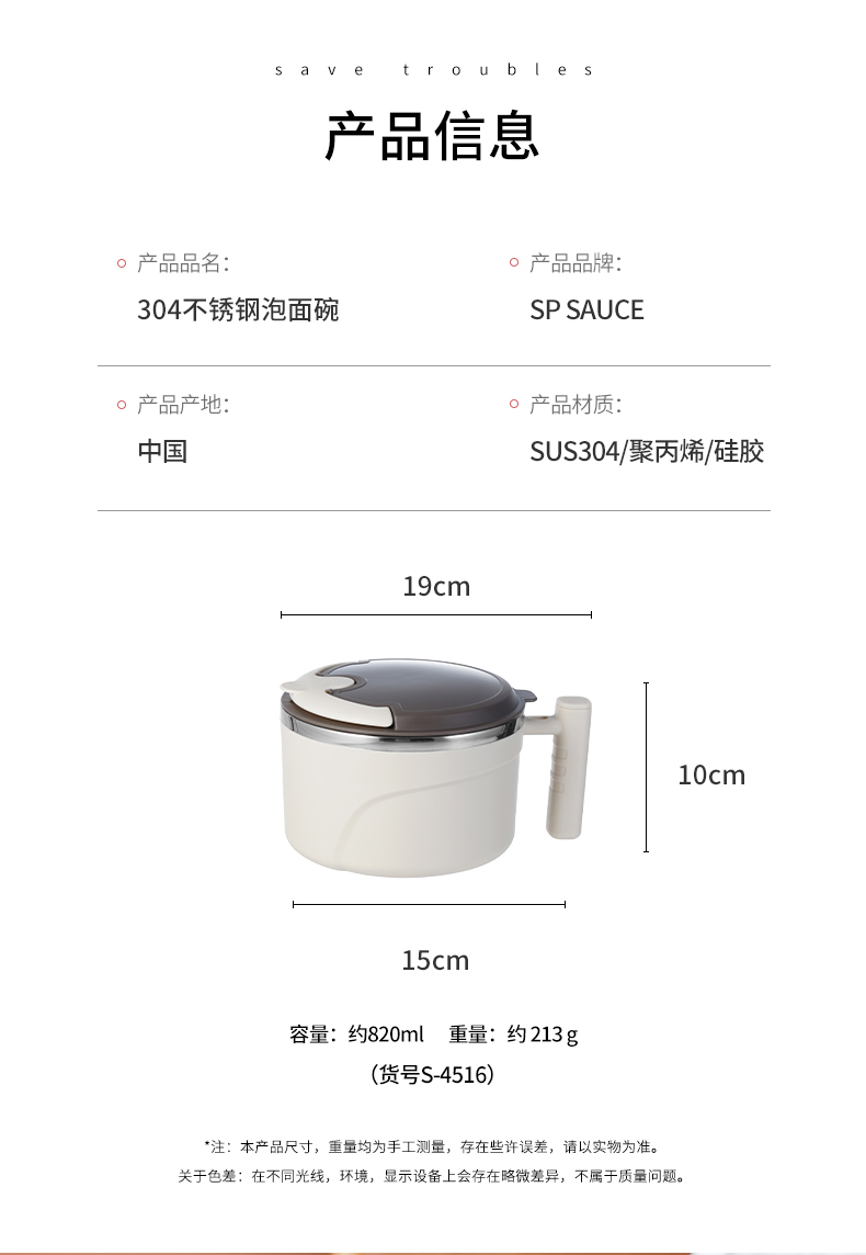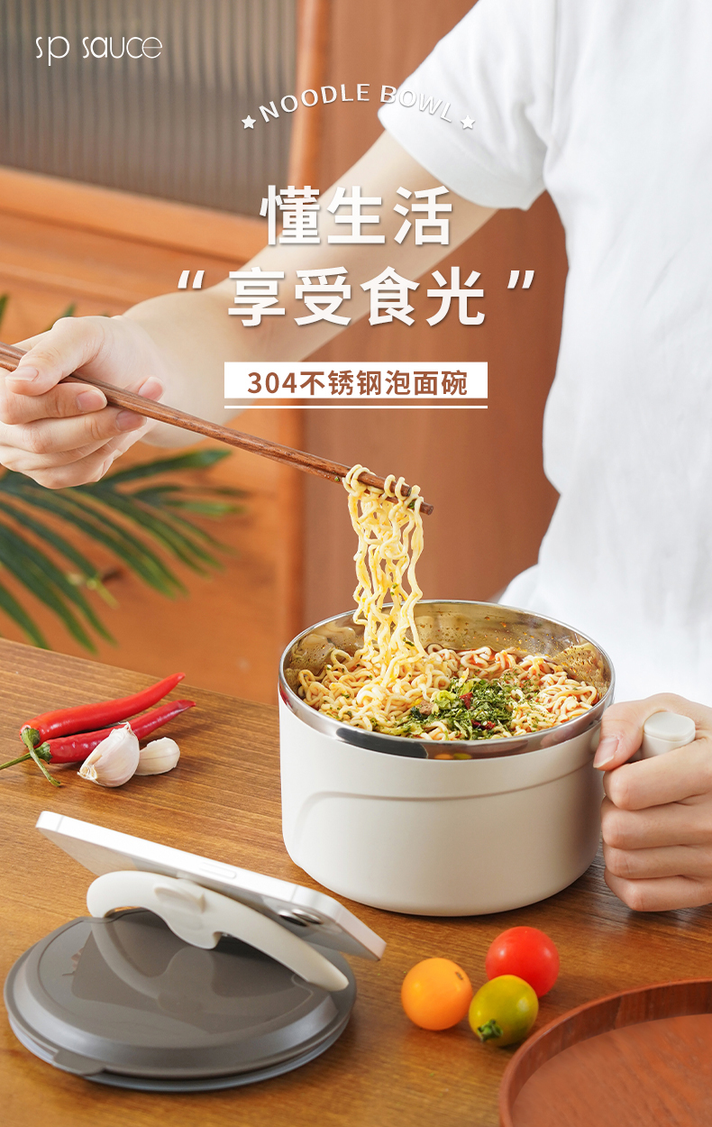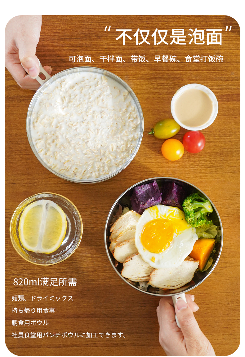 D 304不锈钢泡面碗 泡面碗拌面碗沙拉碗早餐碗早餐杯食堂饭碗夜宵碗不锈钢杯碗