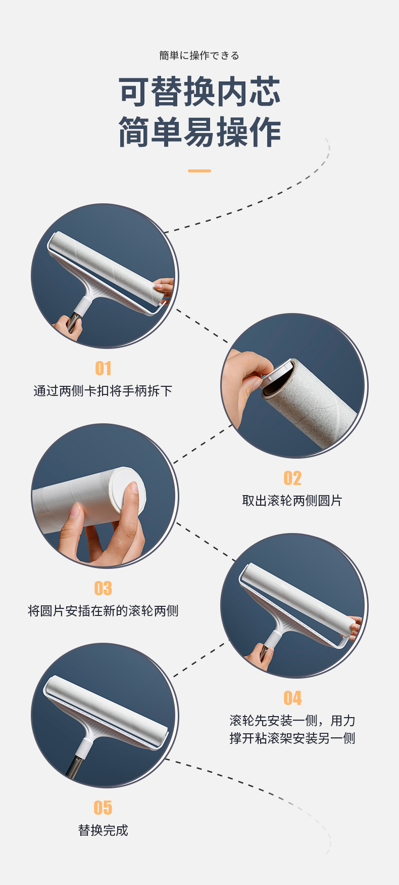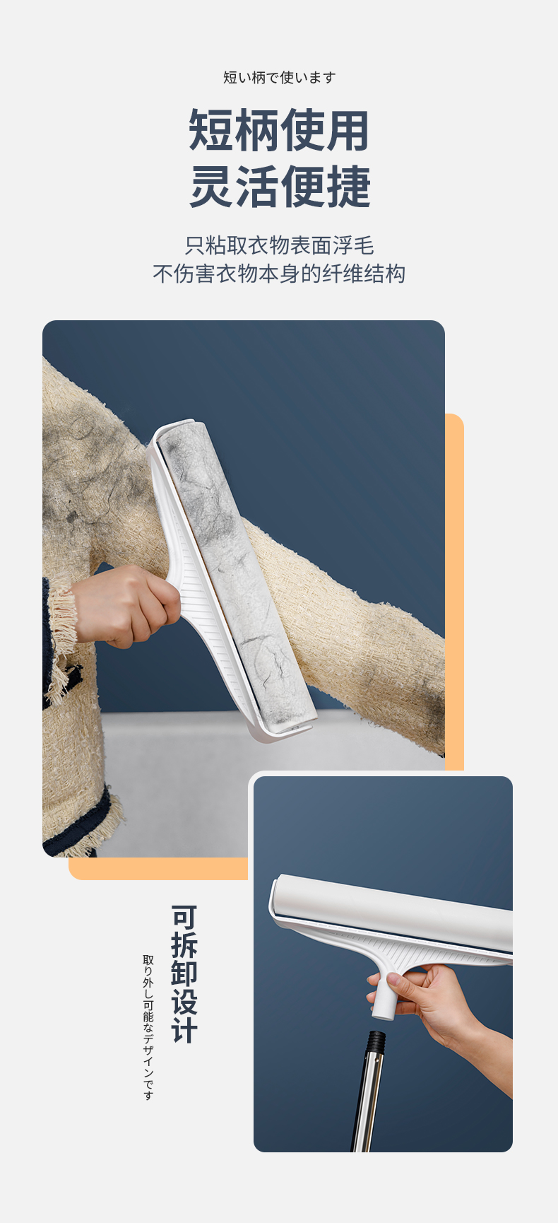 长柄粘毛滚(30cm) 粘毛器滚筒长杆大号加长床上滚刷沾地板灰尘滚轮吸头发黏粘毛神器