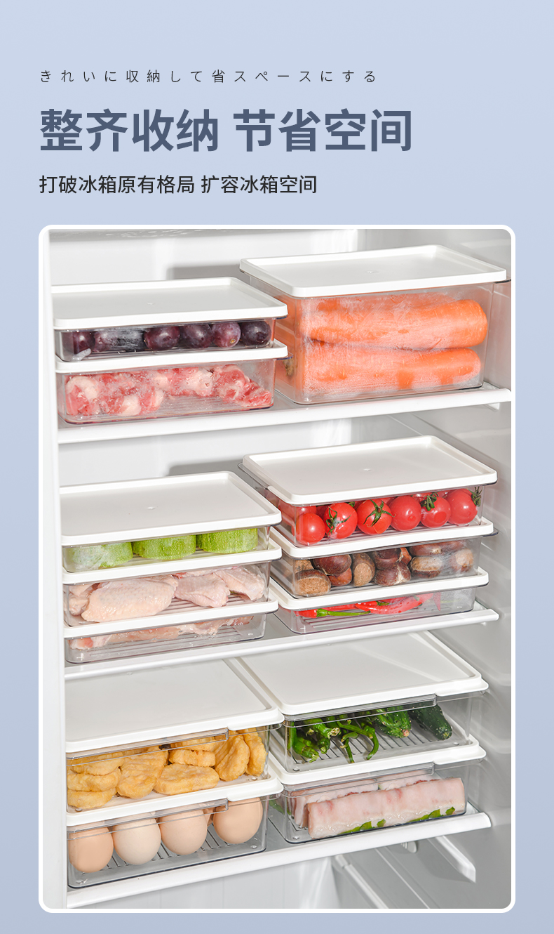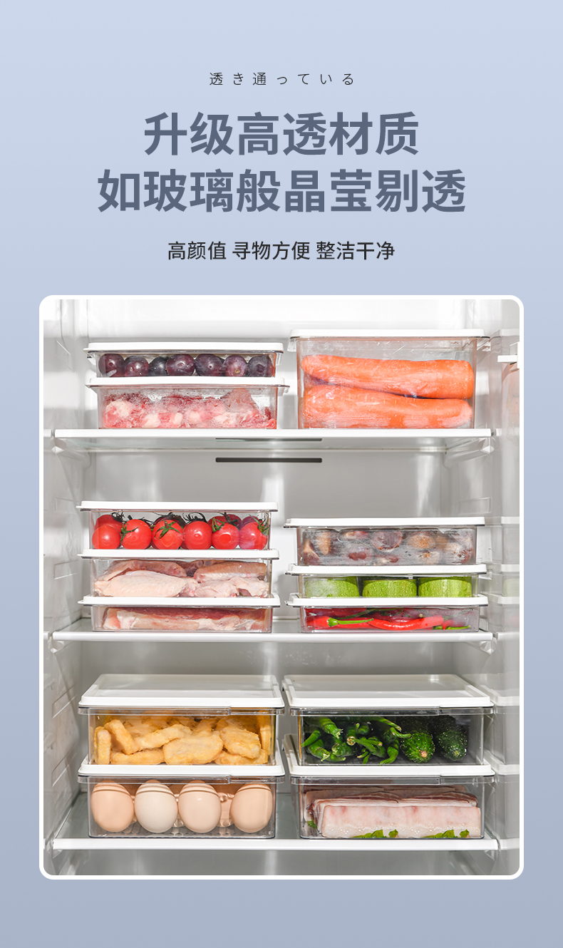 D PET冰箱保鲜盒(700ml) 冰箱收纳盒保鲜盒食品级专用家用厨房备菜分装冷冻室冻肉分格密封