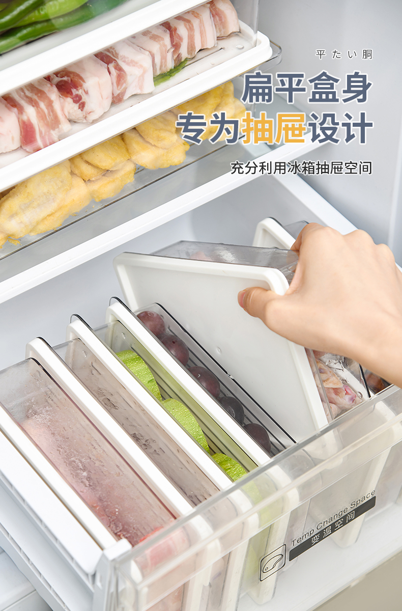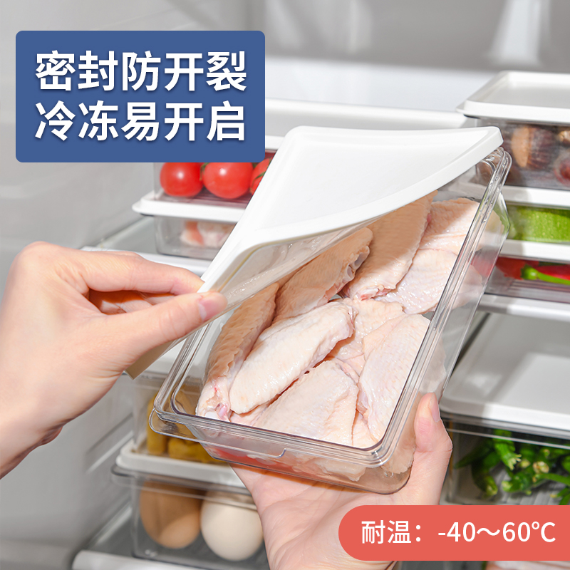 D PET冰箱保鲜盒(2100ml) 冰箱收纳盒保鲜盒食品级专用家用厨房备菜分装冷冻室冻肉分格密封