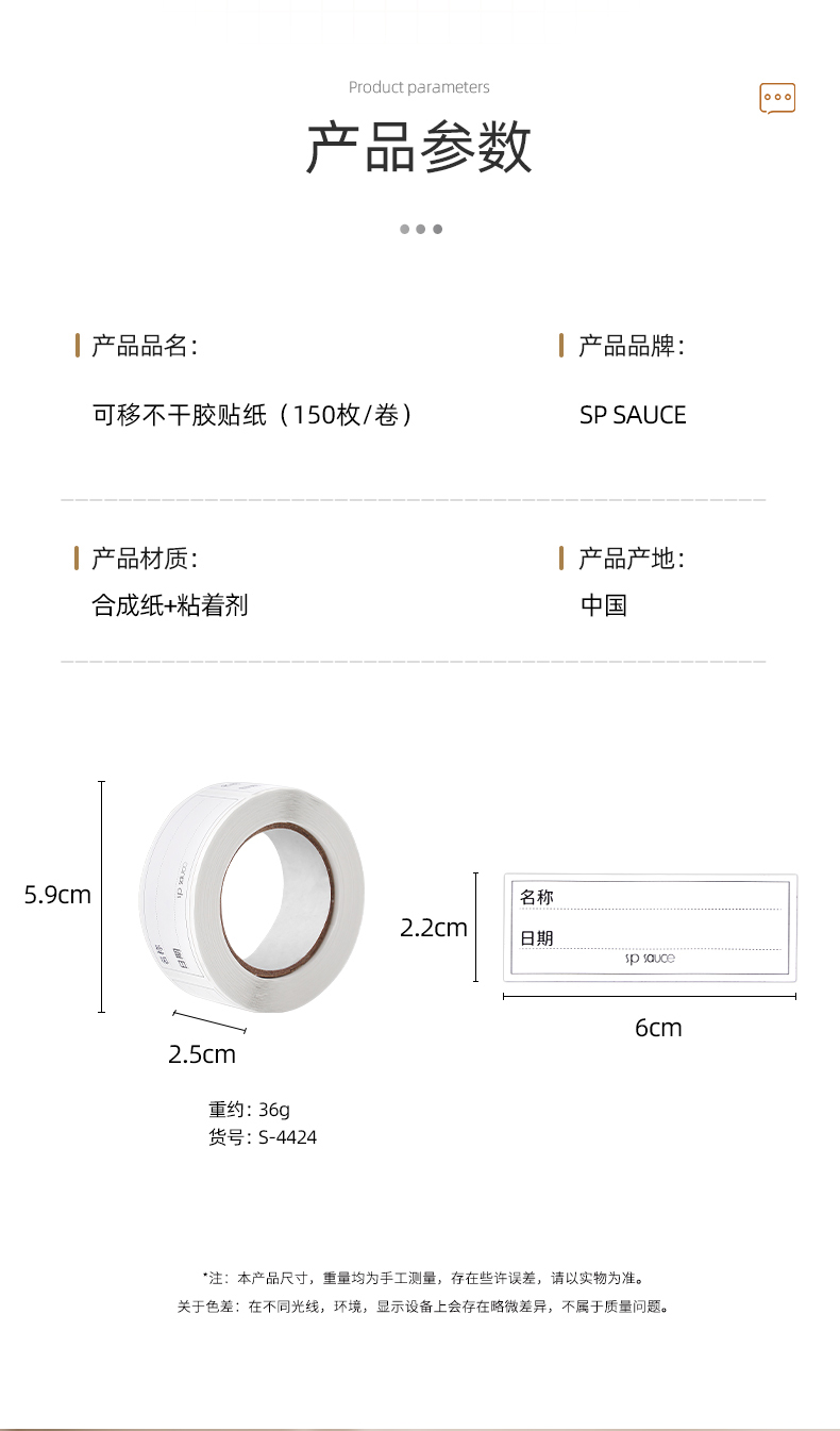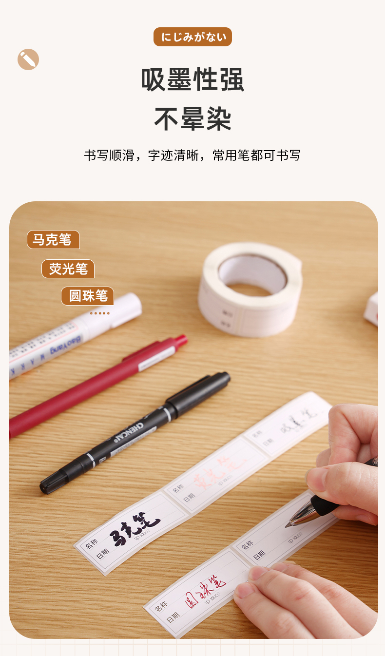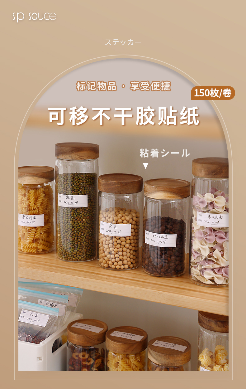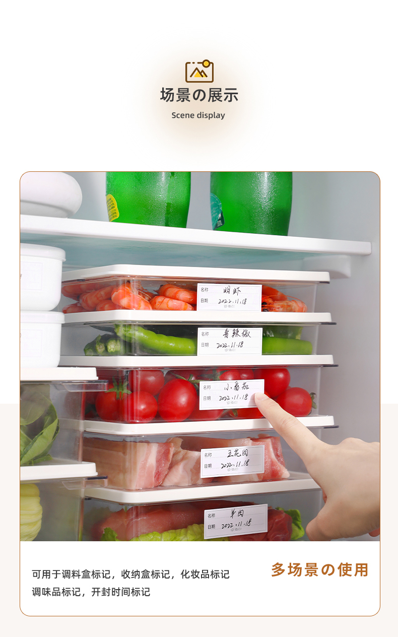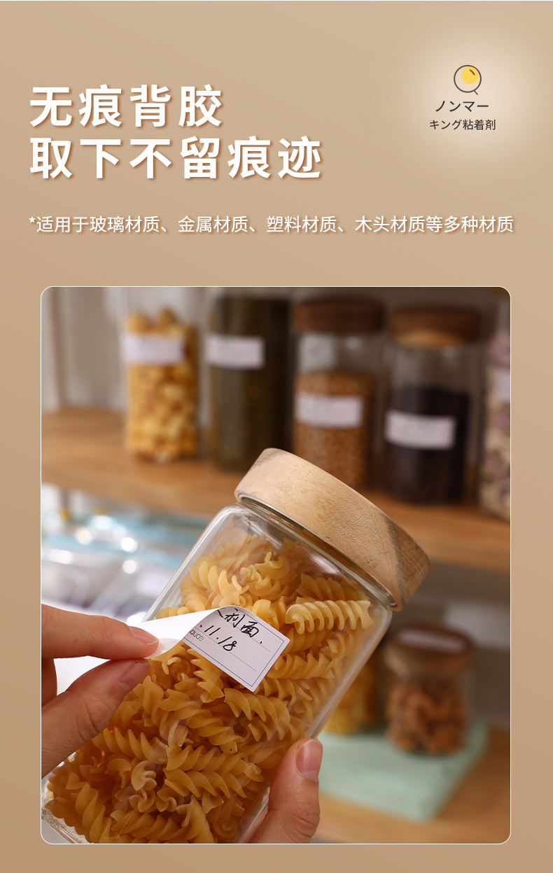 可移不干胶贴纸(150枚/卷) 手写分类标记贴无痕标签纸家用防水便签贴冰箱冷冻保鲜盒