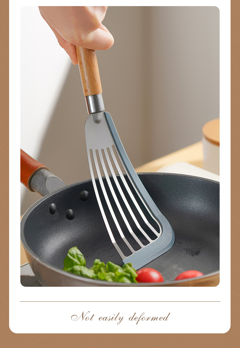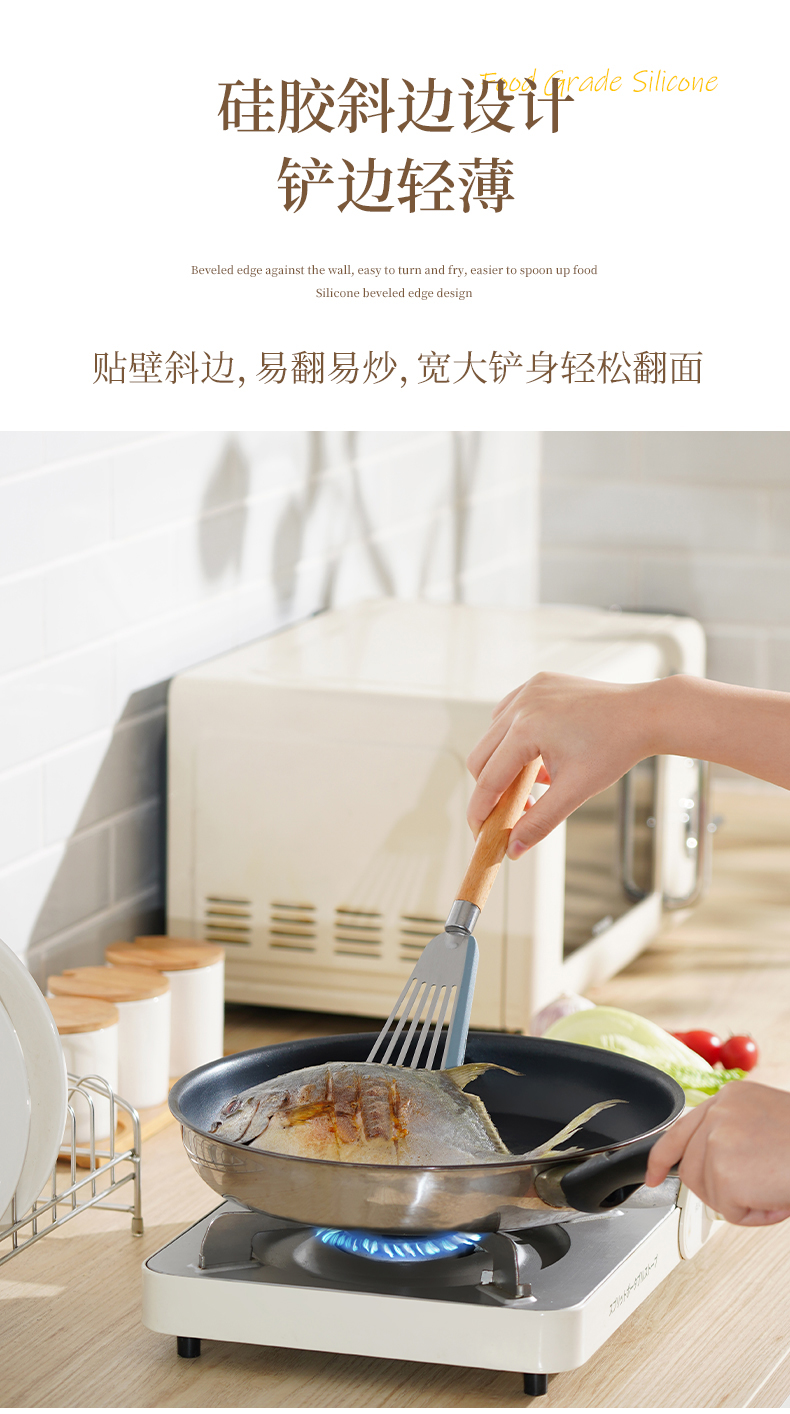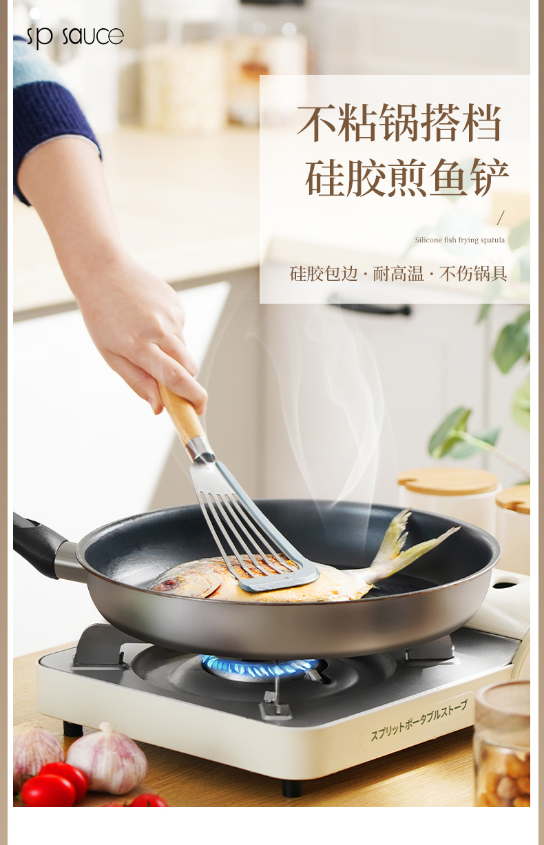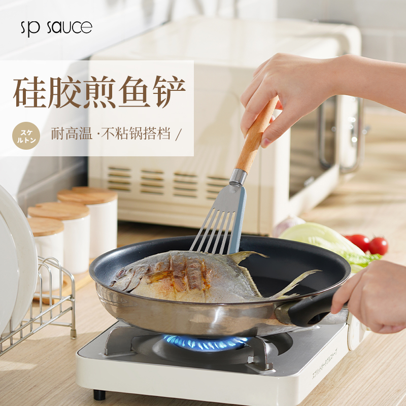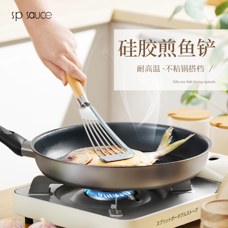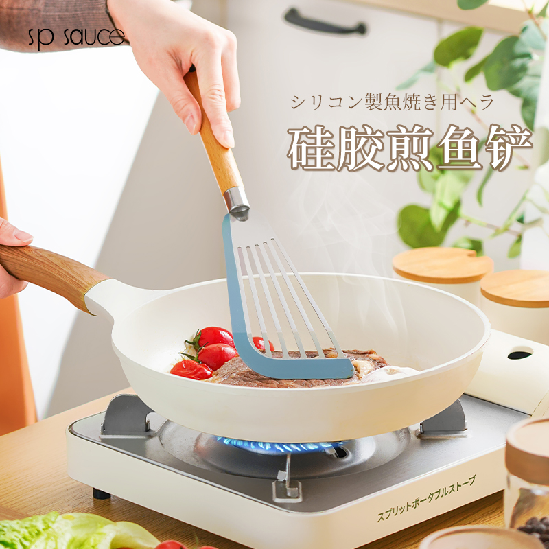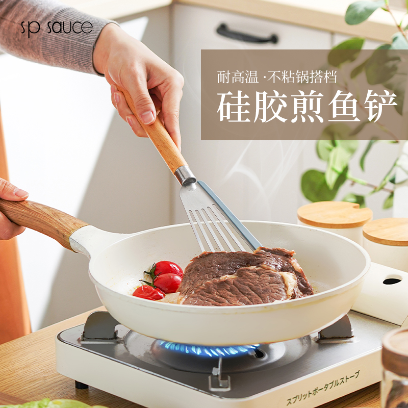 D 硅胶煎鱼铲 硅胶包边镂空铲子不锈钢锅铲煎鱼牛排煎饼漏铲不粘锅搭配