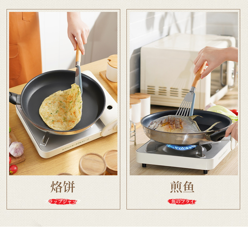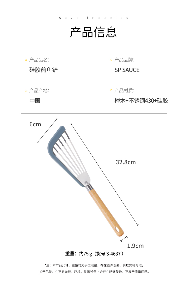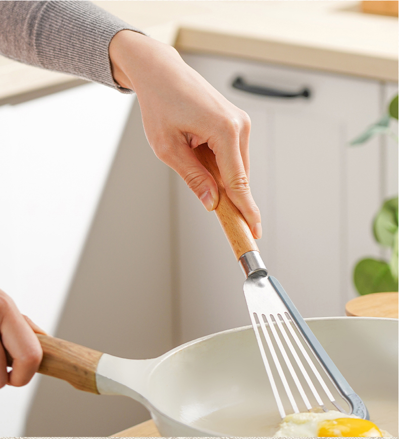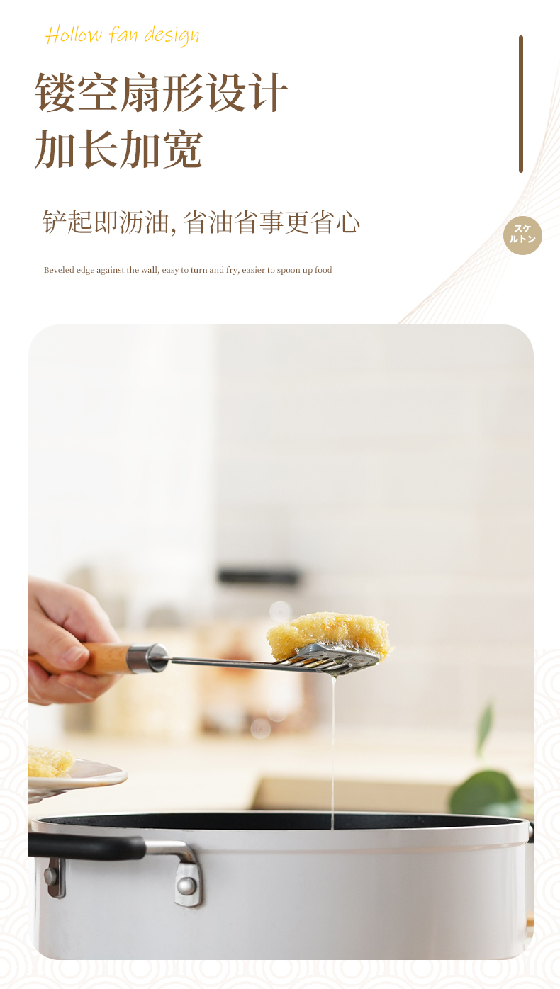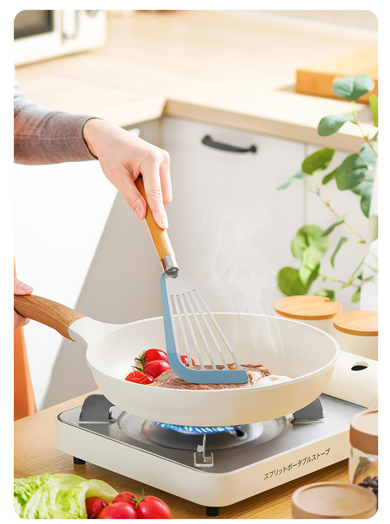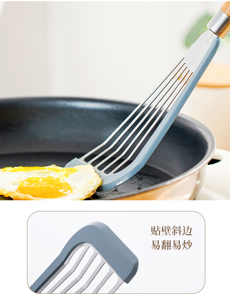 D 硅胶煎鱼铲 硅胶包边镂空铲子不锈钢锅铲煎鱼牛排煎饼漏铲不粘锅搭配