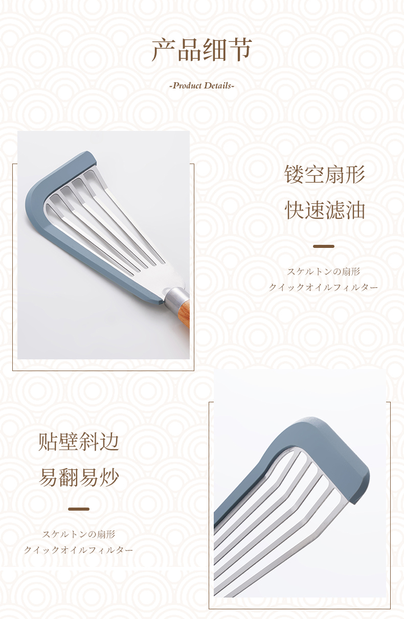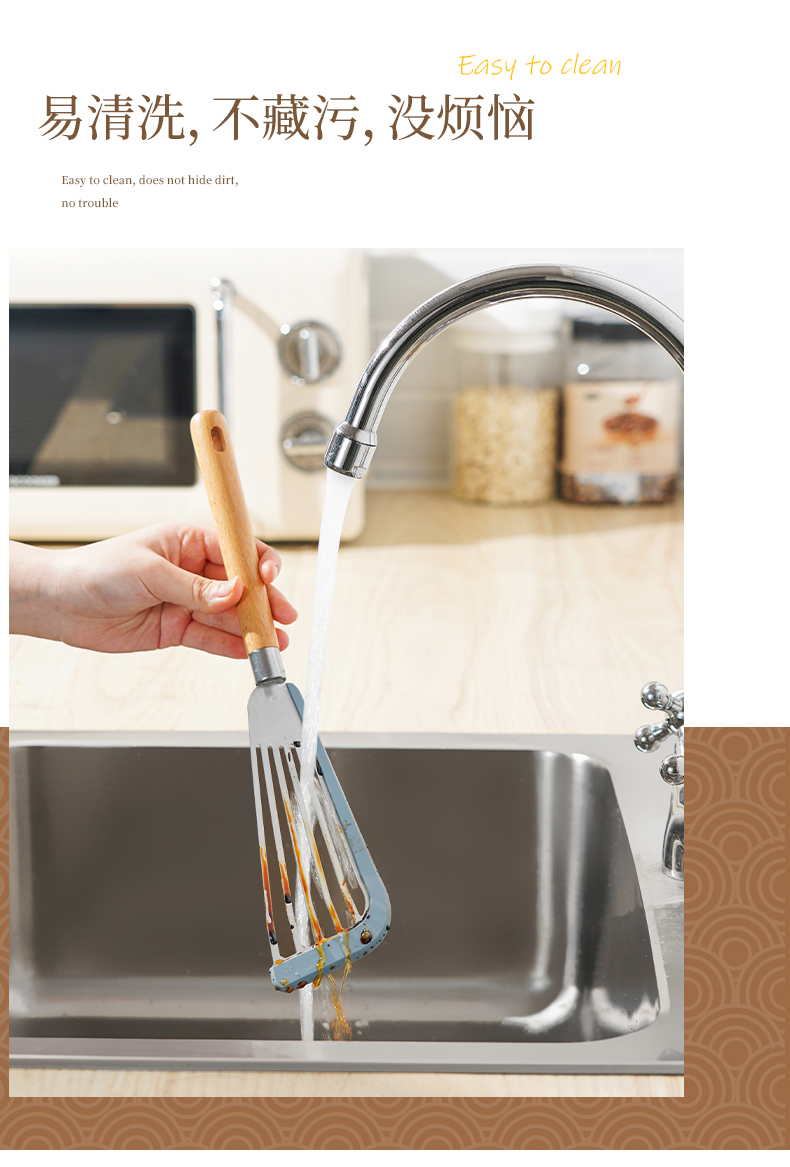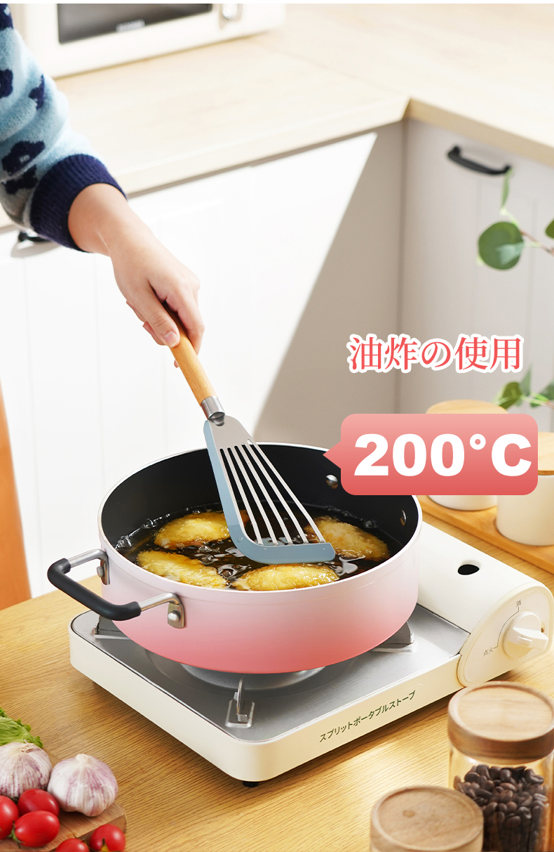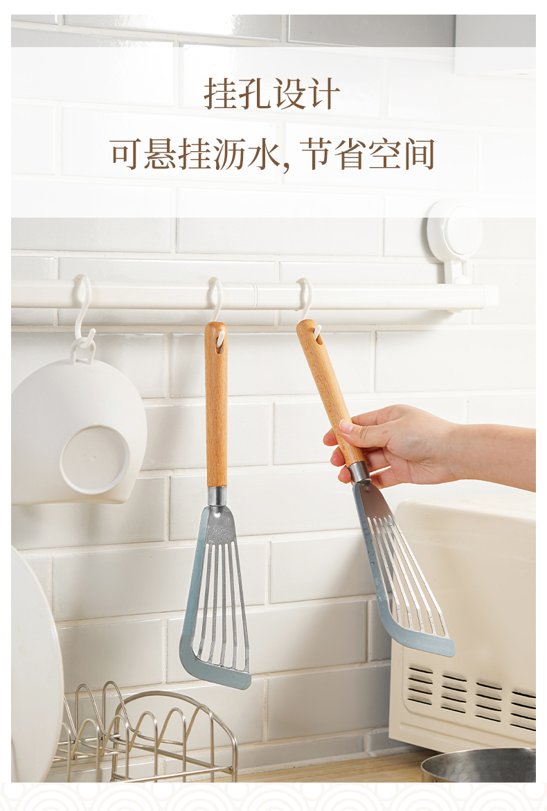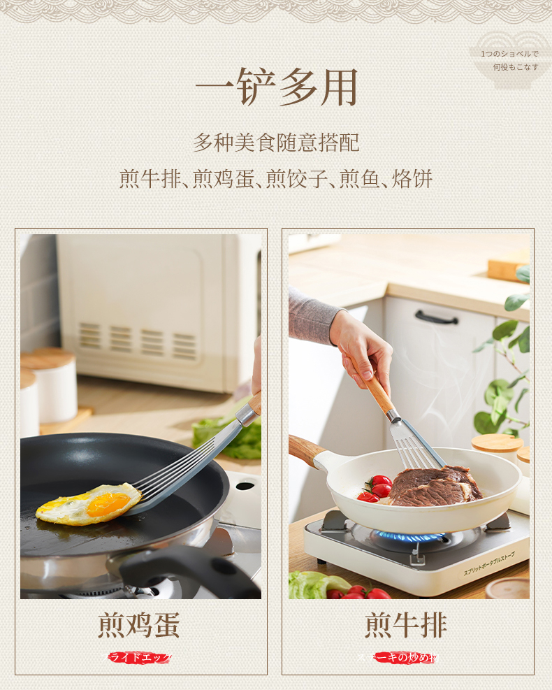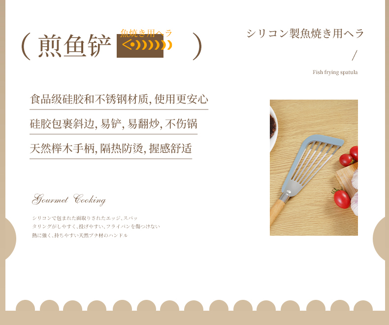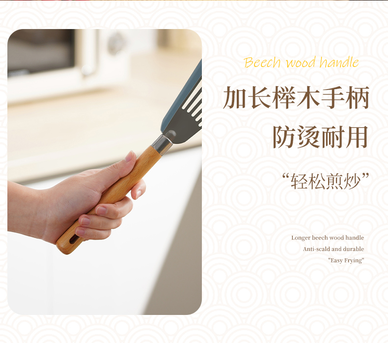 D 硅胶煎鱼铲 硅胶包边镂空铲子不锈钢锅铲煎鱼牛排煎饼漏铲不粘锅搭配