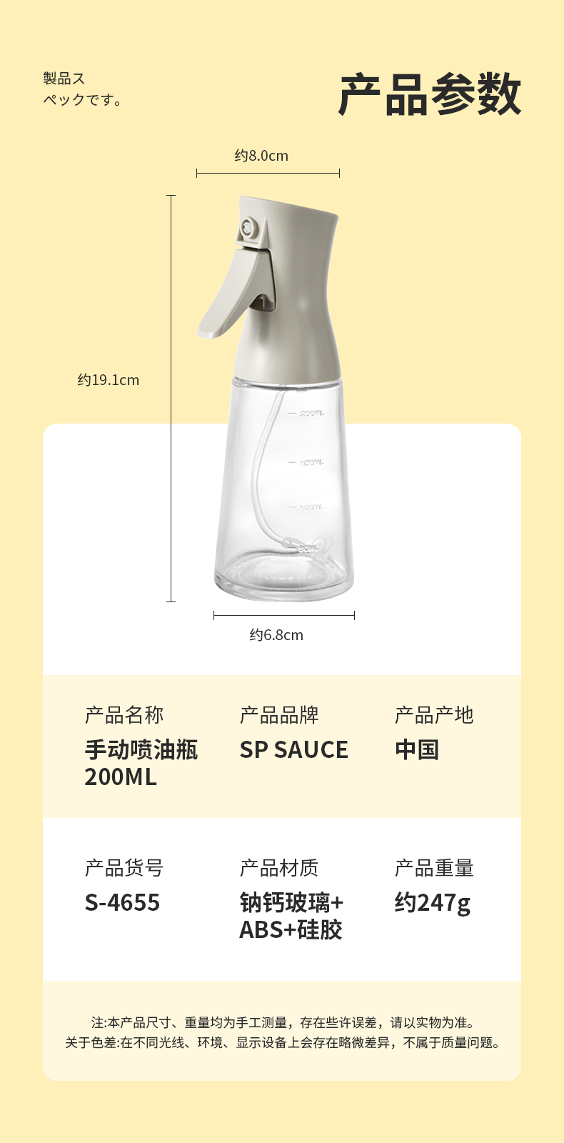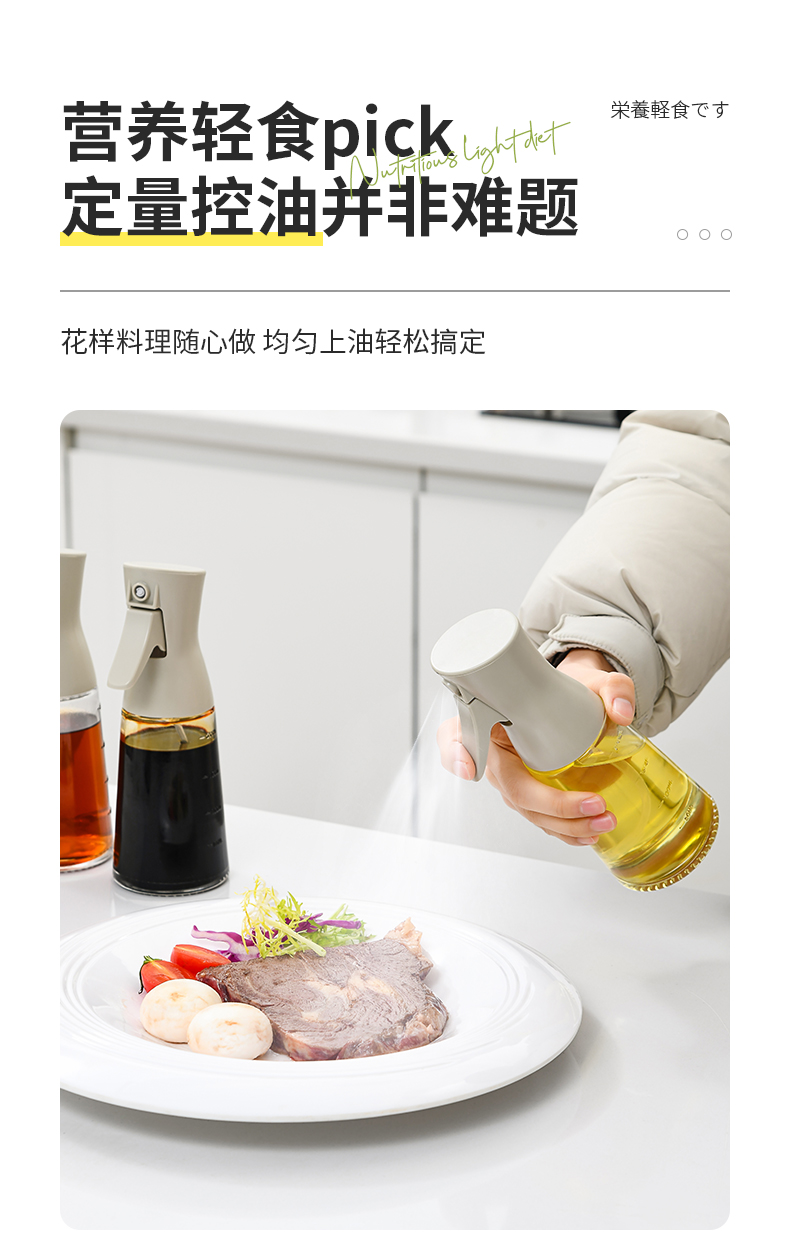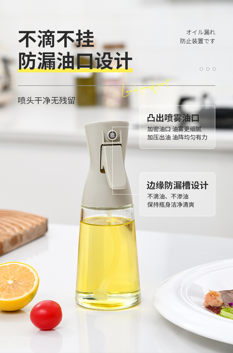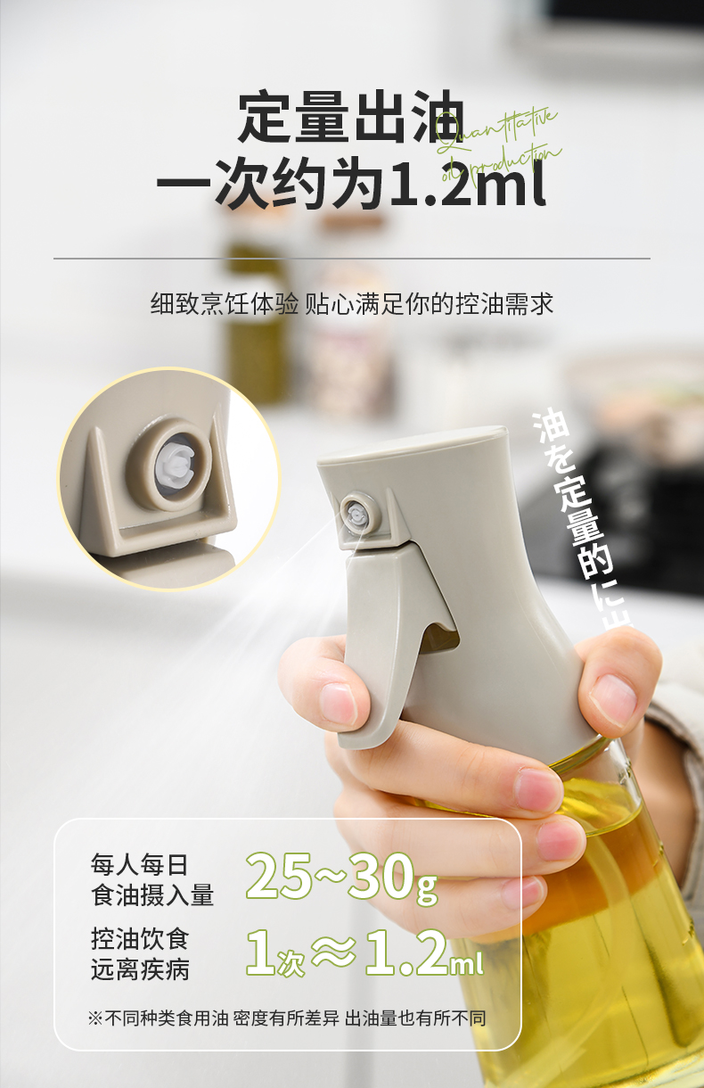 D手动喷油瓶 200ML 玻璃喷油壶厨房家用空气炸锅喷油瓶食用油喷壶油瓶雾化雾