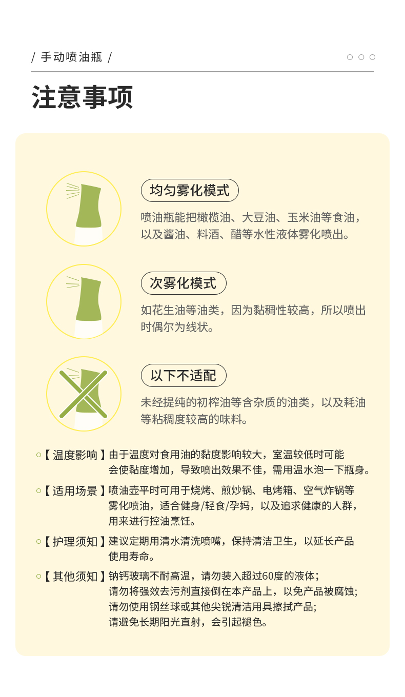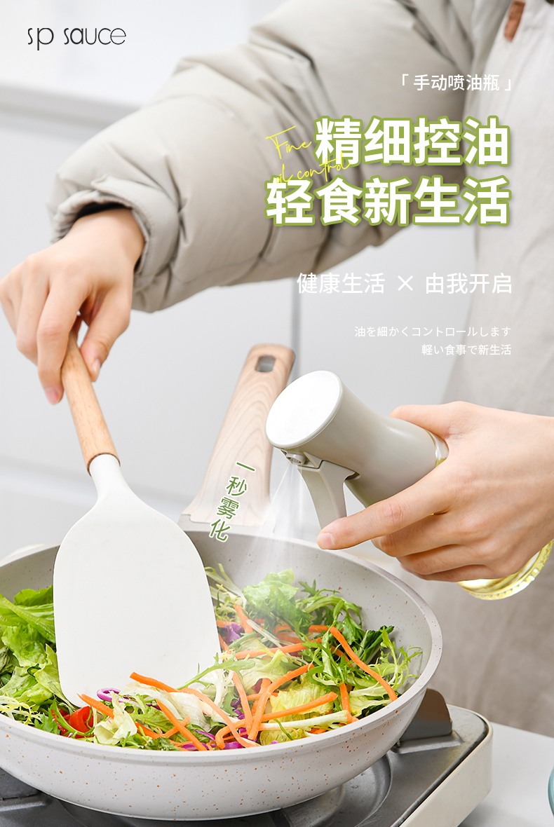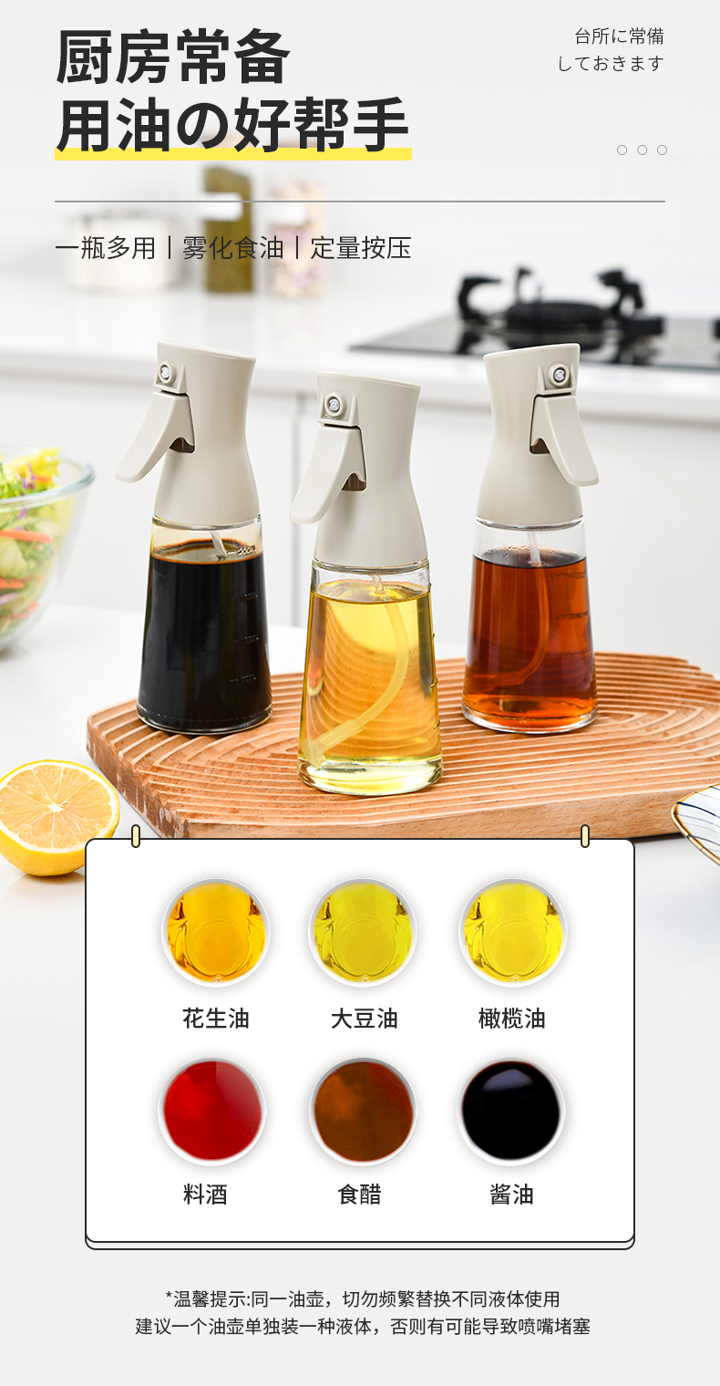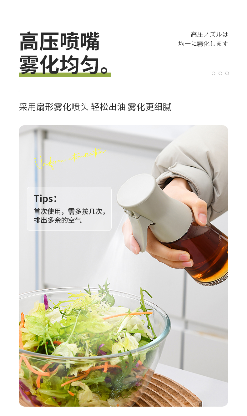 D手动喷油瓶 200ML 玻璃喷油壶厨房家用空气炸锅喷油瓶食用油喷壶油瓶雾化雾