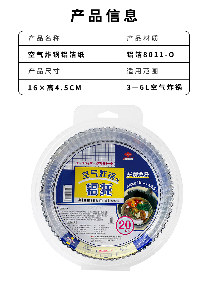 Toyal东洋铝爱科 空气炸锅铝托20枚入
