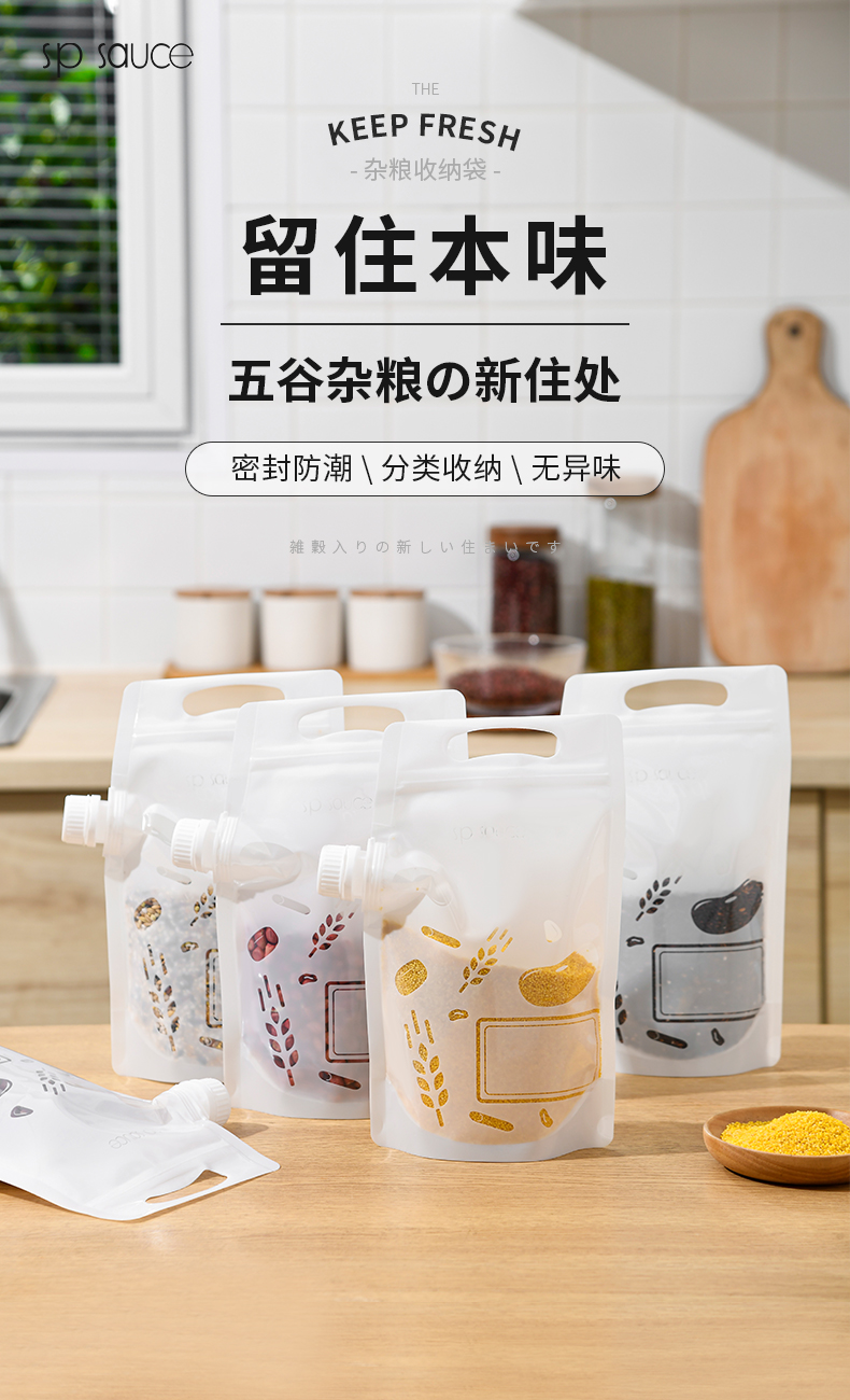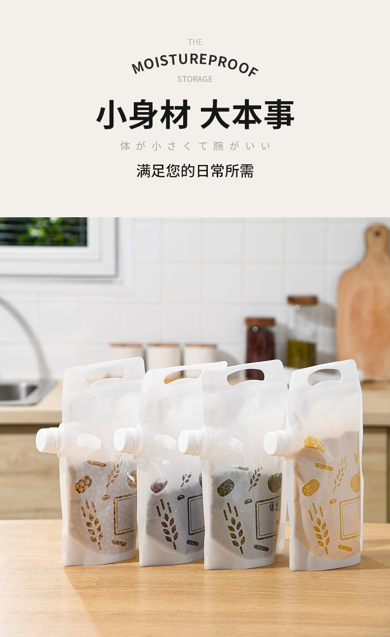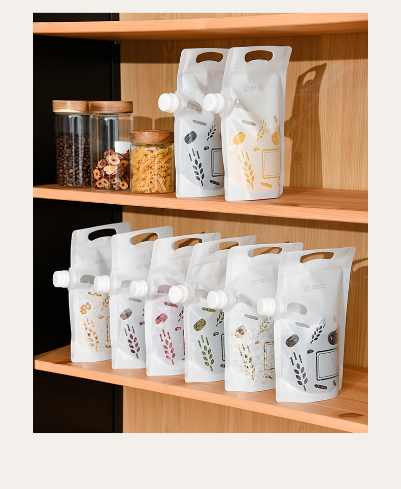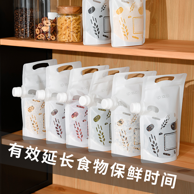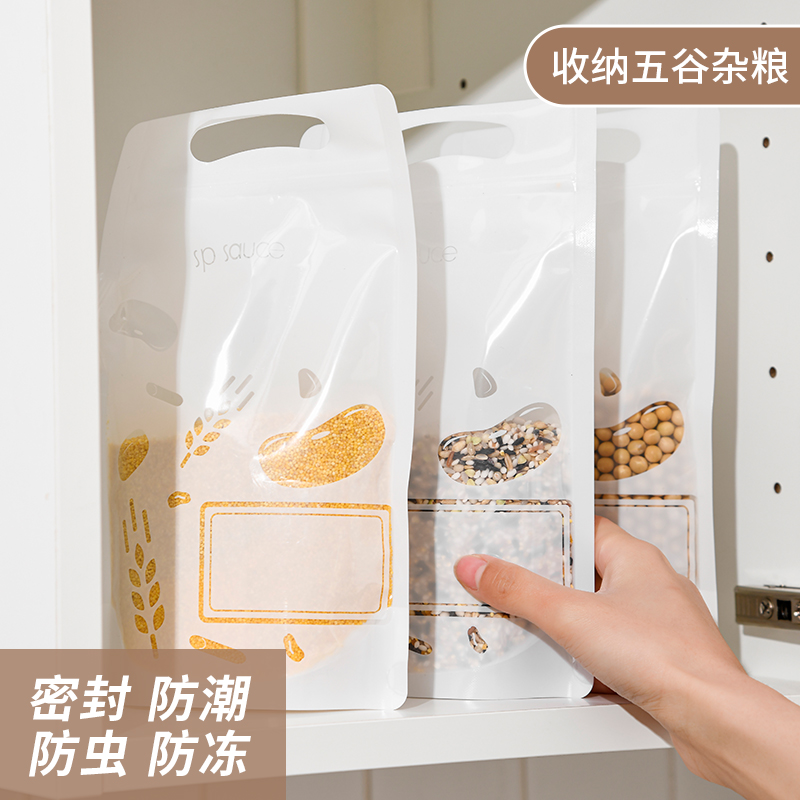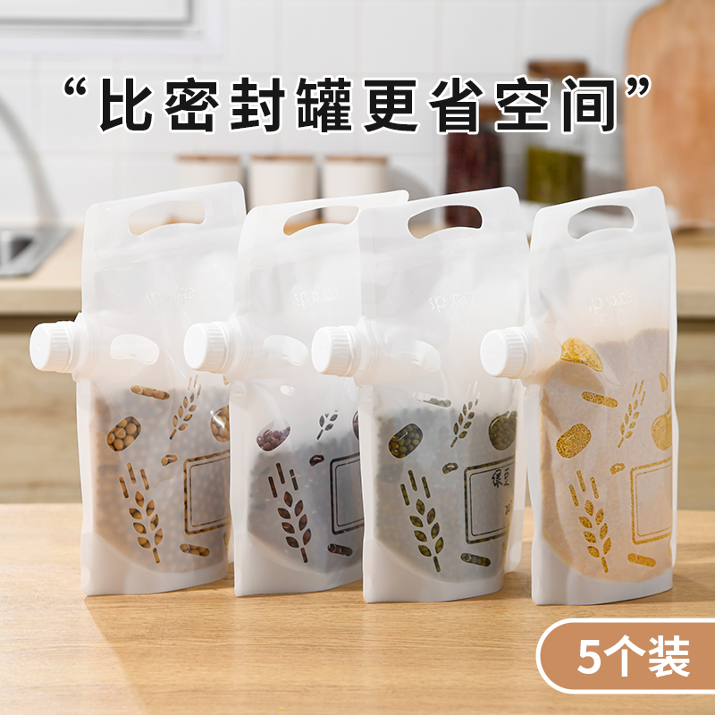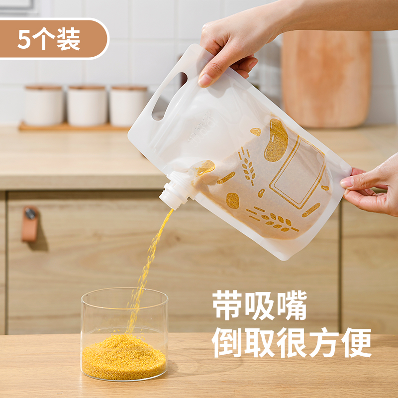 杂粮收纳袋(5个装) 食品级收纳袋五谷杂粮收纳袋手提吸嘴袋小米面粉绿豆红豆