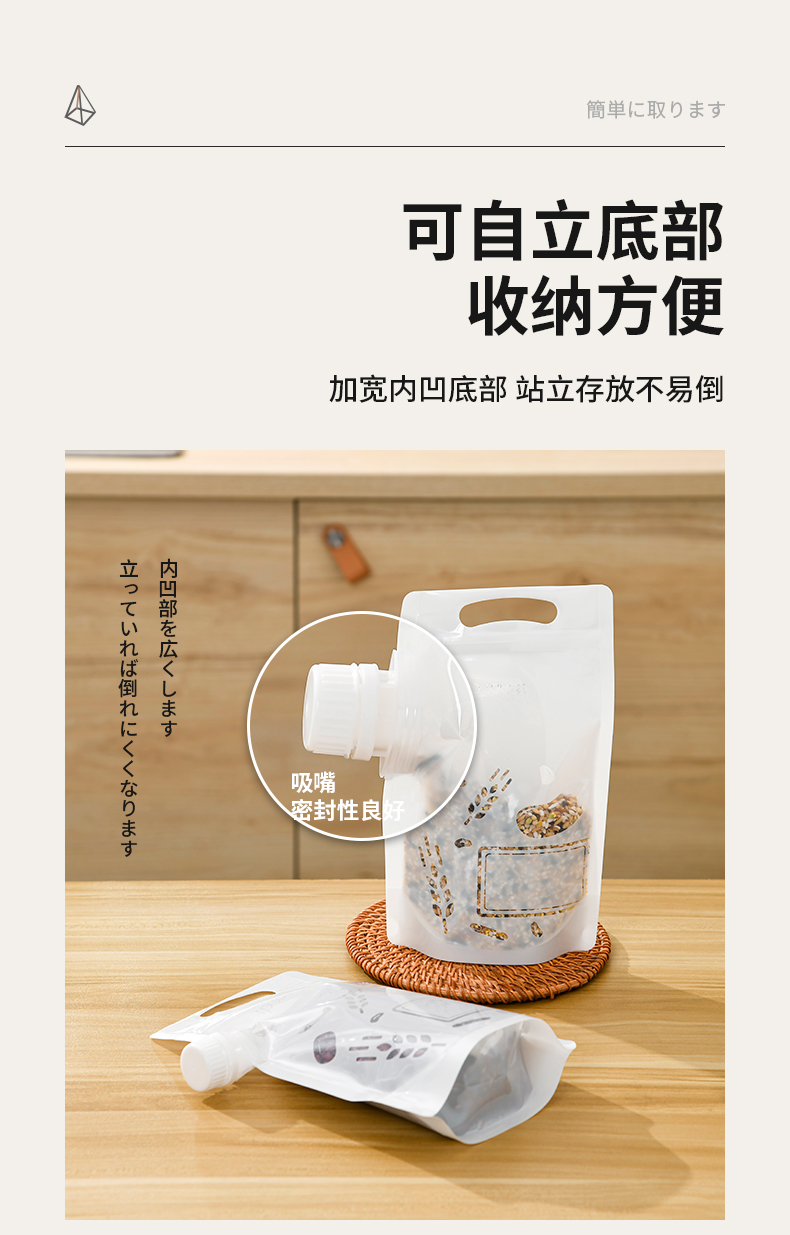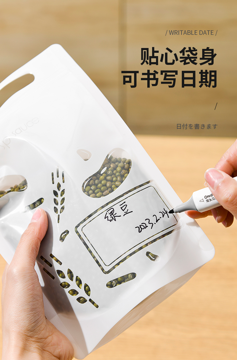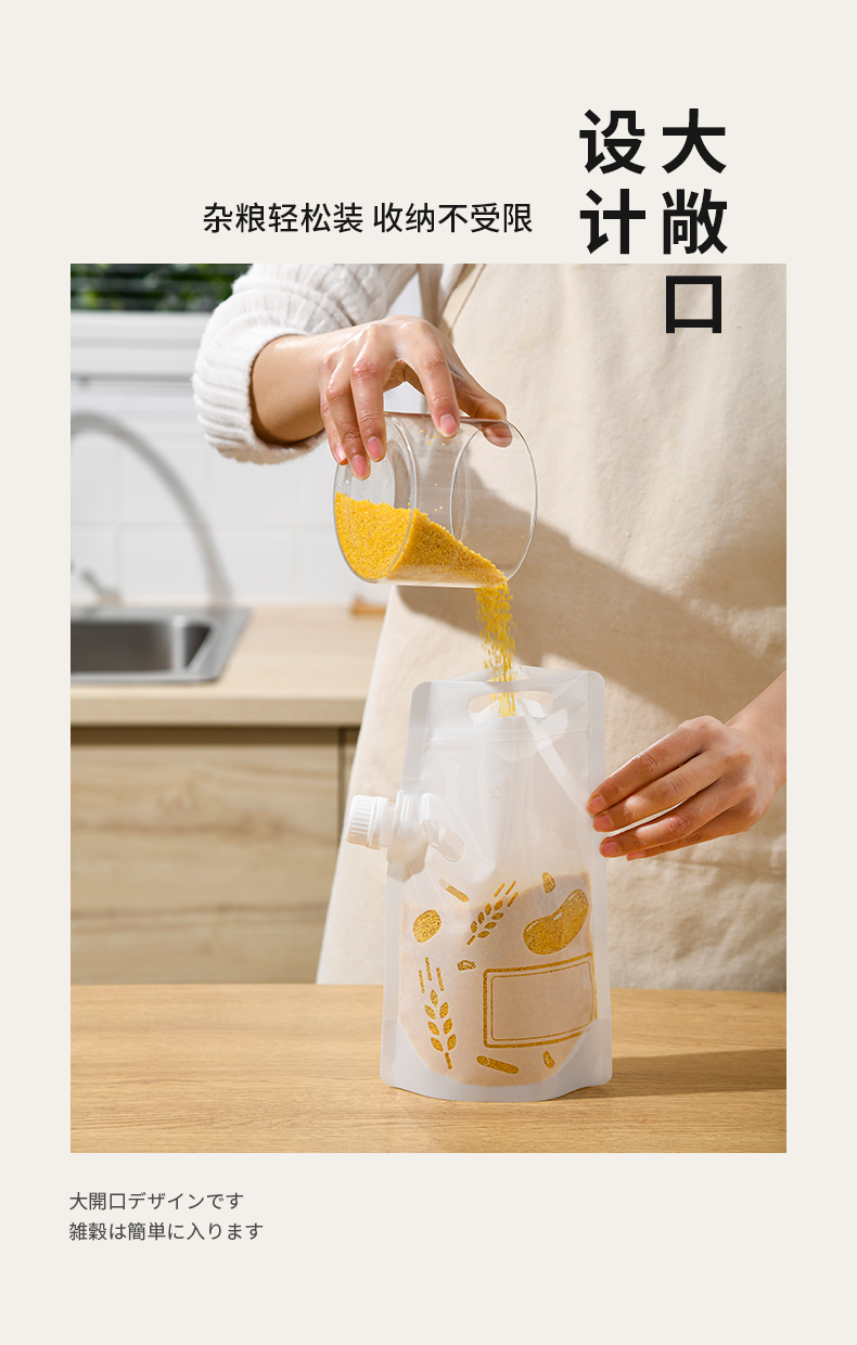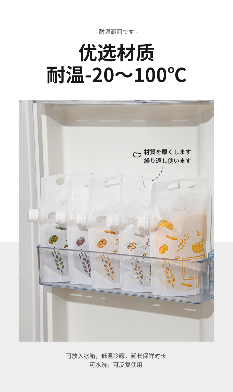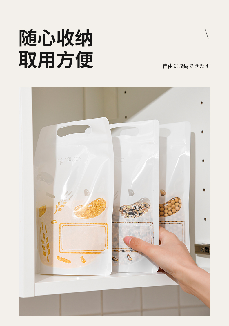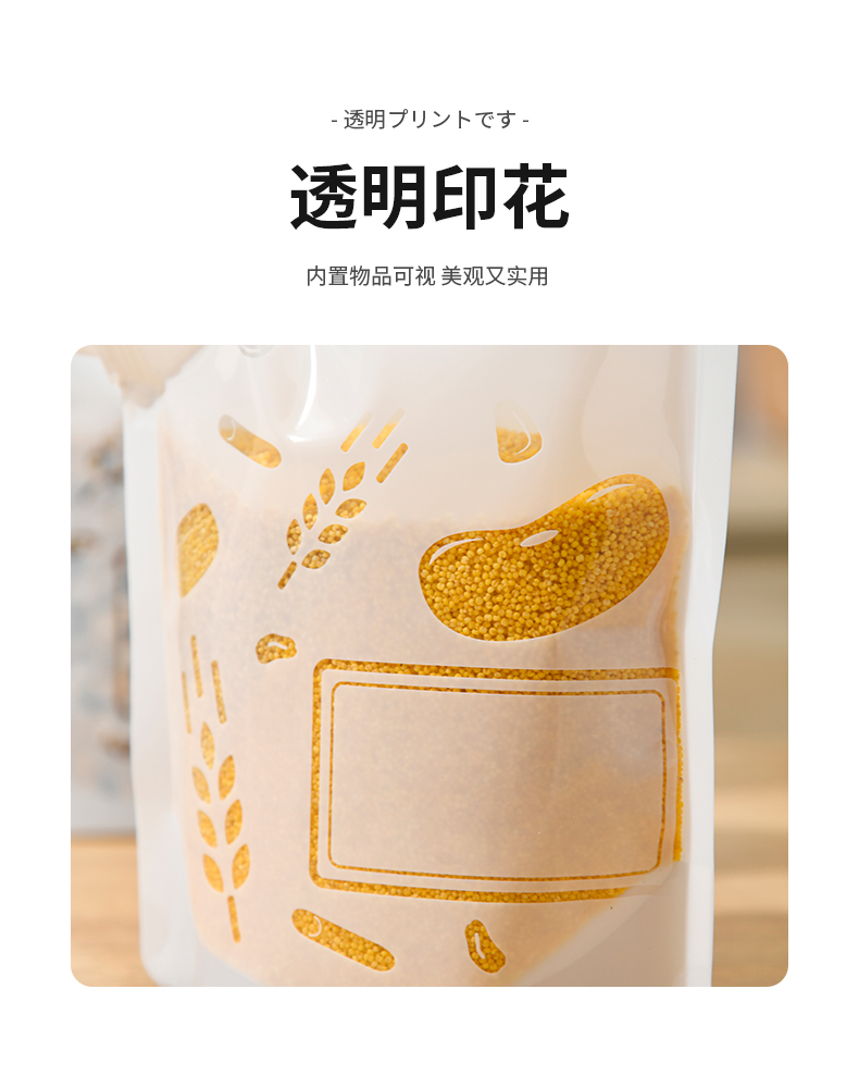 杂粮收纳袋(5个装) 食品级收纳袋五谷杂粮收纳袋手提吸嘴袋小米面粉绿豆红豆