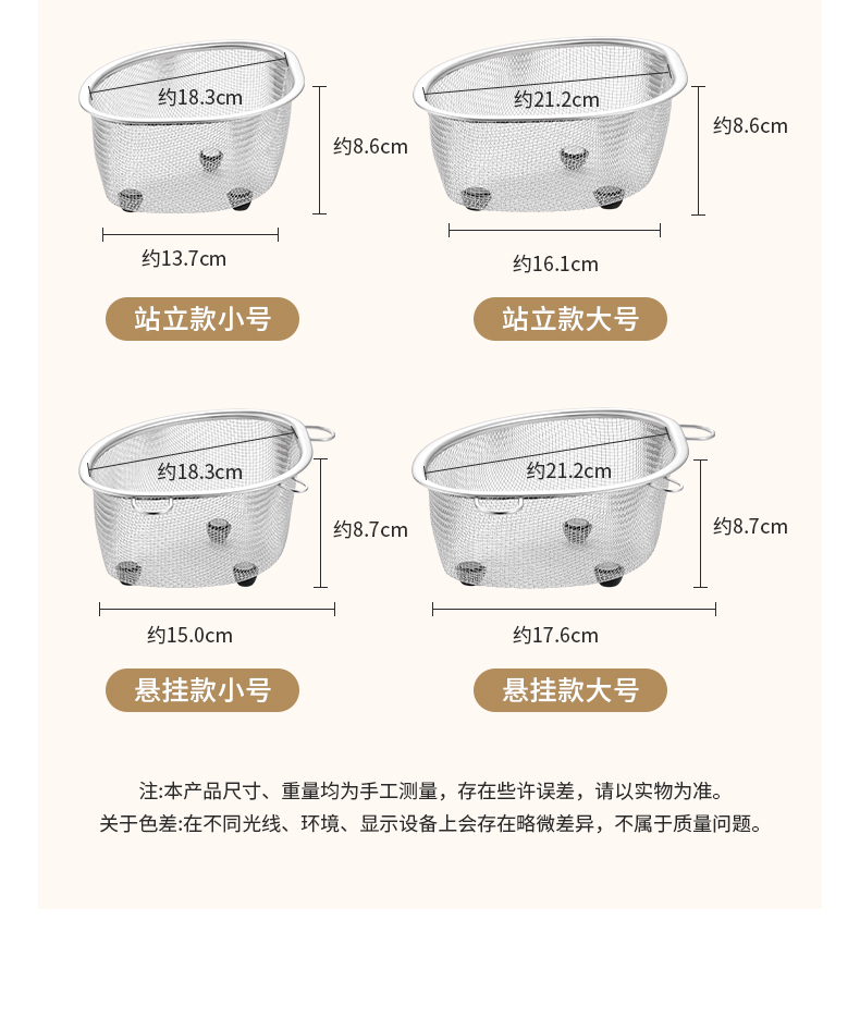 不锈钢水槽沥水篮(站立款) 大号 不锈钢三角沥水篮剩菜剩饭过滤神器滤水篮洗碗布沥水架
