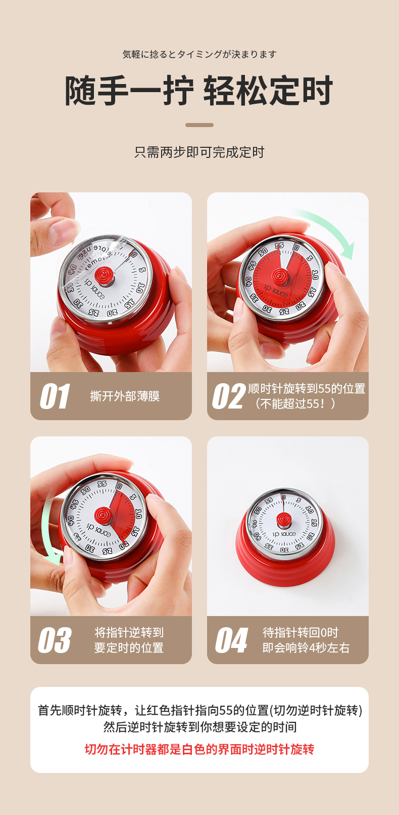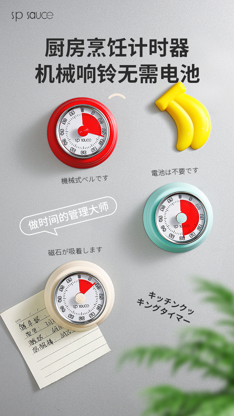 厨房计时器 机械计时器厨房烹饪计时器磁吸发条定时器倒计时提醒时间管理器