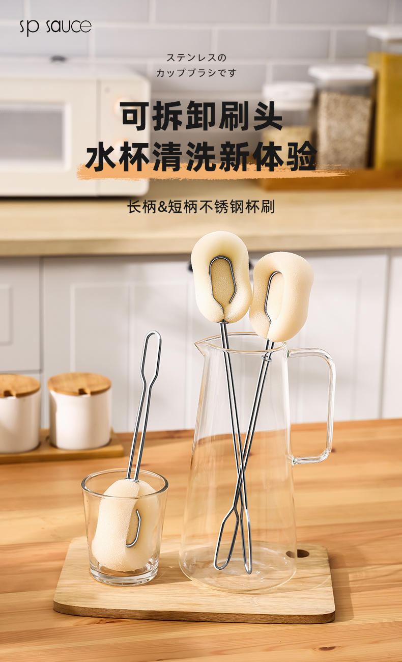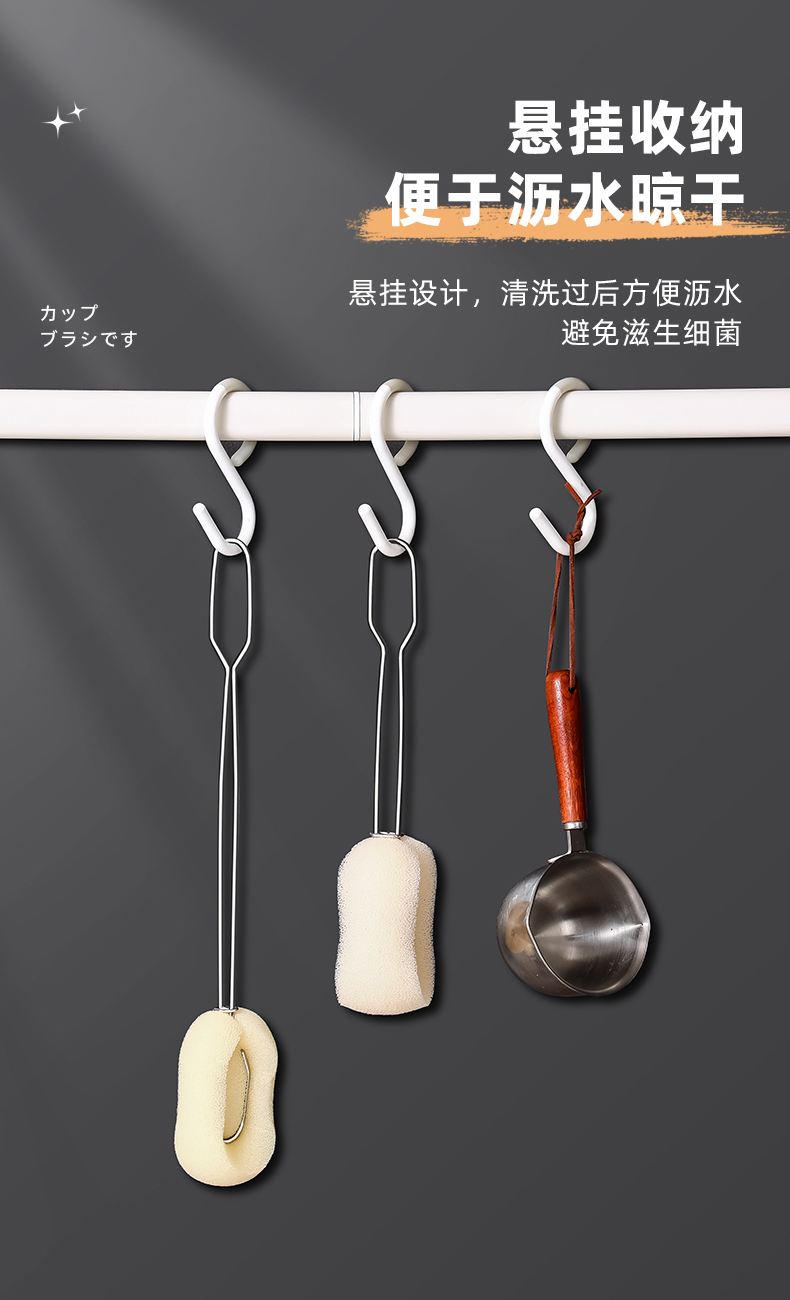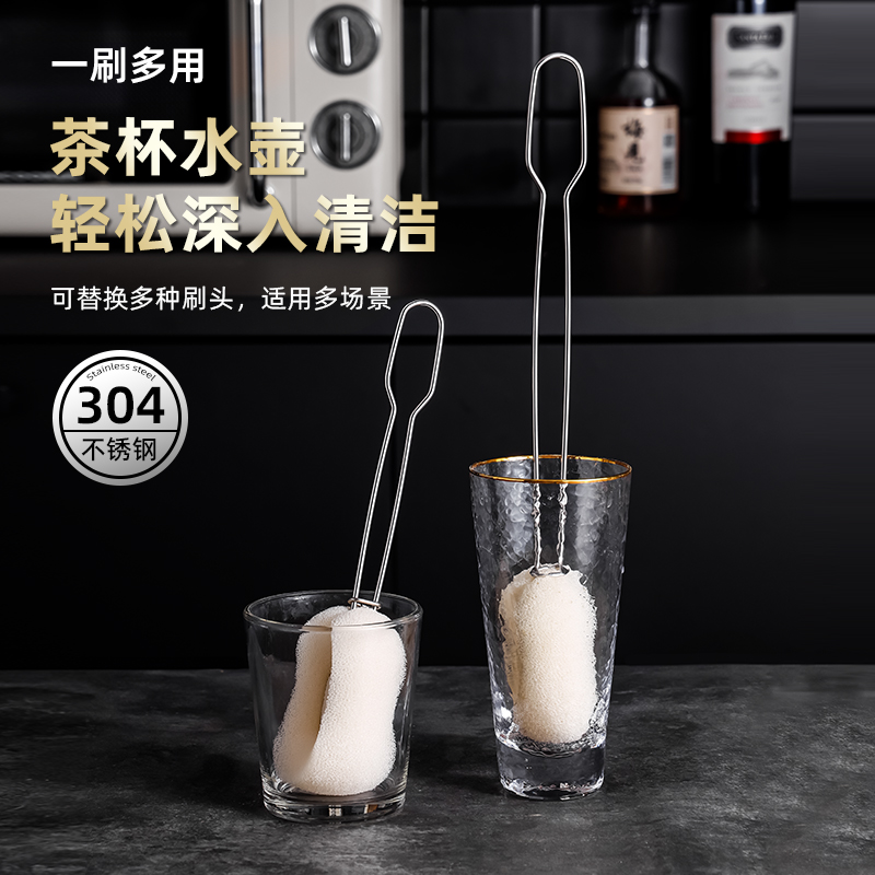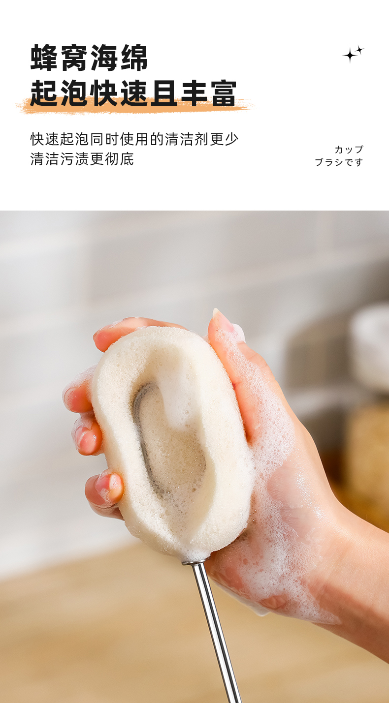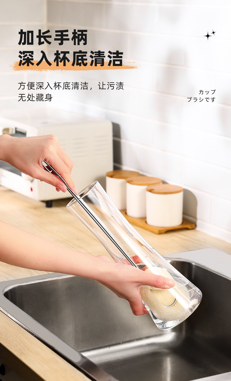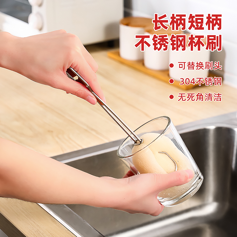 D 不锈钢杯刷替换装(3只装) 不锈钢杯刷家用长柄无死角多功能海绵保温杯清洁套装水杯清洗神器替换补充装