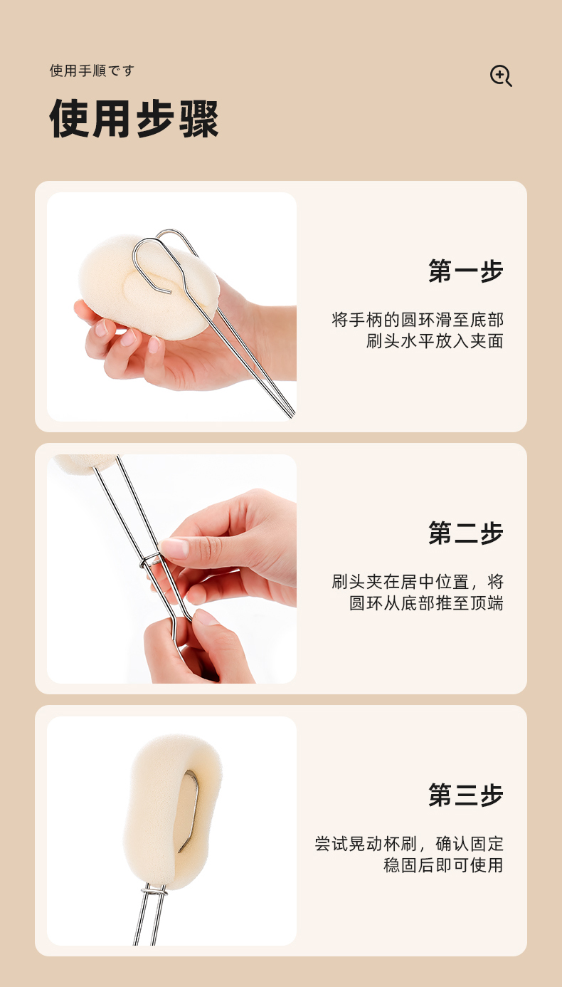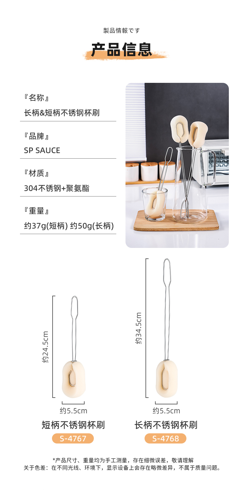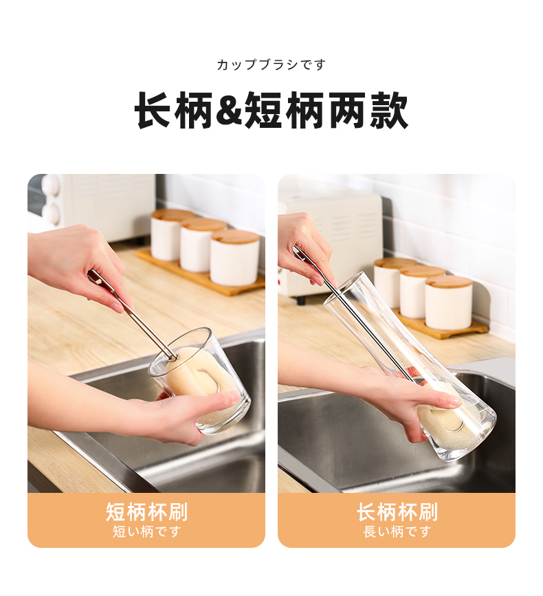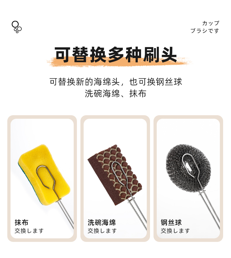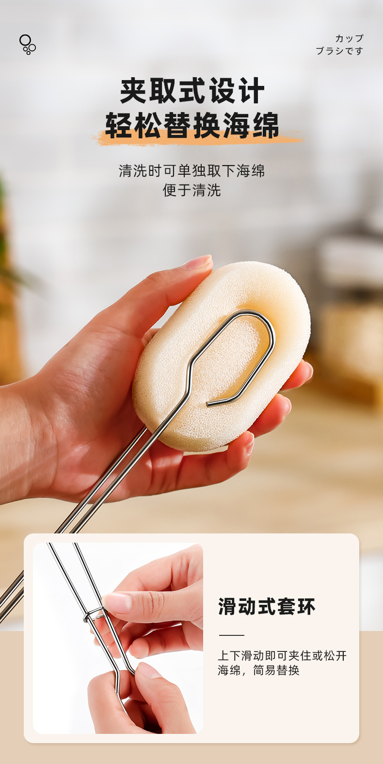 D 不锈钢杯刷替换装(3只装) 不锈钢杯刷家用长柄无死角多功能海绵保温杯清洁套装水杯清洗神器替换补充装