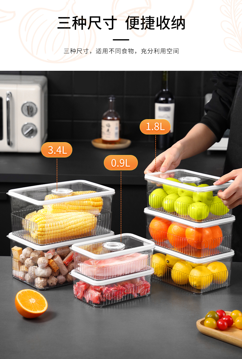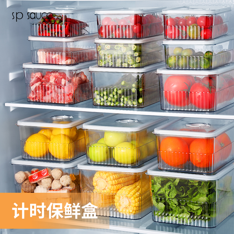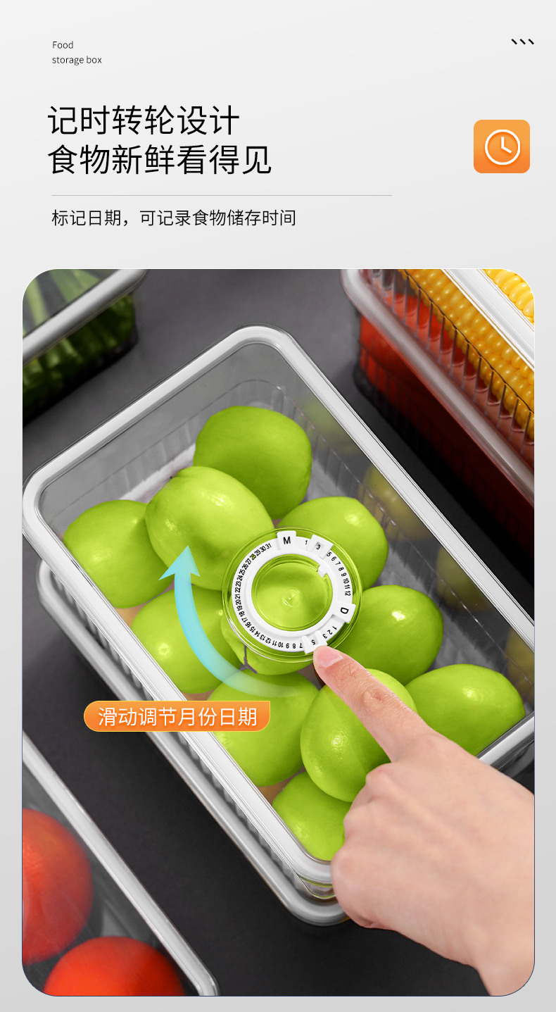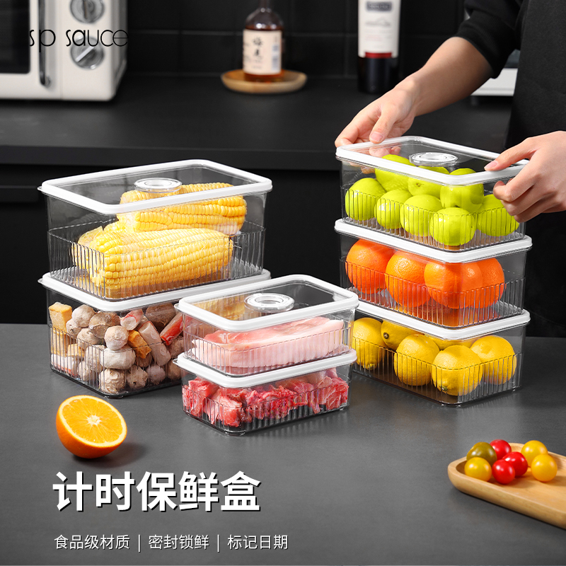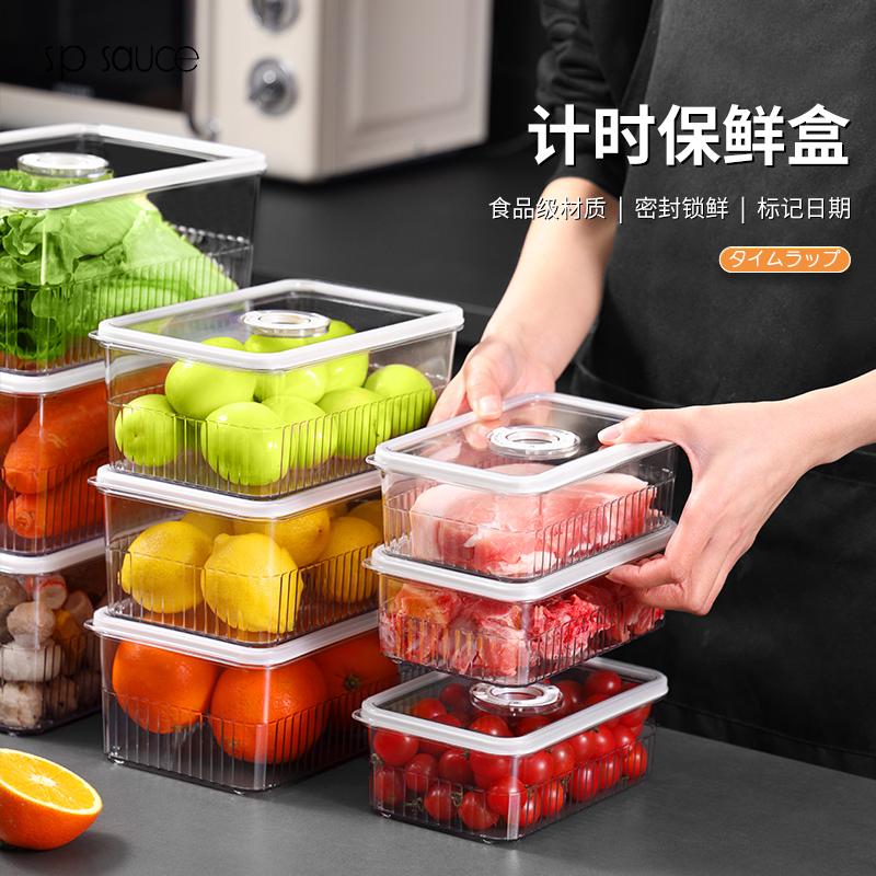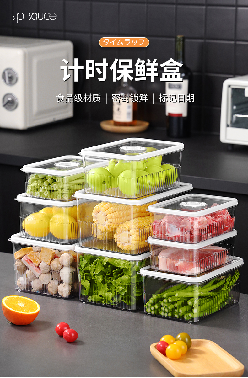 D 计时保鲜盒(大号) 冰箱收纳盒计时保鲜盒冰箱食物盒密封加厚冷冻盒