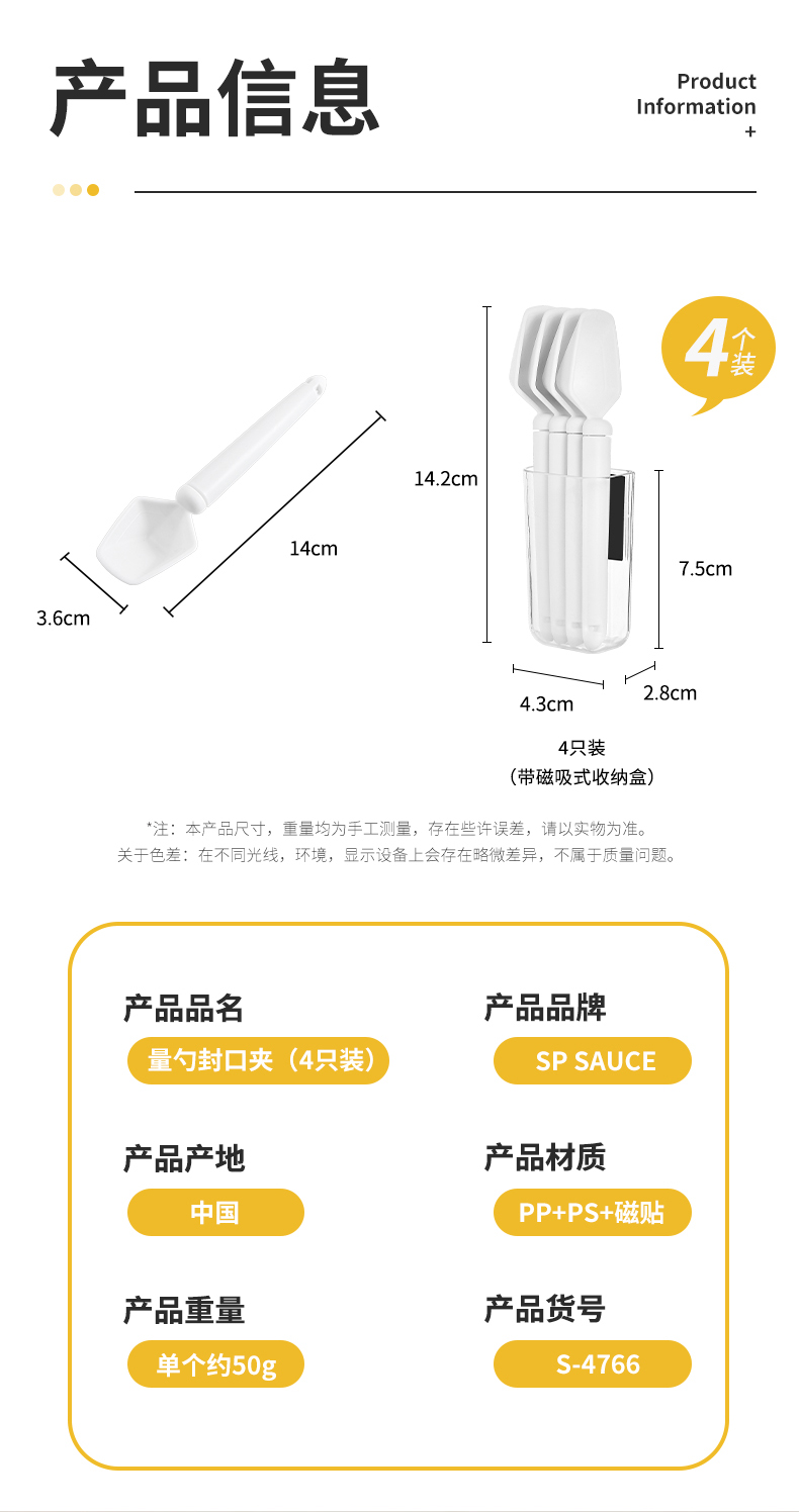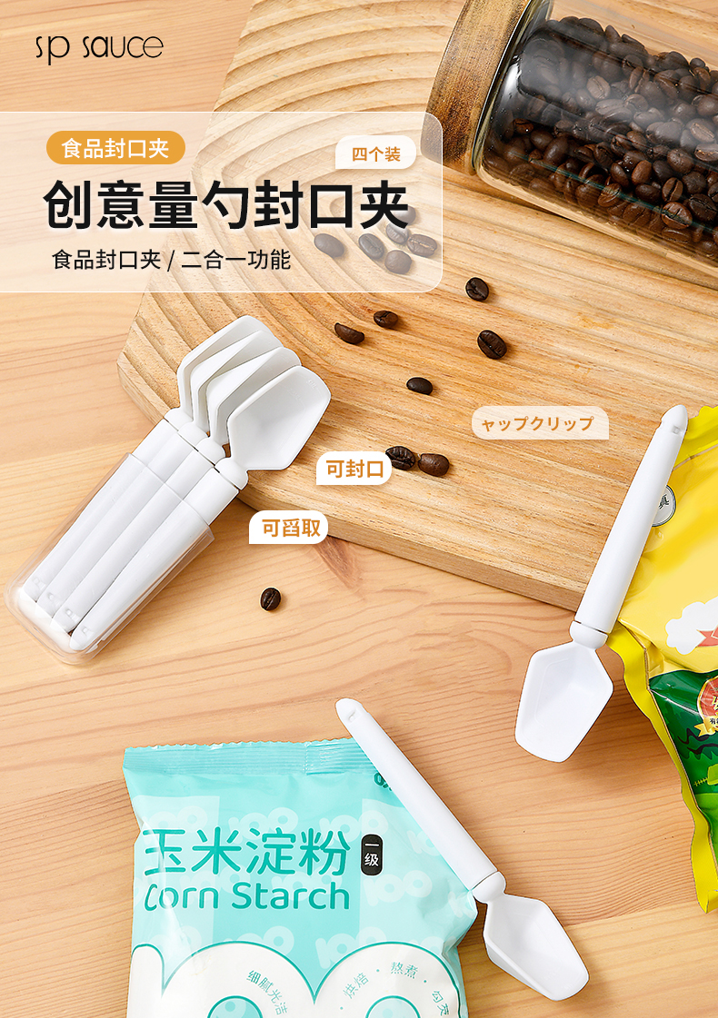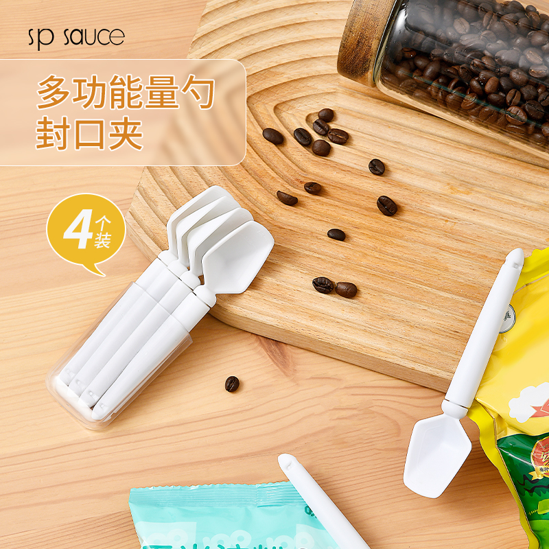 D 量勺封口夹(4只装) 磁吸量勺封口夹家用食品密封夹二合一防潮零食夹防尘封口条密封棒