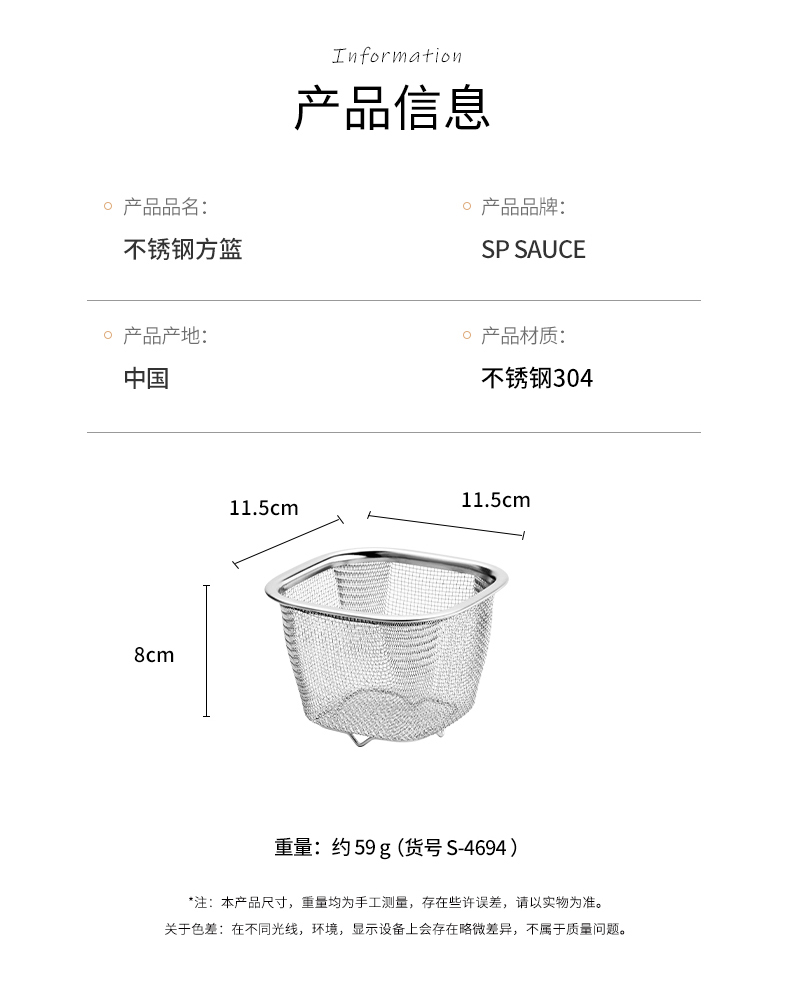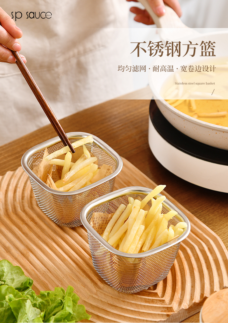 不锈钢方篮 不锈钢薯条篮炸鸡备菜篮放油炸食品水果沥水