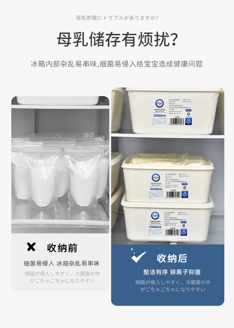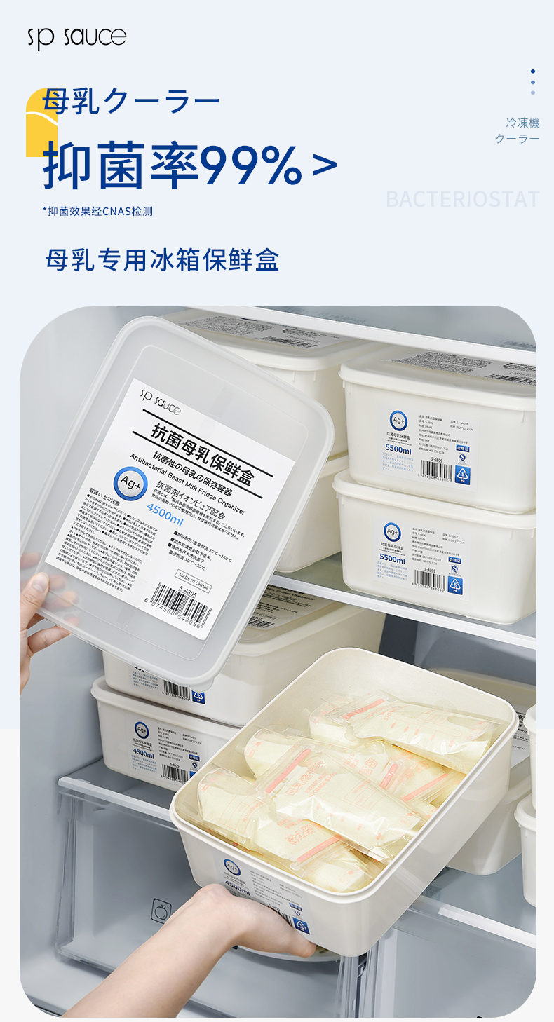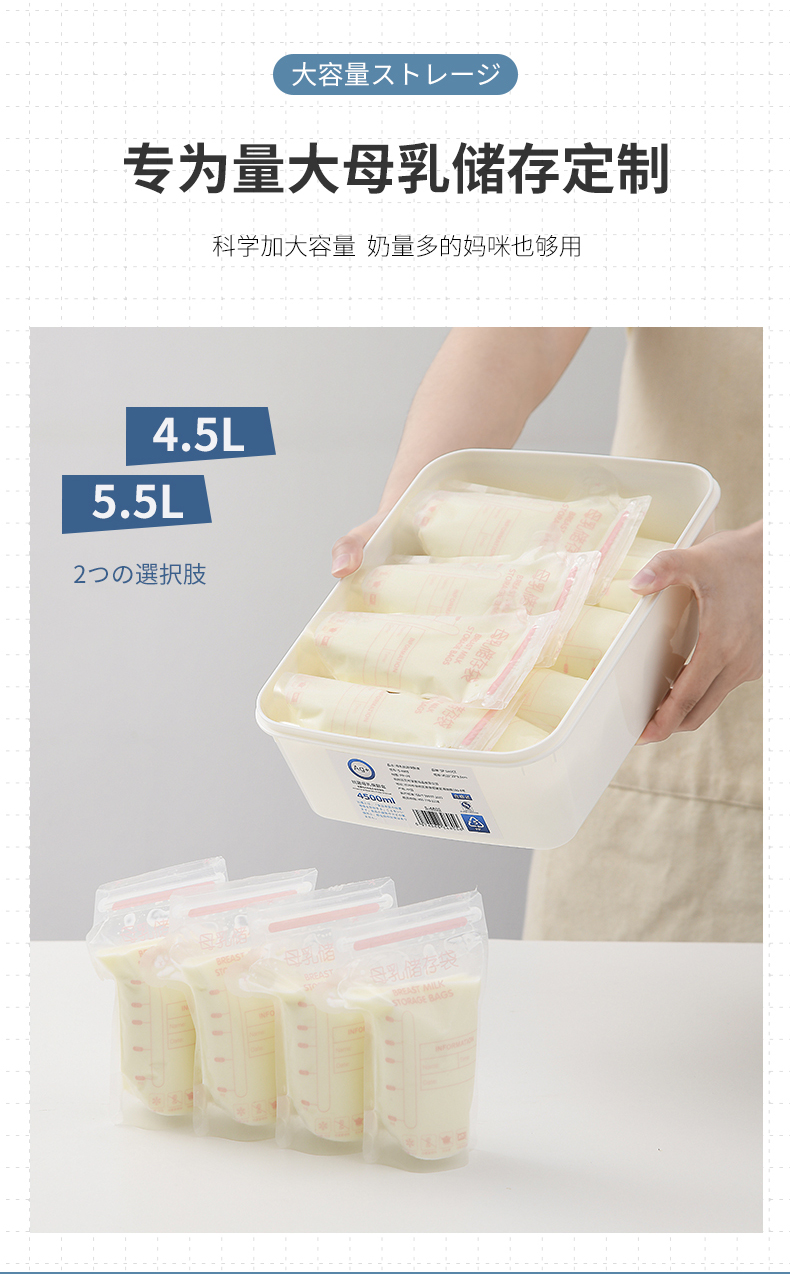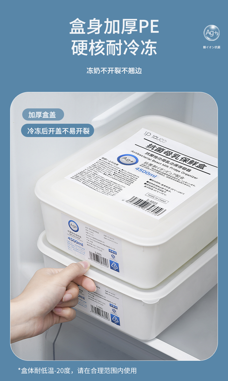 抗菌母乳冰箱保鲜盒 4.5L 母乳专用抗菌保鲜盒储奶保鲜冷场冷冻盒防串味密封