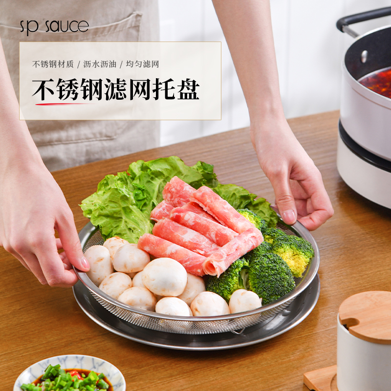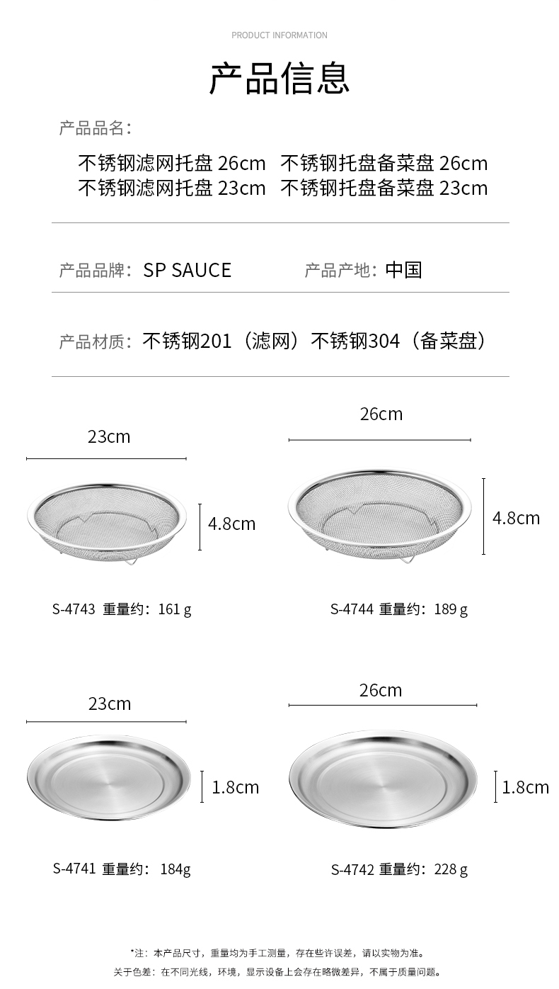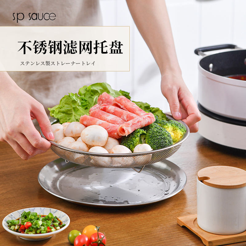 不锈钢托盘备菜盘 26cm 不锈钢备菜盘火锅备菜沥水沥油家用好物