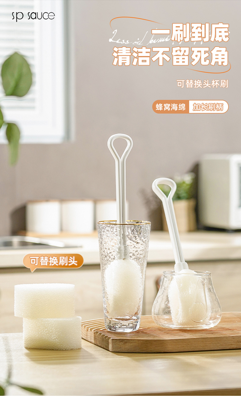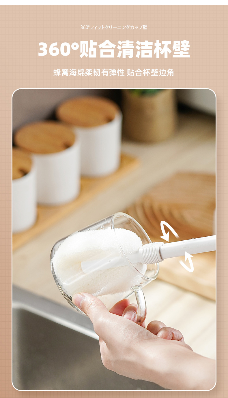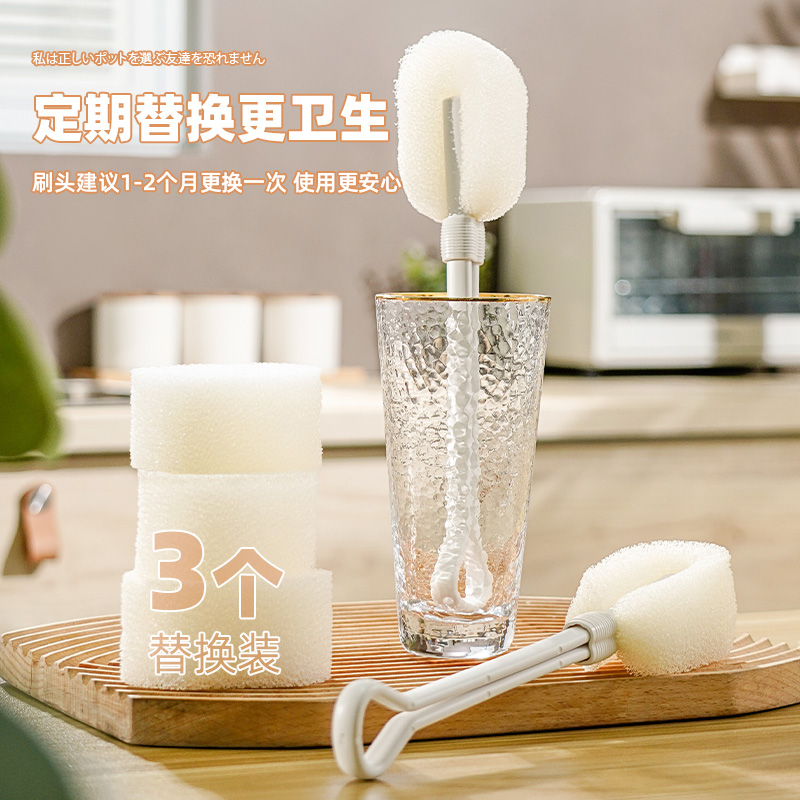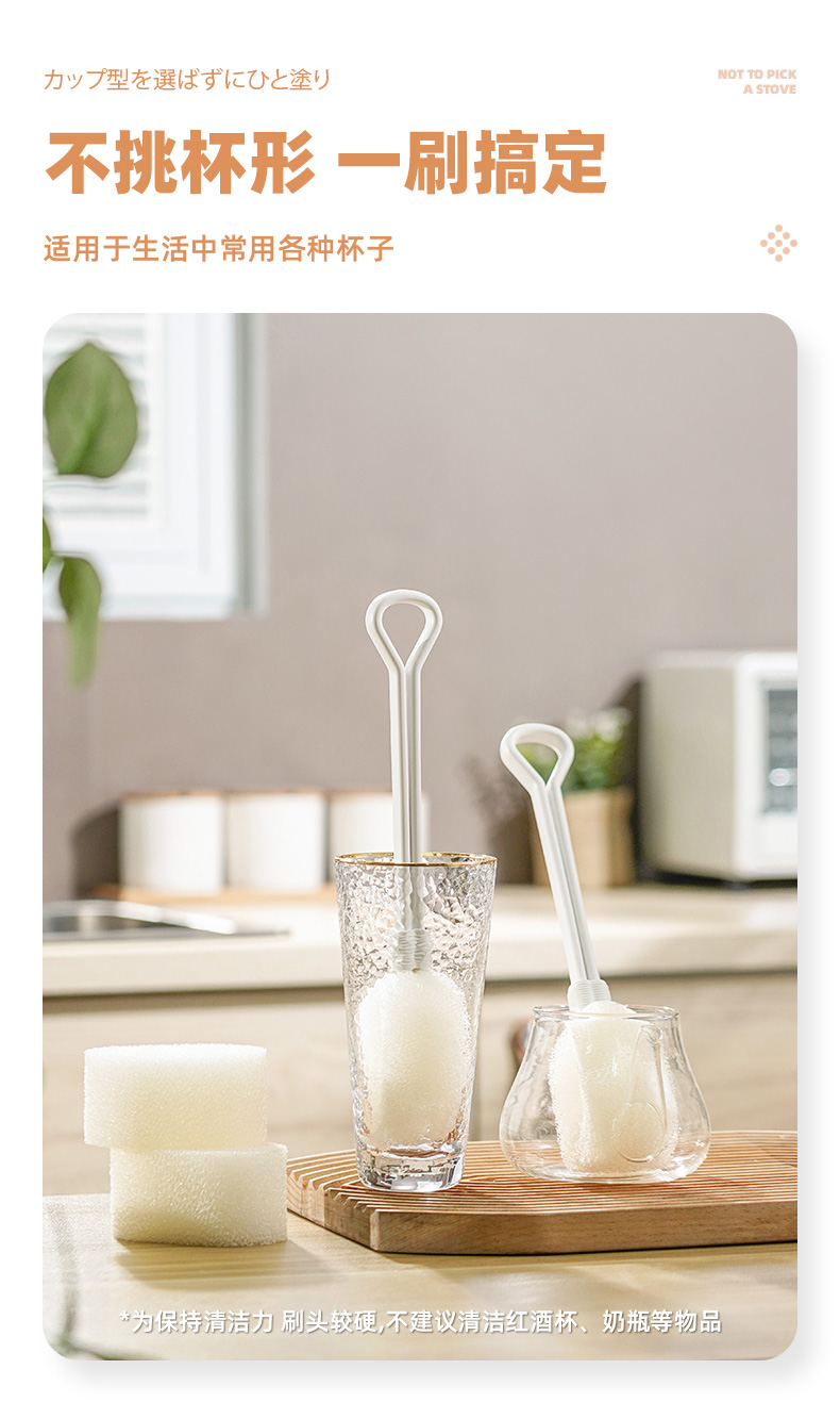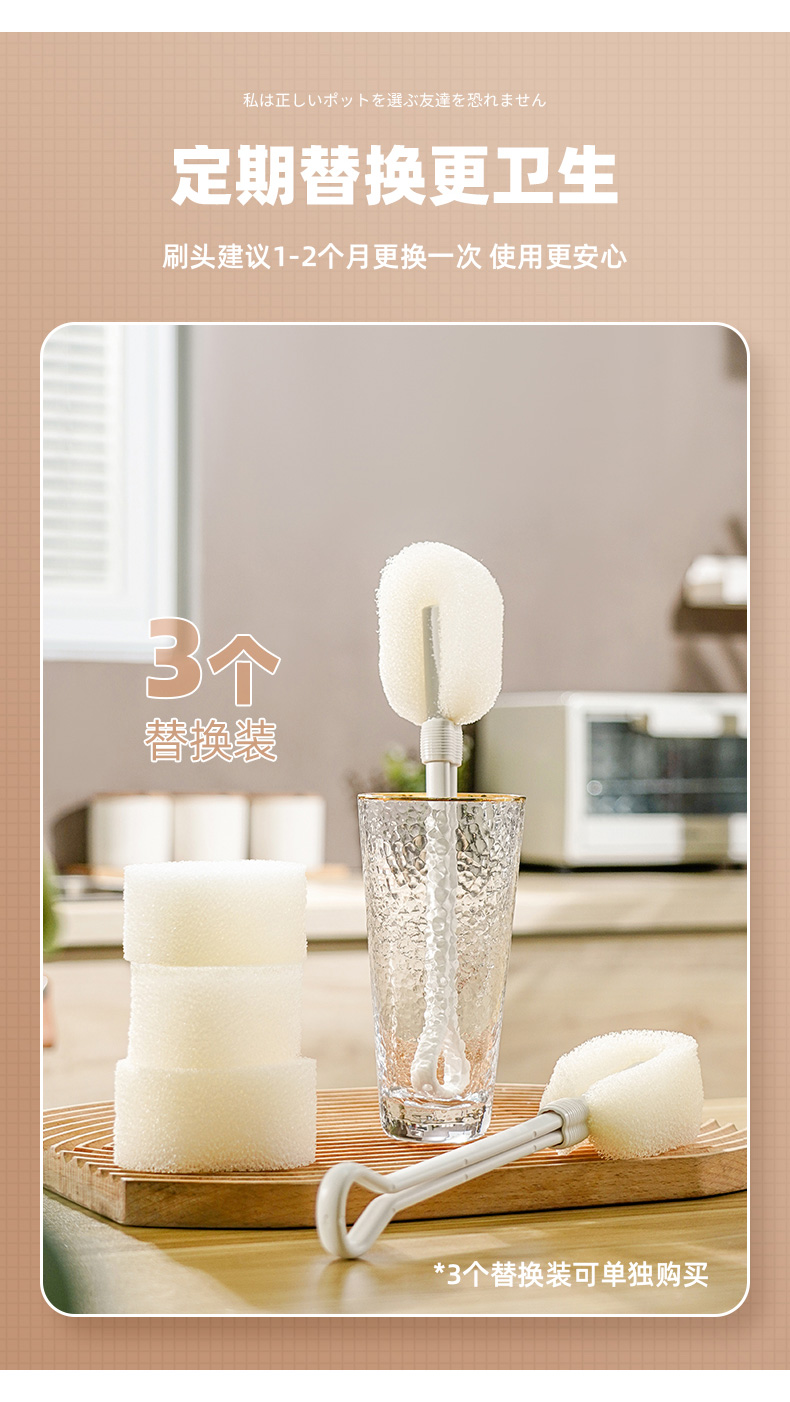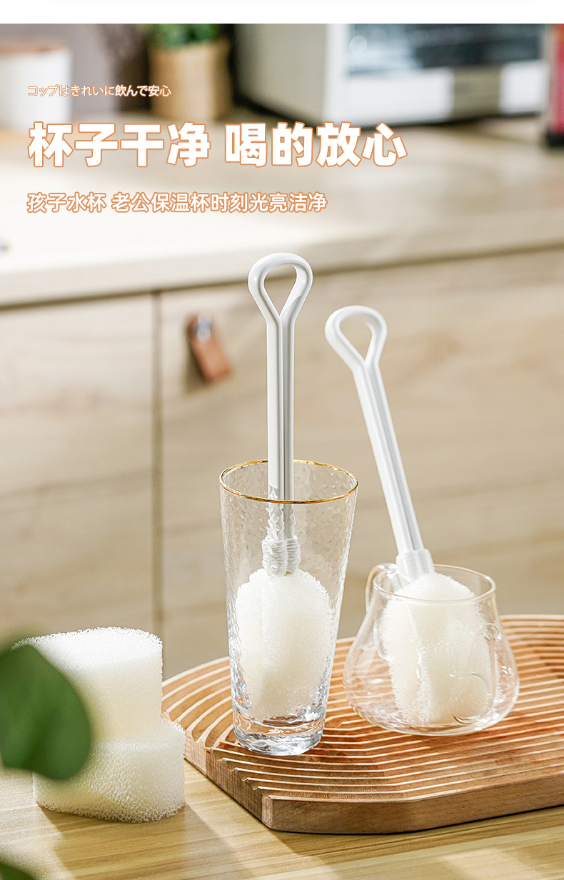 D 可替换头杯刷(2个替换头) 杯刷长柄清洁刷家用海绵刷奶瓶水杯去茶渍缝隙清洗工具洗杯子神器