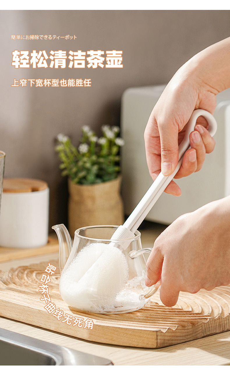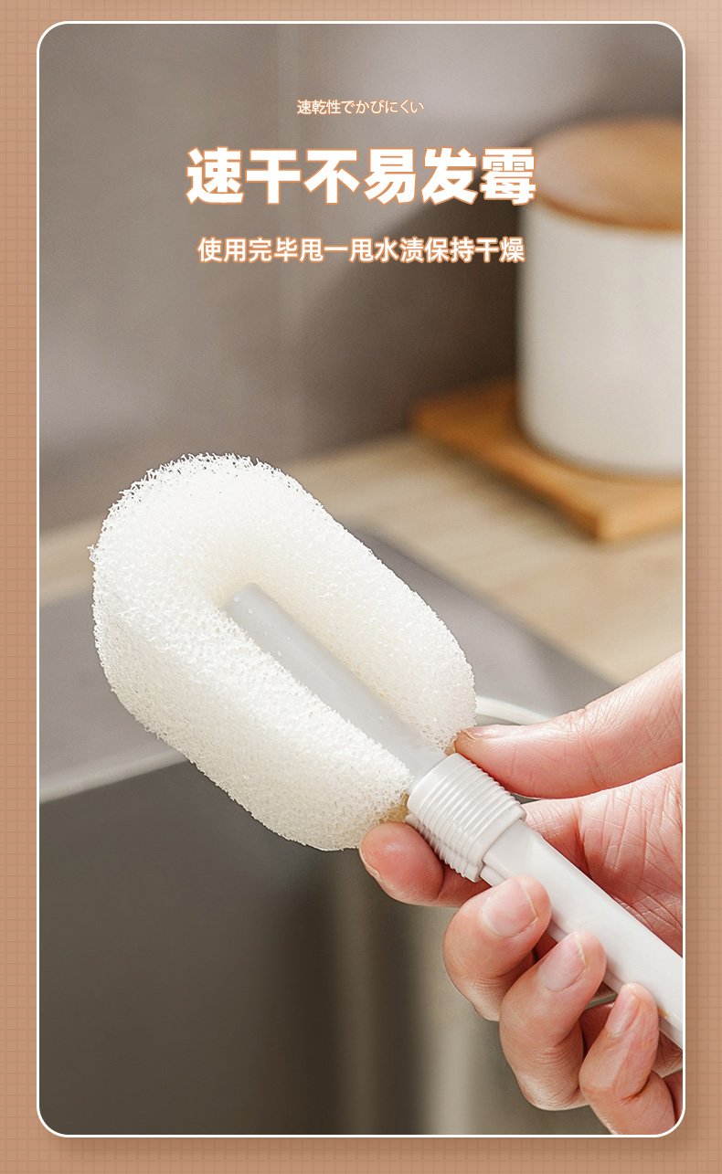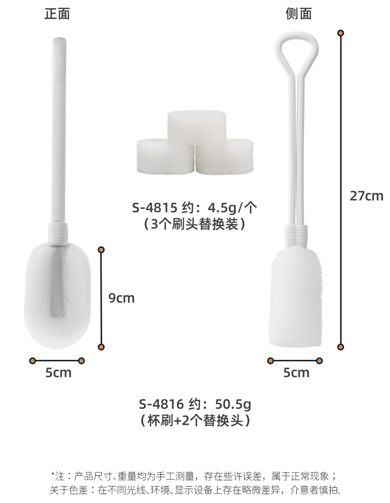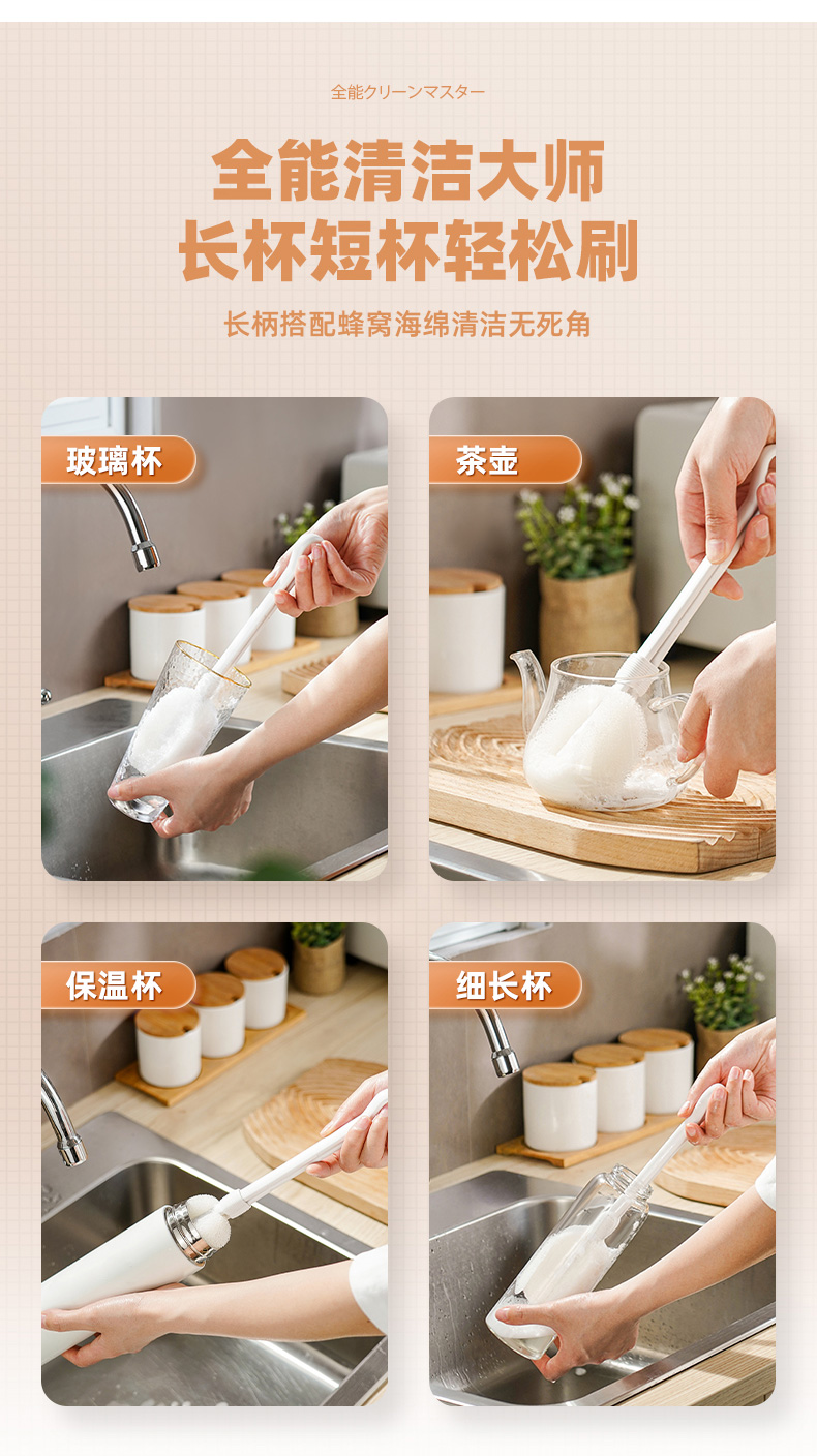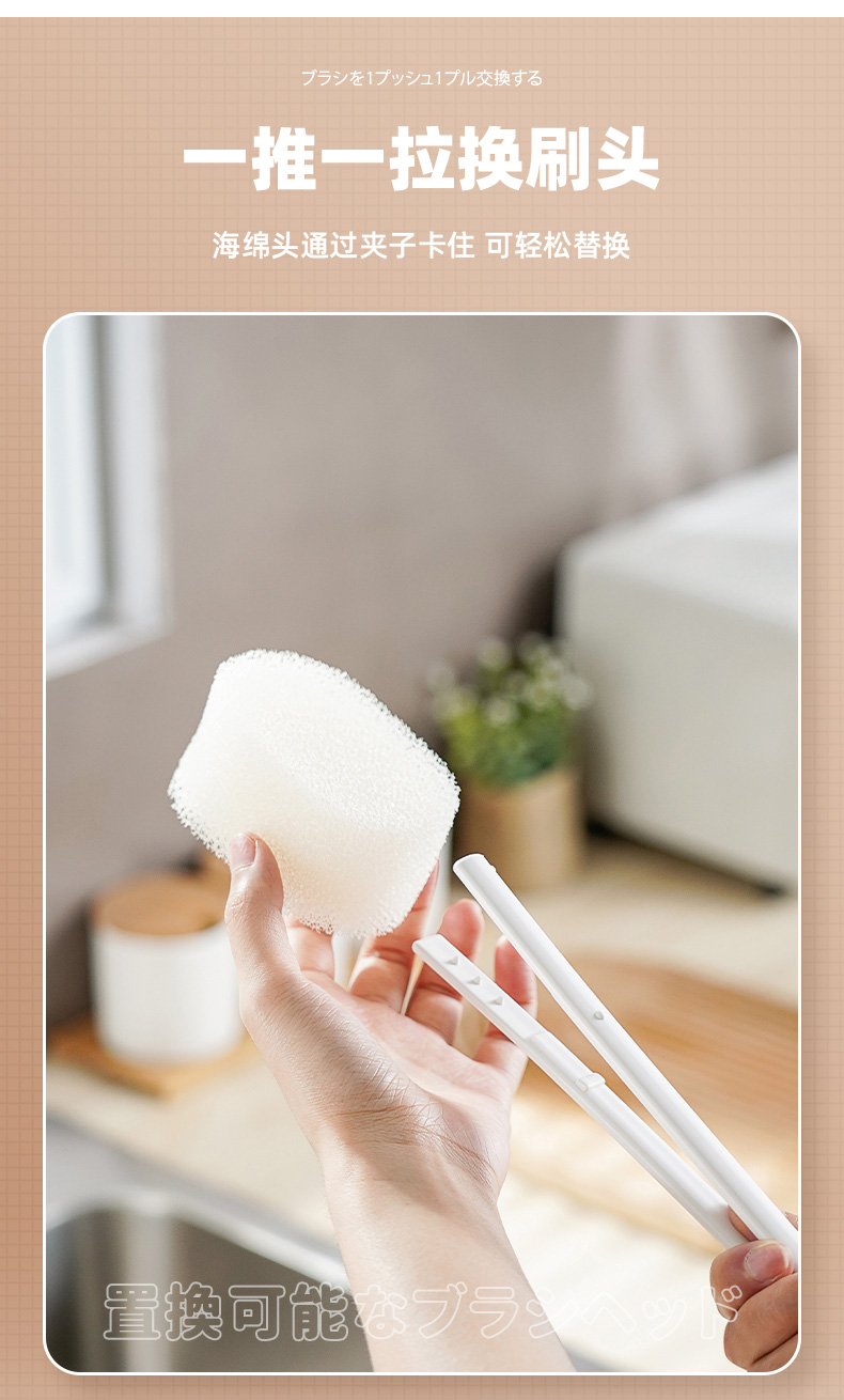 D 可替换头杯刷(2个替换头) 杯刷长柄清洁刷家用海绵刷奶瓶水杯去茶渍缝隙清洗工具洗杯子神器