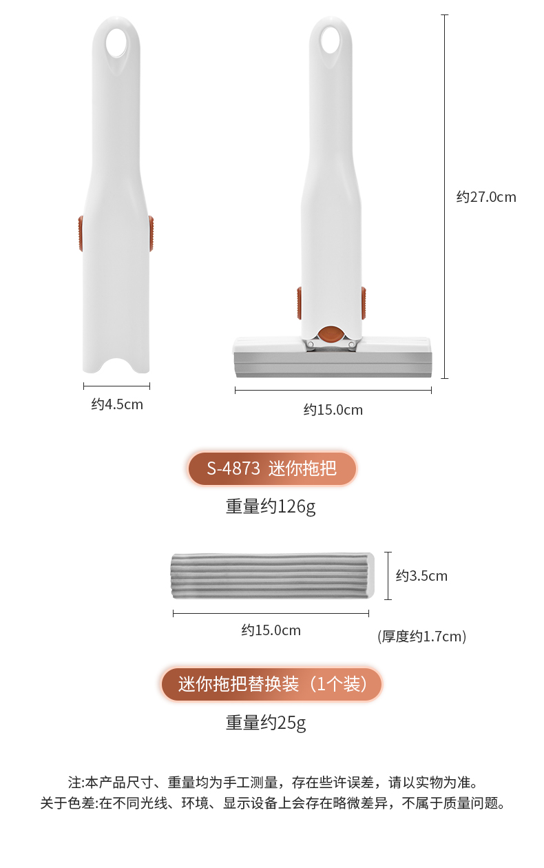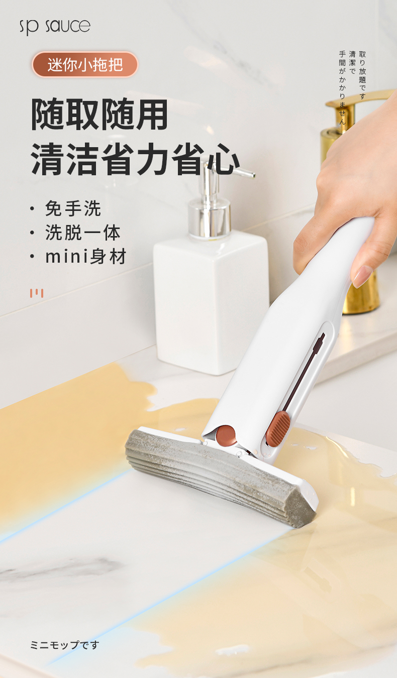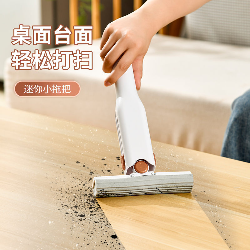 D 迷你拖把 海绵吸水手持迷你小拖把免手洗胶棉厨房浴室厕所卫生间洗手台桌面