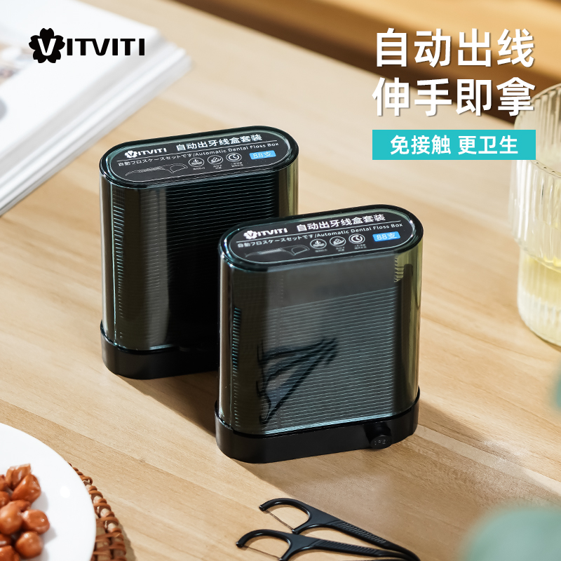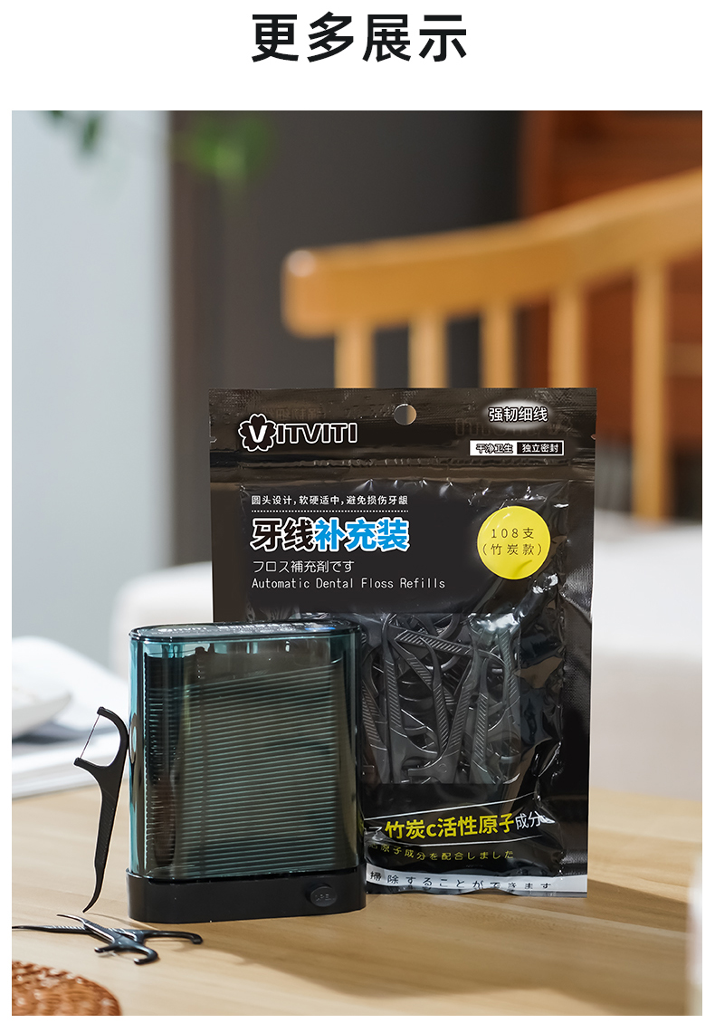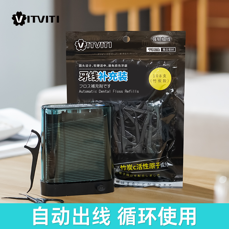 D自动出牙线盒套装88支(竹炭款) 竹炭深洁自动盒装牙线棒超细家庭装牙签线剔牙线