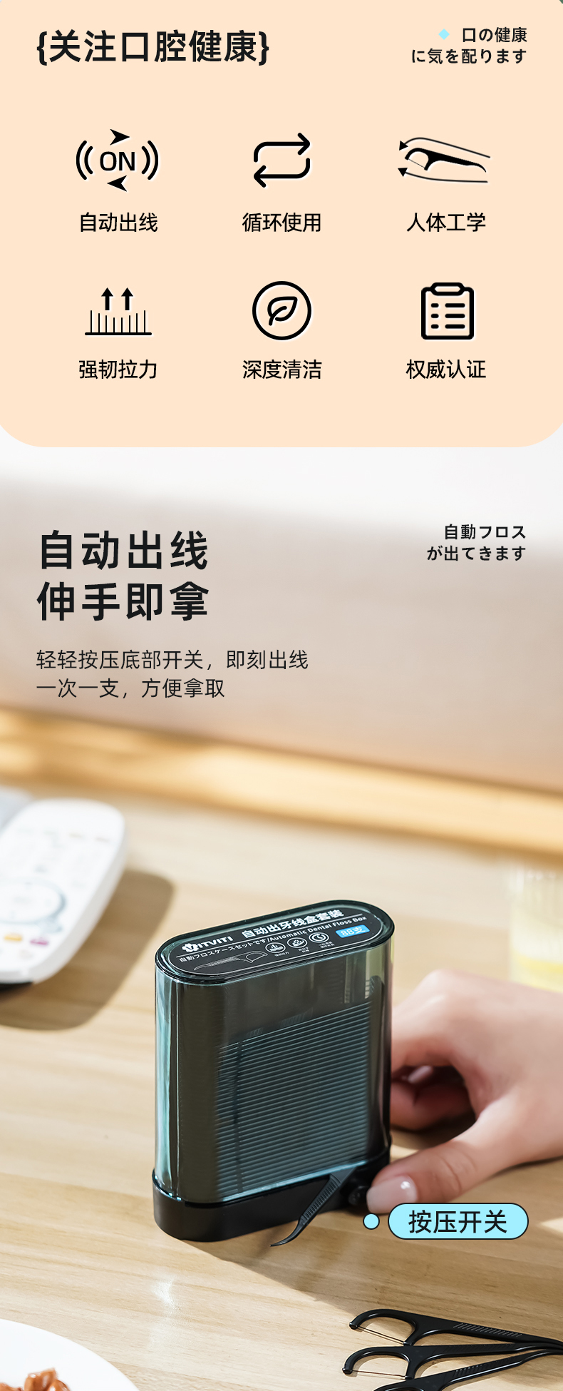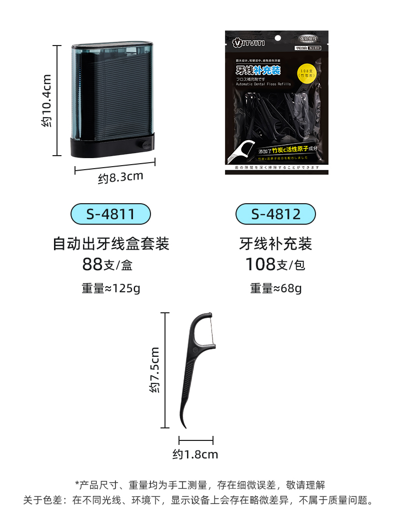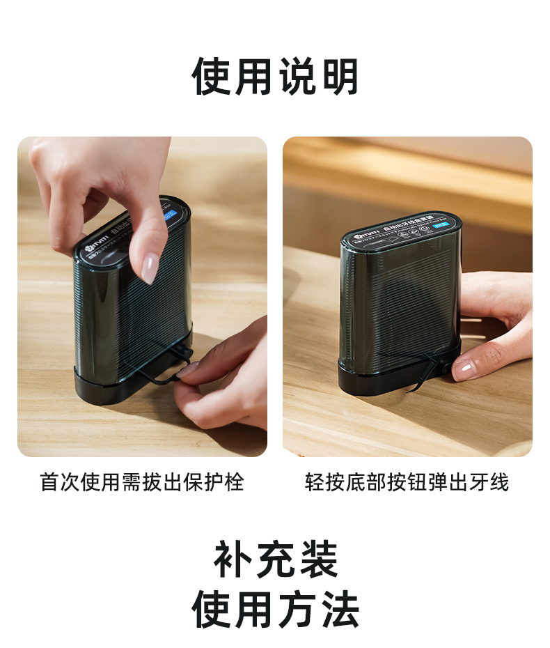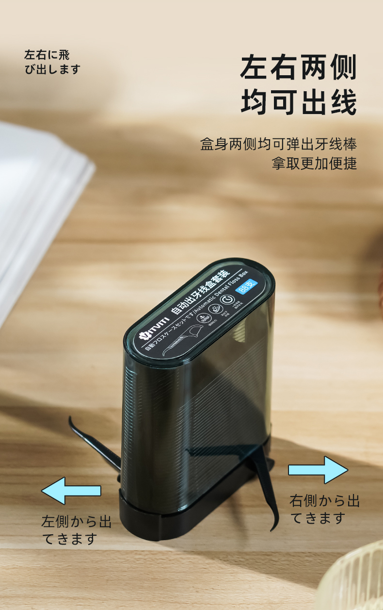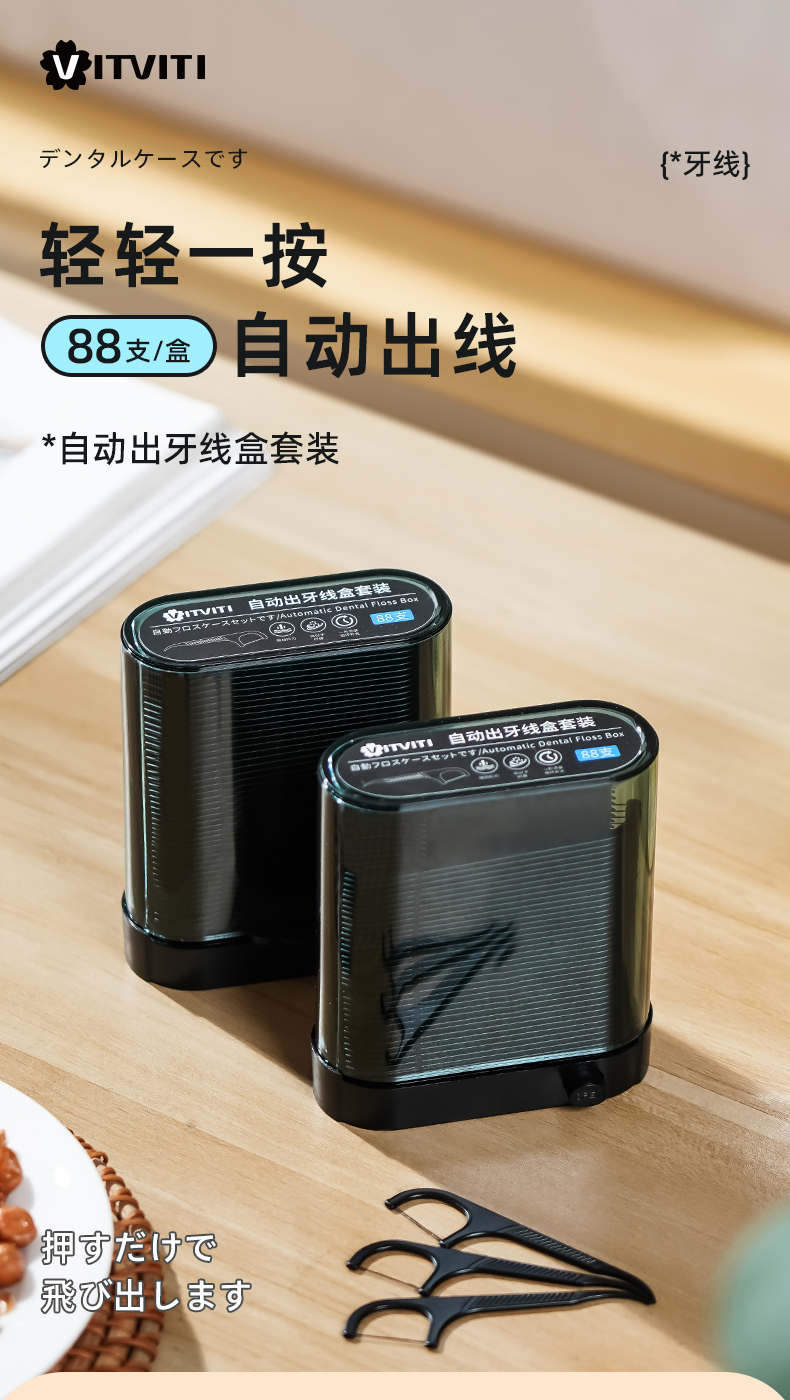 产品材质盒体:PC+ABS、牙线手柄:聚苯乙烯、牙线:高分子两聚乙烯纤维,竹炭
