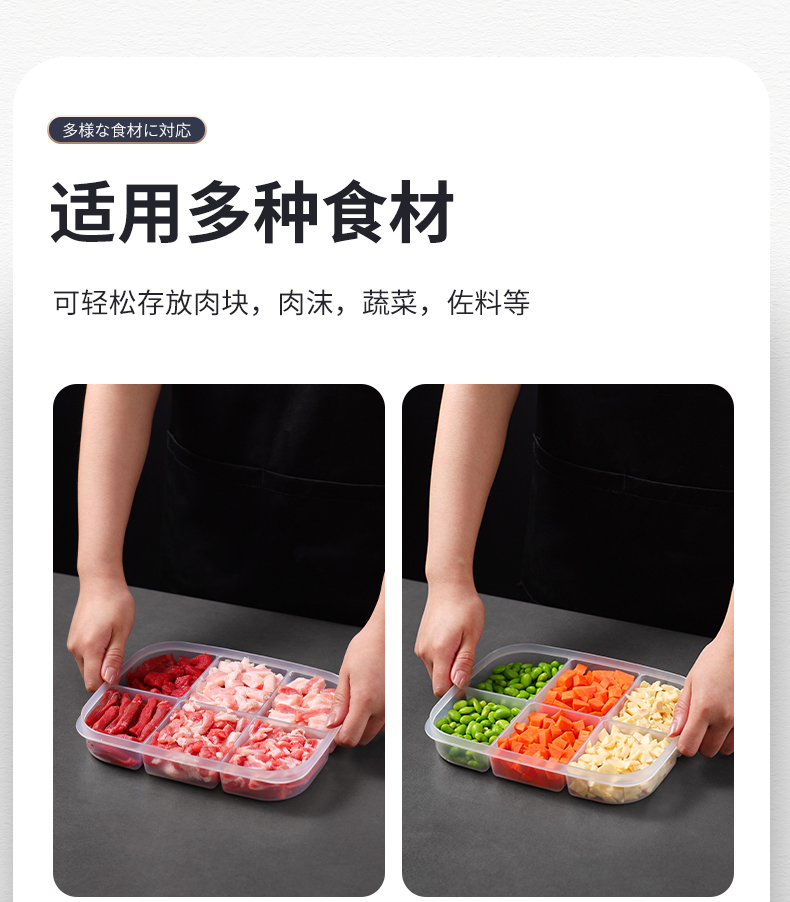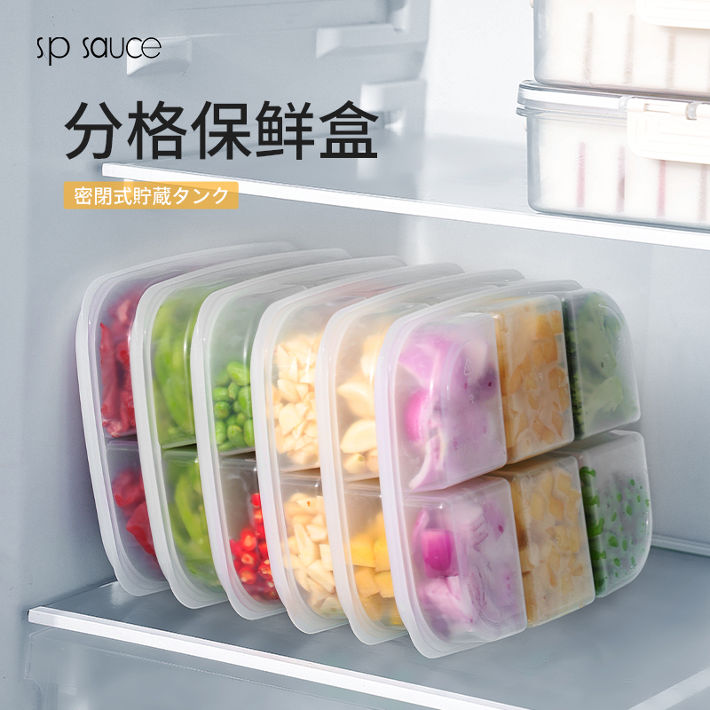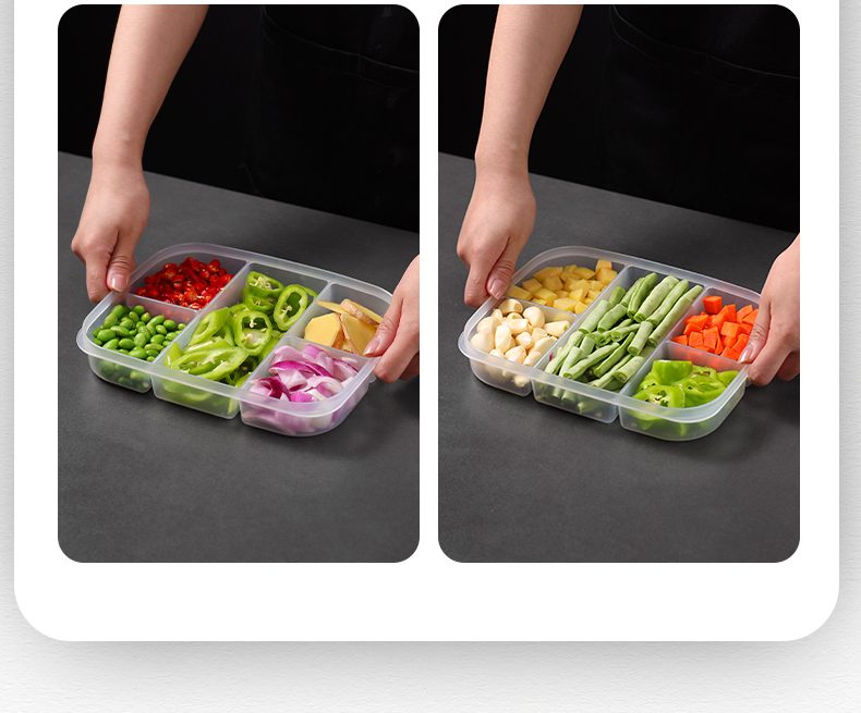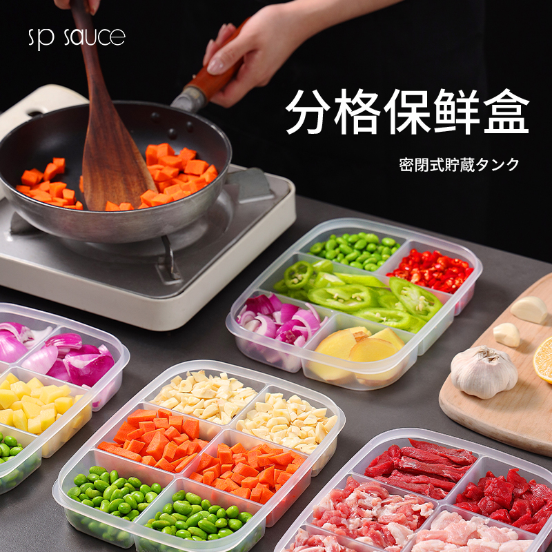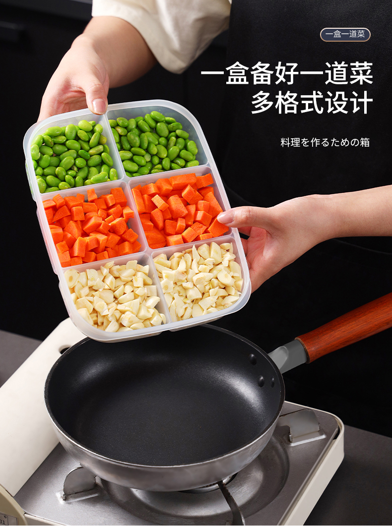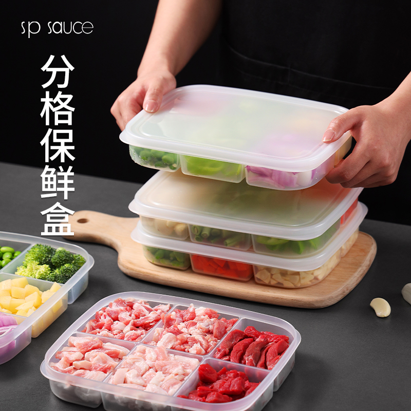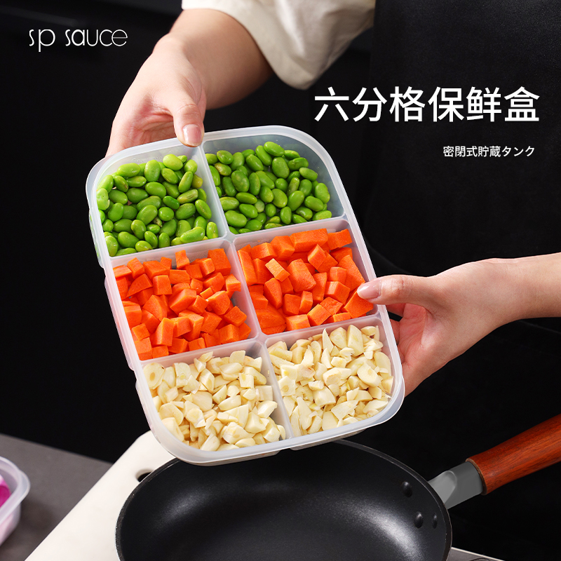 六分格保鲜盒 分格保鲜盒备菜盘佐料收纳盒食品保鲜盒冰箱收纳盒冻肉盒子