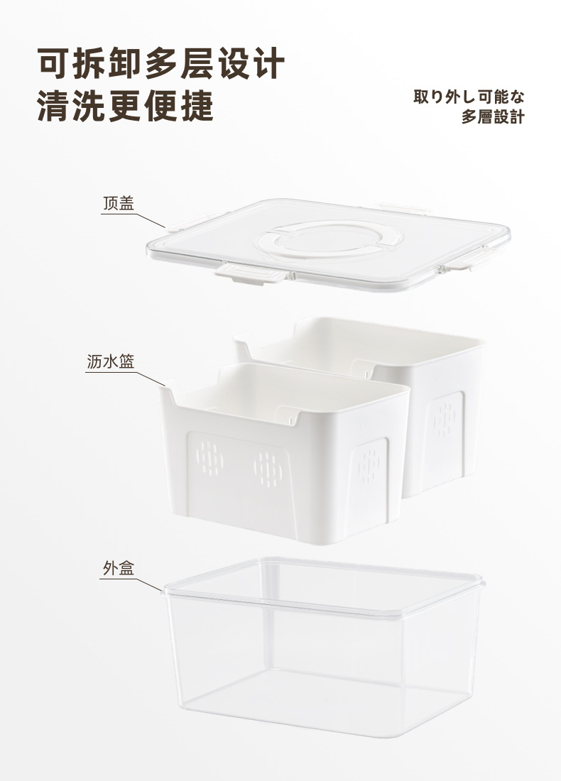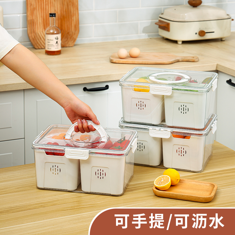 D手提沥水保鲜盒 三分格