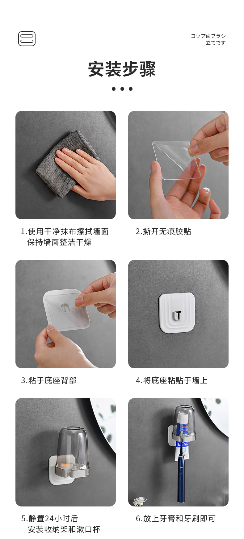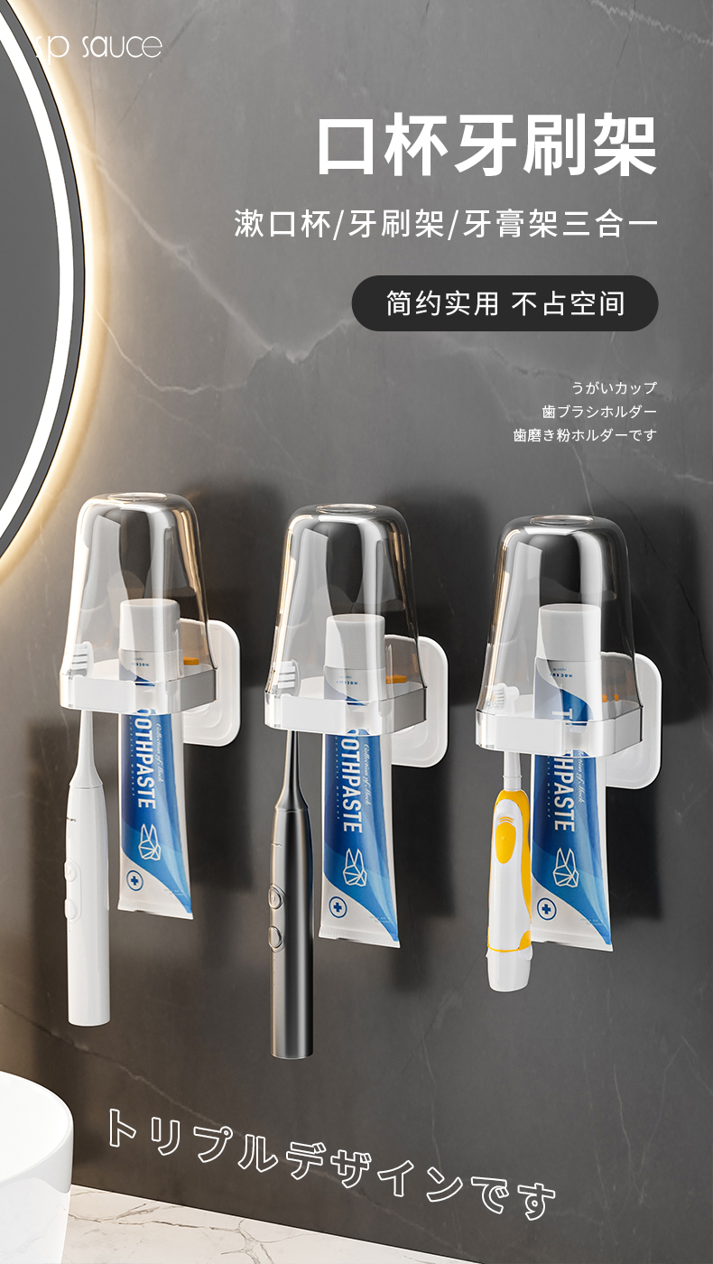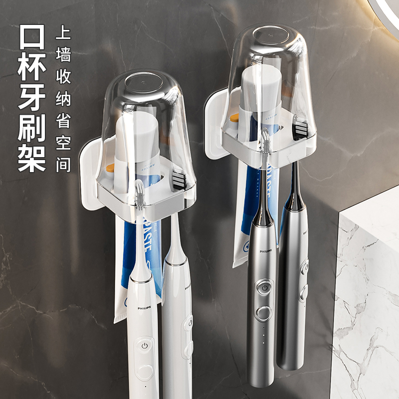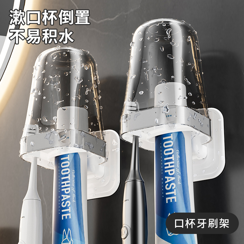 D 口杯牙刷架 多功能牙刷架口杯架电动牙刷架牙膏架组合套装挂壁漱口杯收纳架