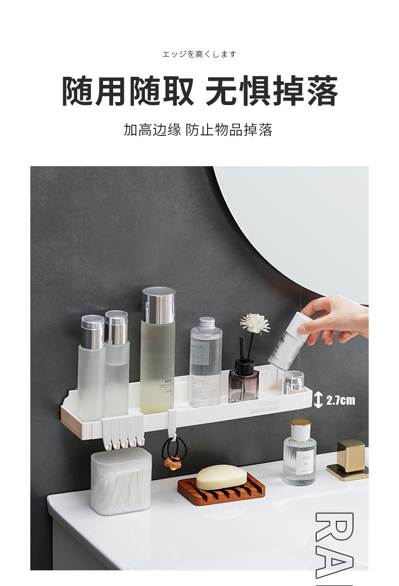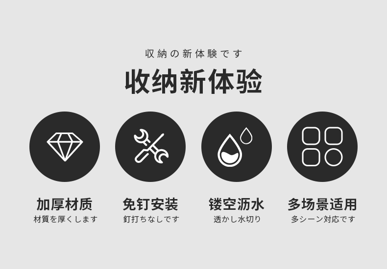 壁挂式置物架 小号 收纳筐浴室置物架带挂钩厨房收纳调料锅铲