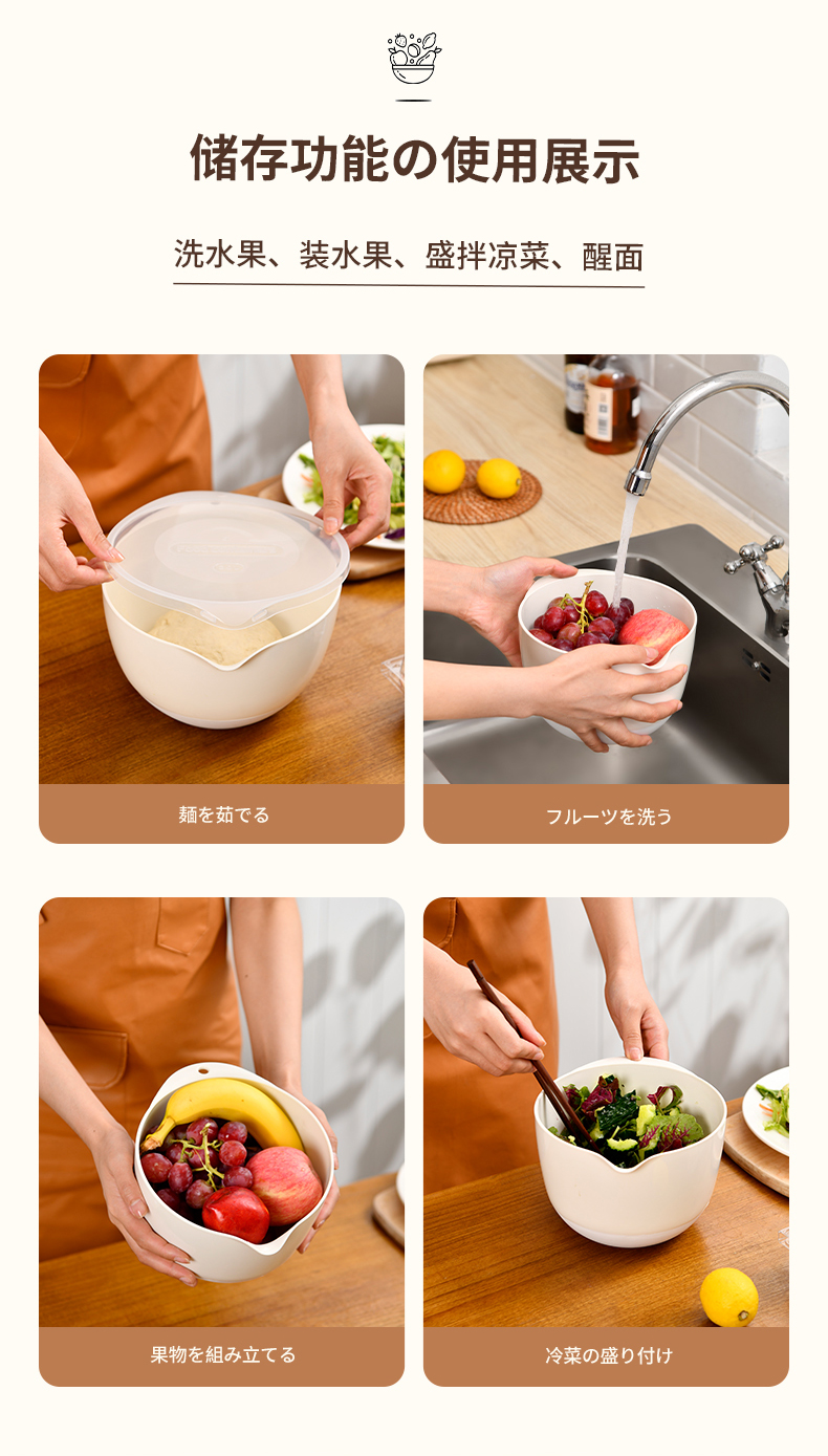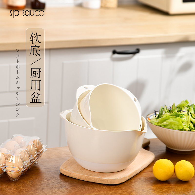 D 软底厨用盆(中号) 多功能厨房盆揉面发面盆带盖大碗软底防晃盆沙拉制作碗加大果盘打蛋打奶油碗