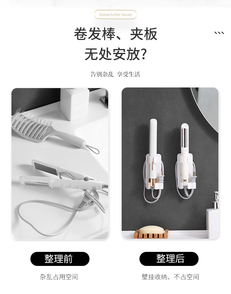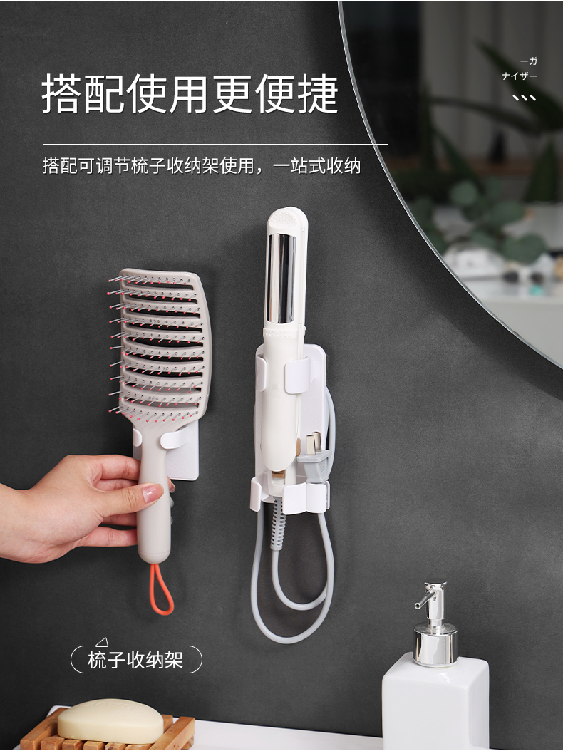 美妆工具收纳架 卷发棒收纳架卫生间壁挂夹板直发梳吹风机置物架