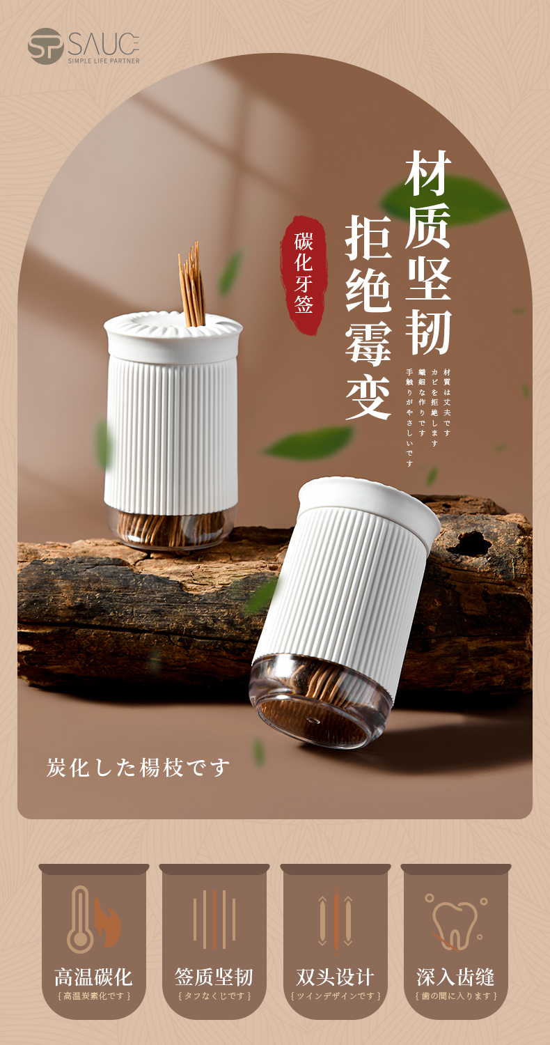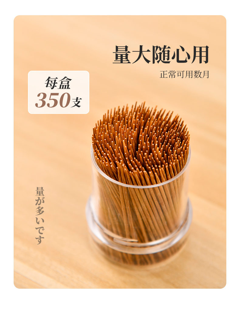 D 碳化牙签(350支) 家用便携碳化竹牙签竹制剔牙神器一次性牙缝清洁