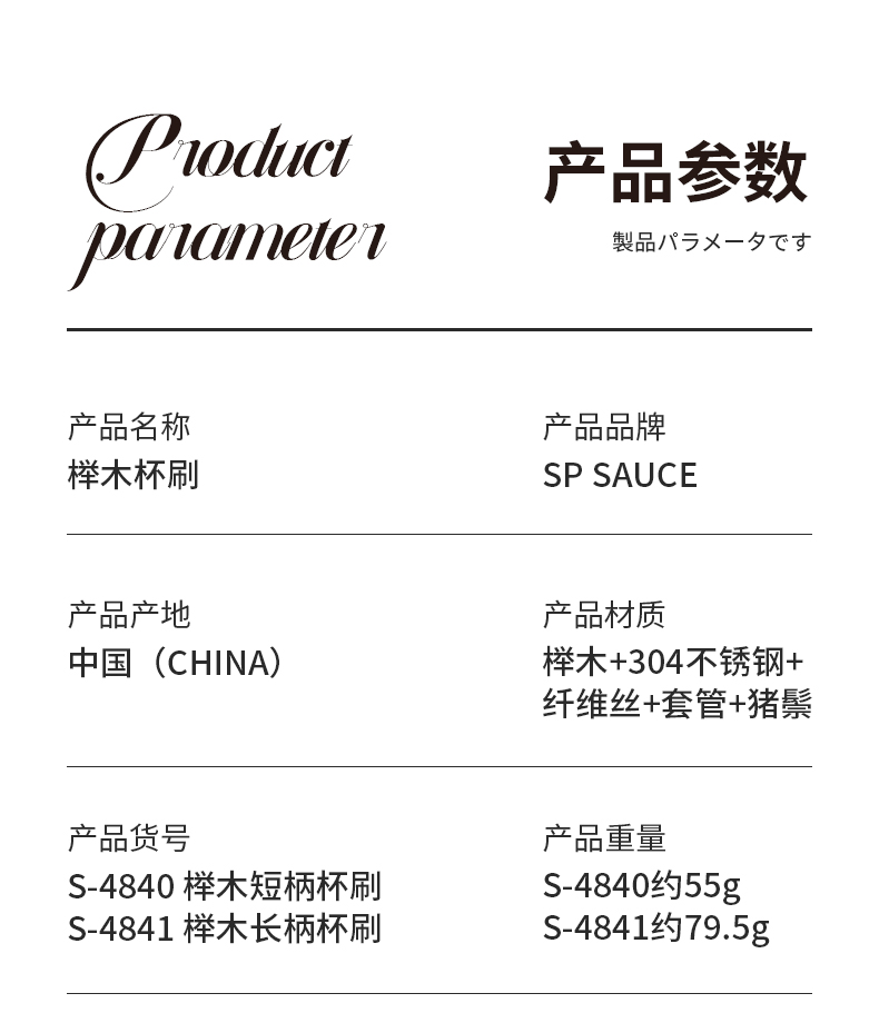 产品材质榉木+304不锈钢+纤维丝+套管+猪鬃
