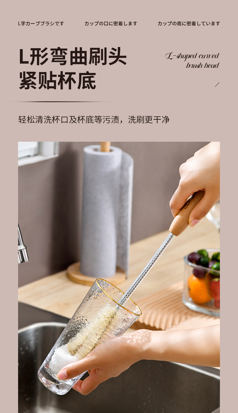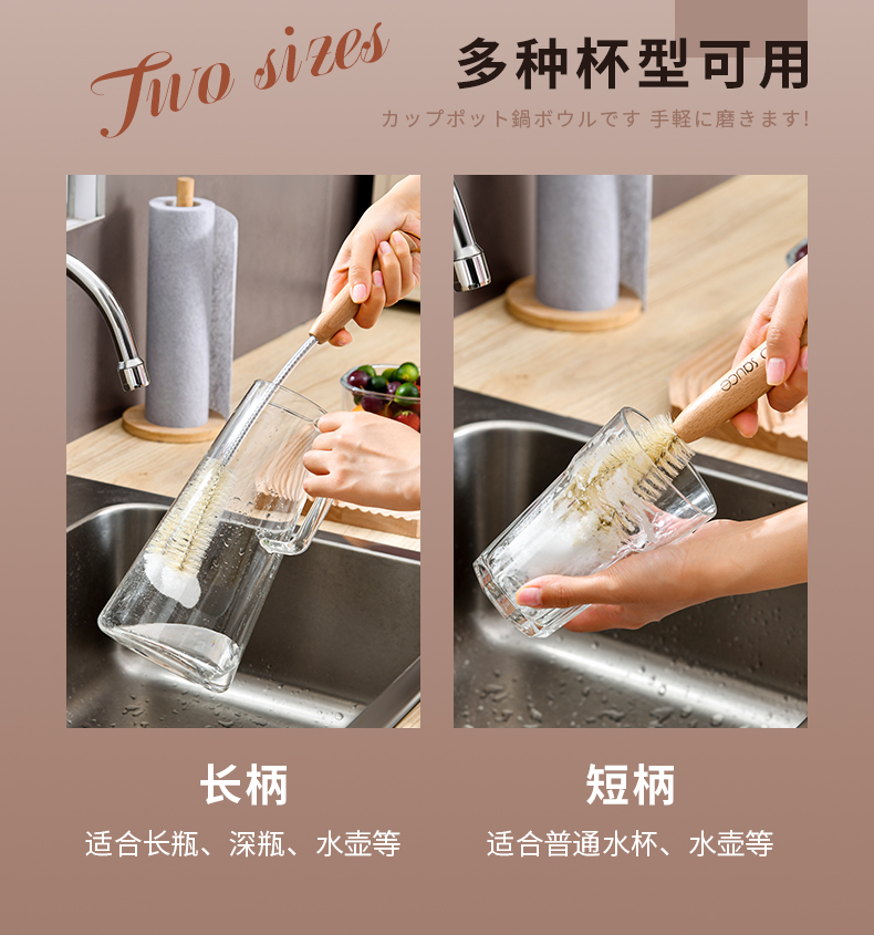 榉木长柄杯刷 杯刷奶瓶刷洗杯子刷子神器豆浆破壁机专用清洁刷