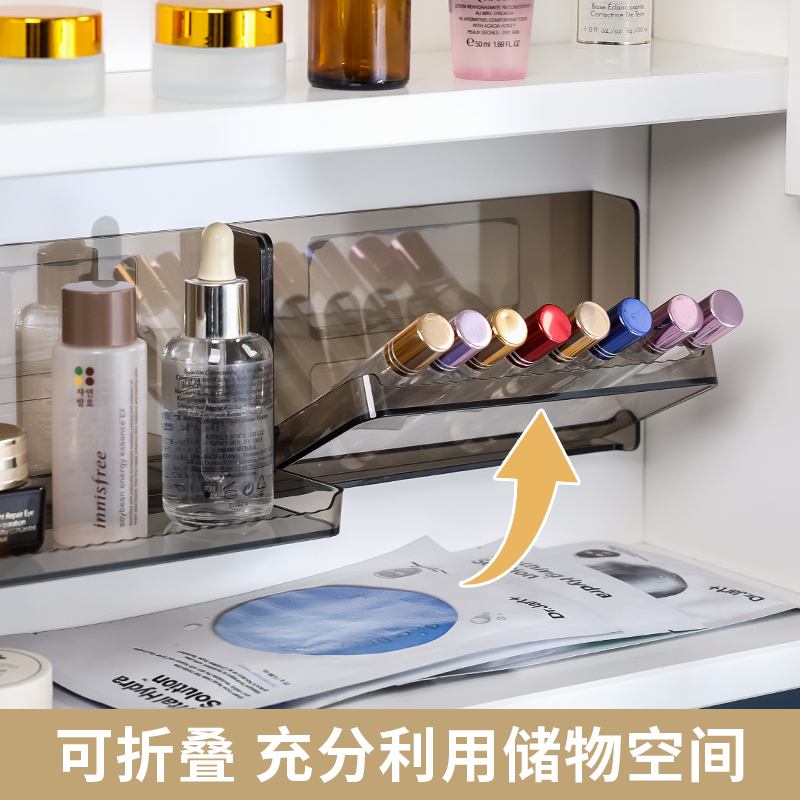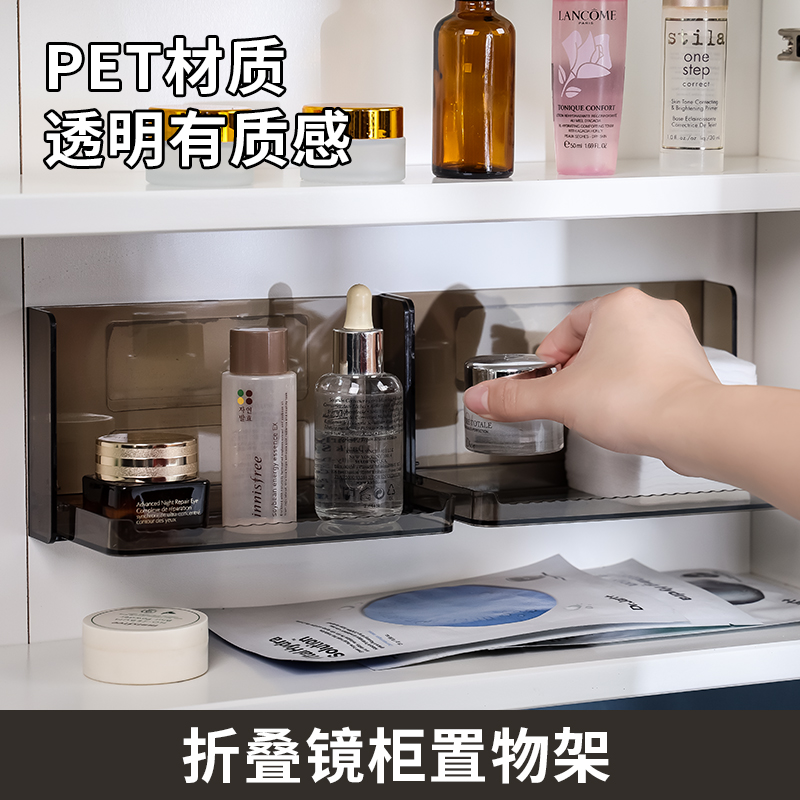 折叠镜柜置物架 镜柜收纳盒小瓶化妆品置物架可翻折收纳架床头收纳架手表耳机充电器置放架