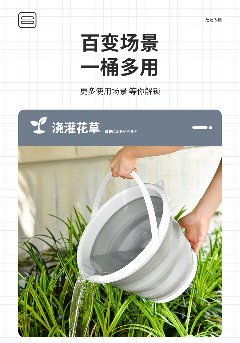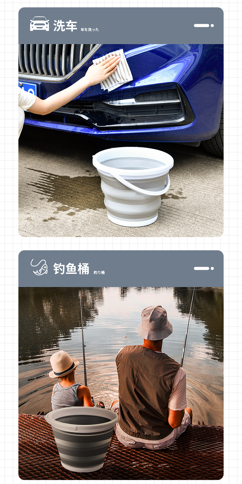 折叠桶 10L 可折叠水桶便携式户外旅行家用小桶钓鱼桶塑料泡脚洗车野外烧烤用