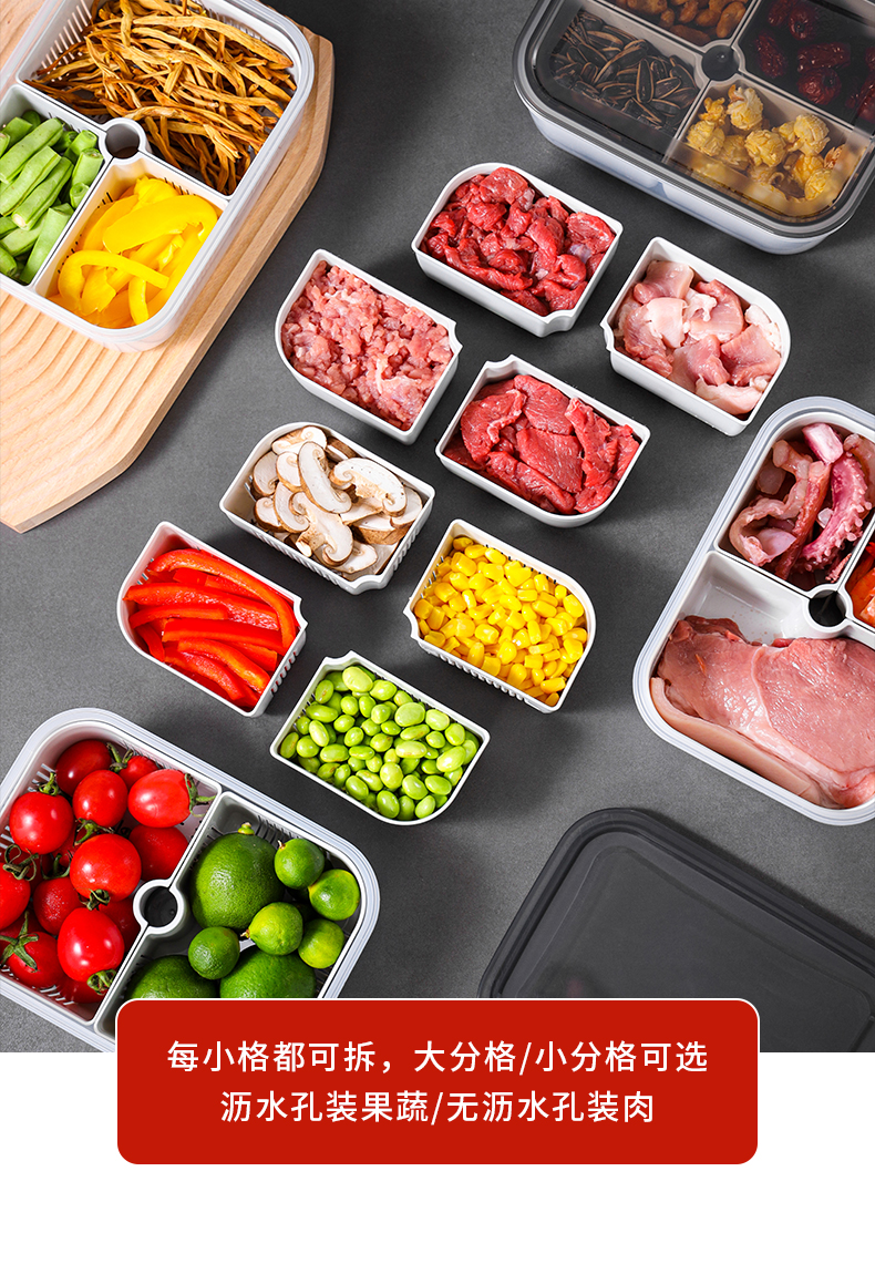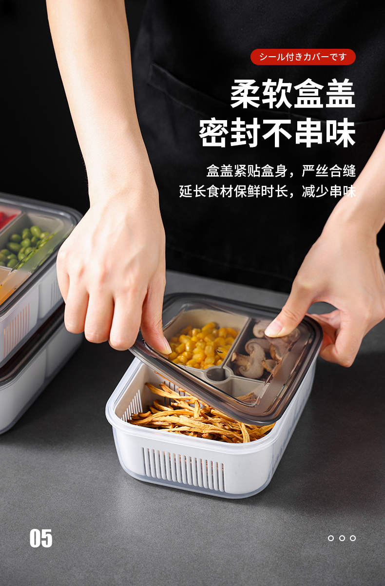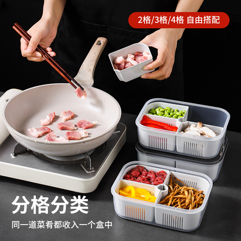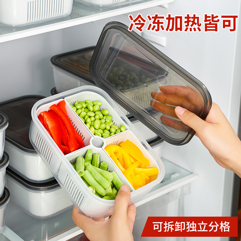 D分格保鲜盒(两分格),分格沥水保鲜盒(两分格) 分格备菜沥水保鲜盒家用厨房备菜神器储物瓜子坚果存放