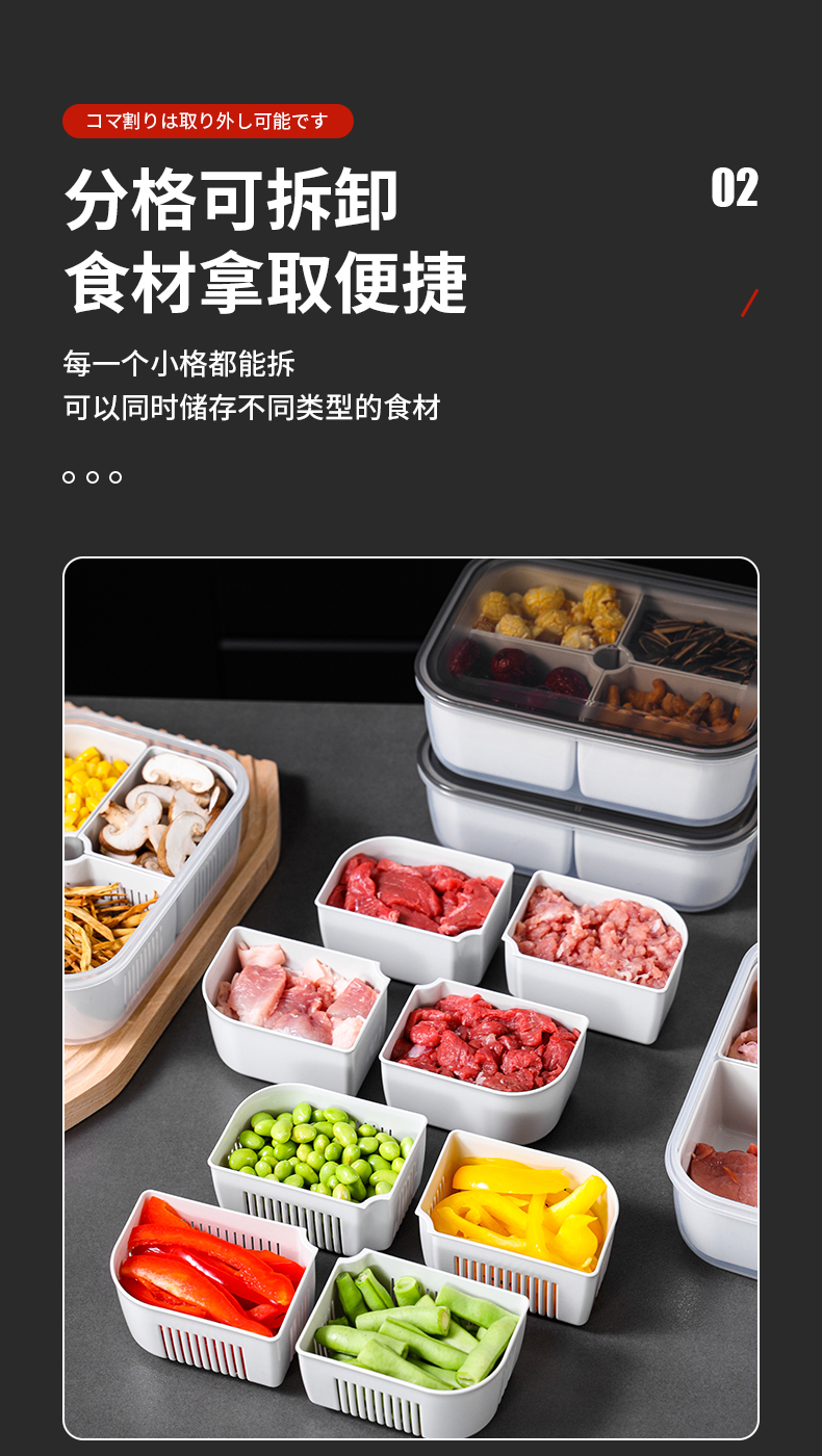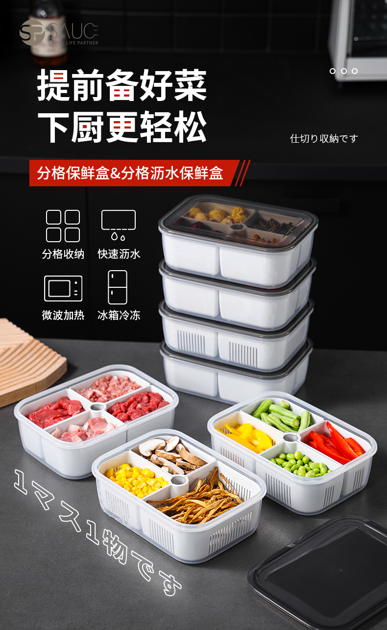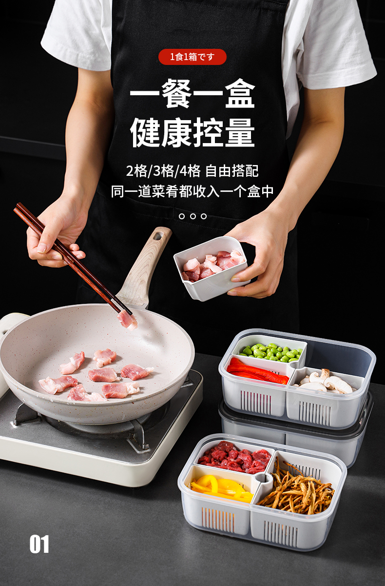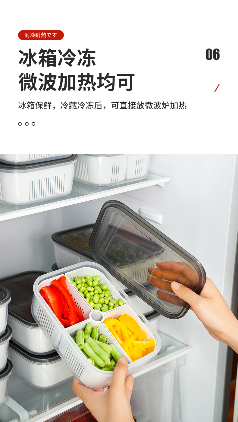D分格保鲜盒(两分格),分格沥水保鲜盒(两分格) 分格备菜沥水保鲜盒家用厨房备菜神器储物瓜子坚果存放