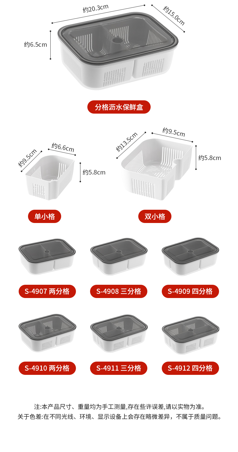 D 分格保鲜盒(三分格),分格沥水保鲜盒(三分格) 分格备菜沥水保鲜盒家用厨房备菜神器储物瓜子坚果存放
