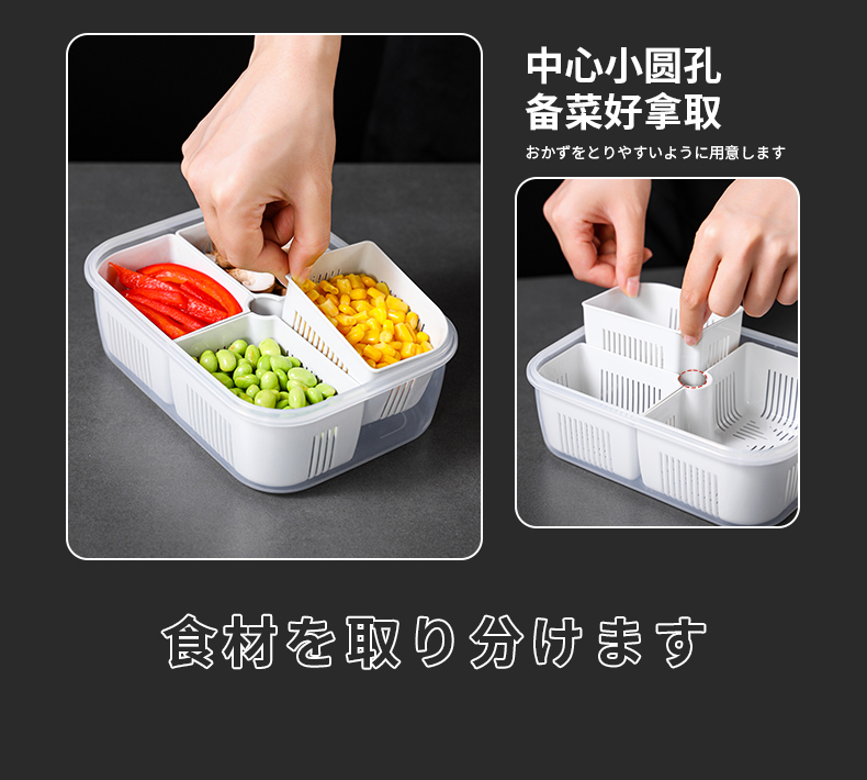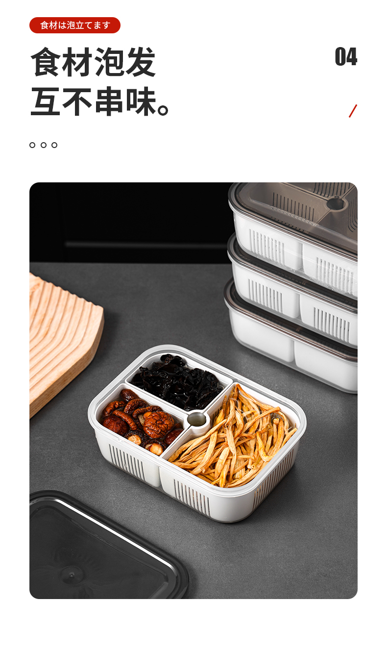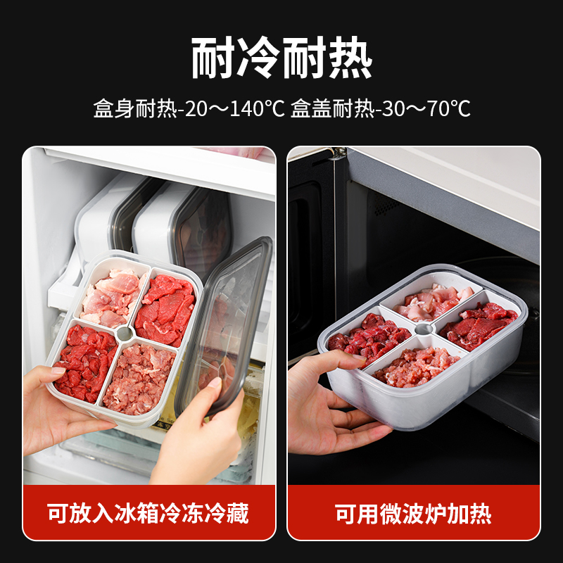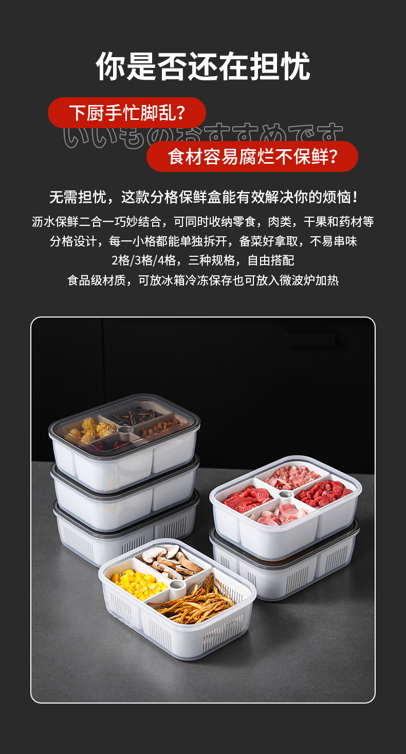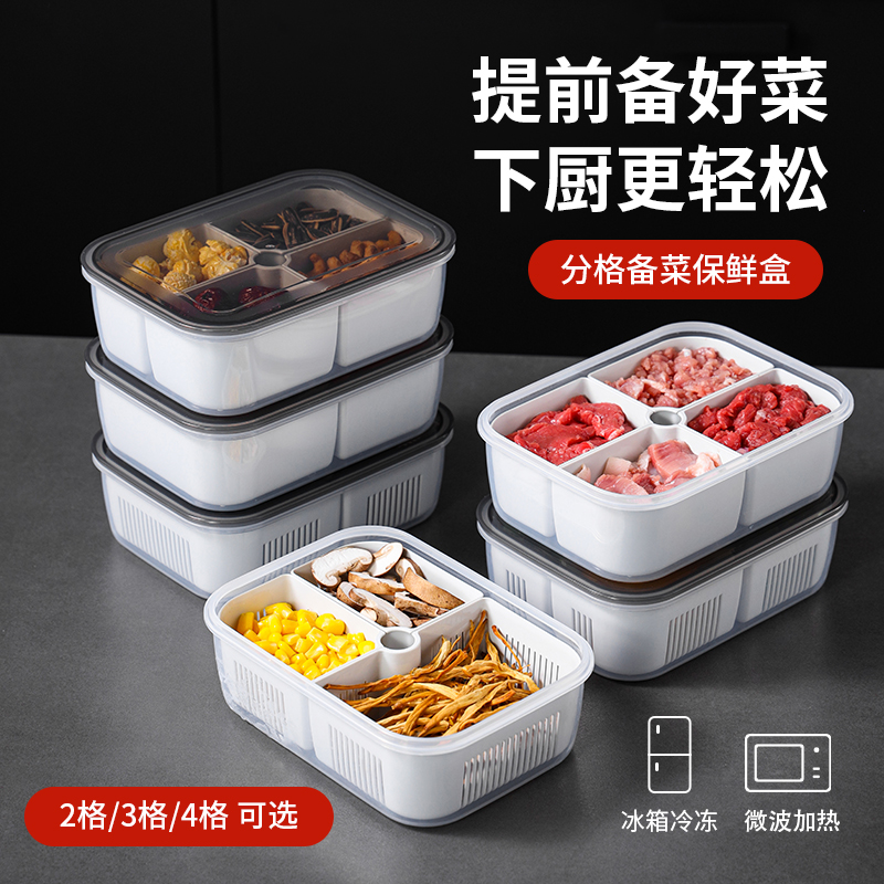 D分格保鲜盒(四分格),分格沥水保鲜盒(四分格) 分格备菜沥水保鲜盒家用厨房备菜神器储物瓜子坚果存放