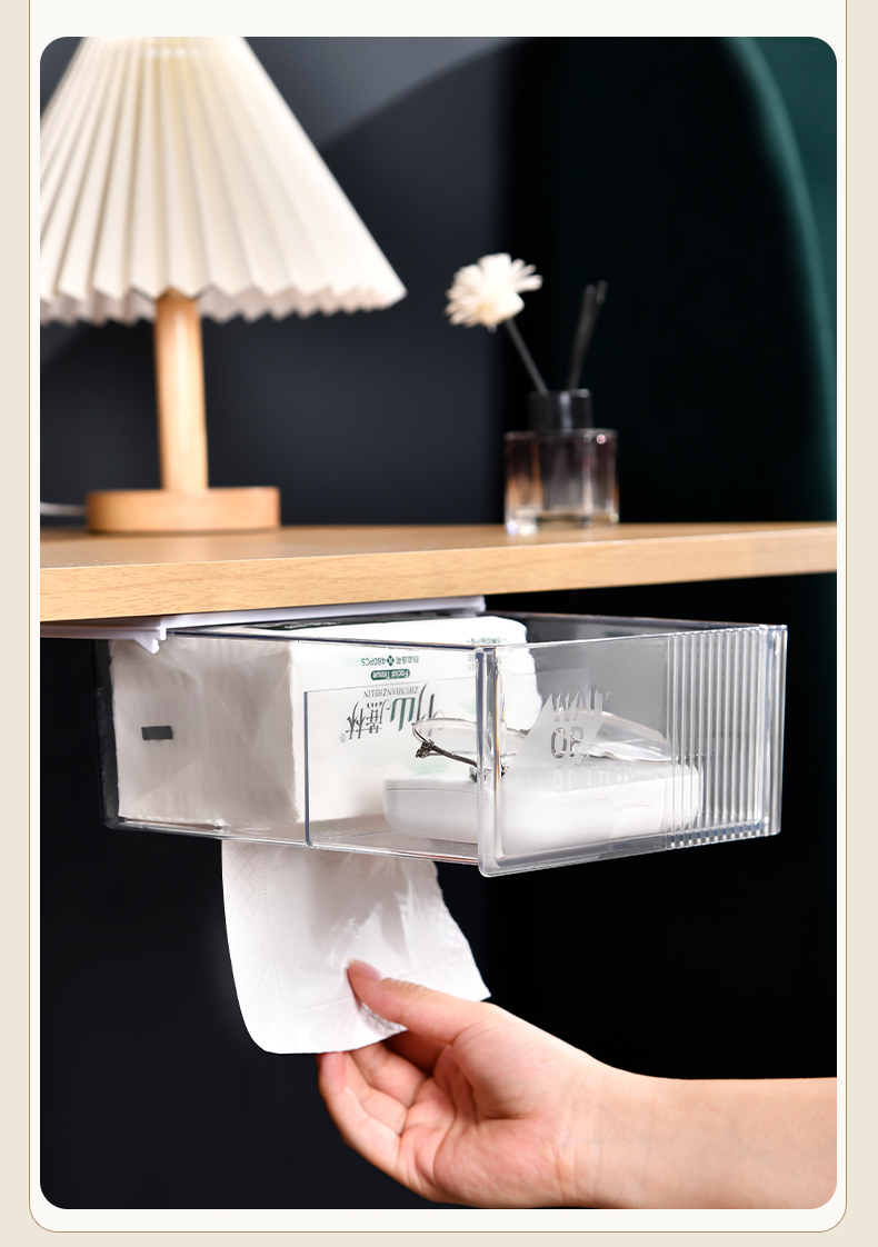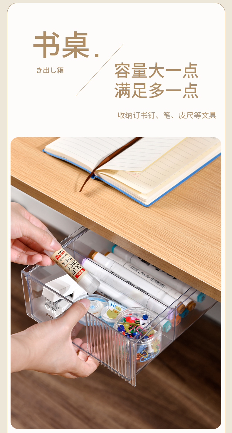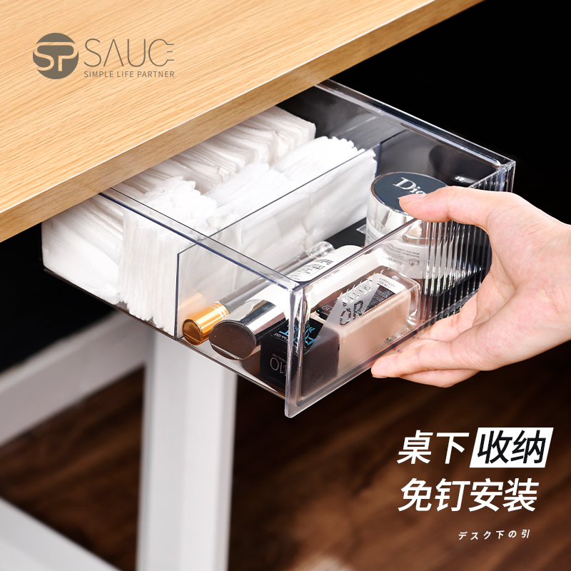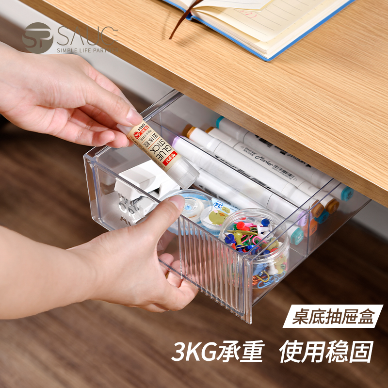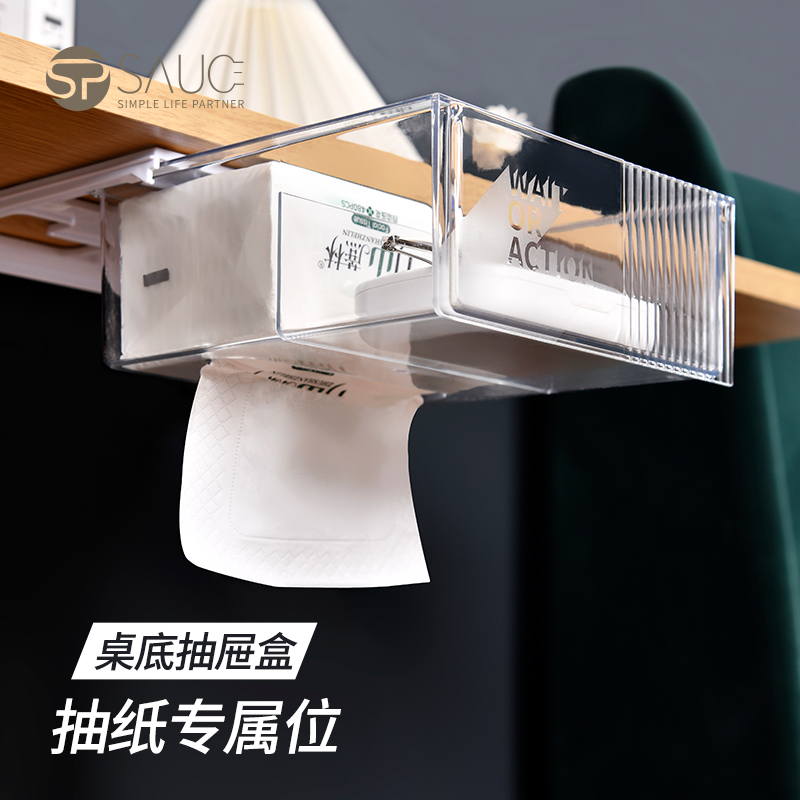 D桌底抽屉盒 桌底抽屉式收纳盒悬挂纸巾盒桌下杂物收纳盒