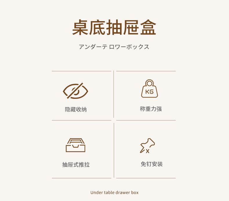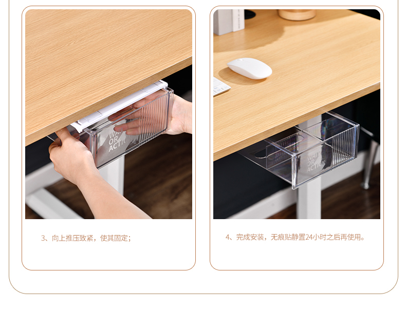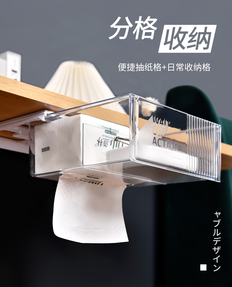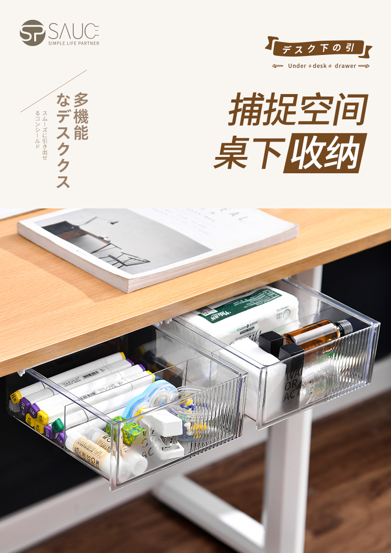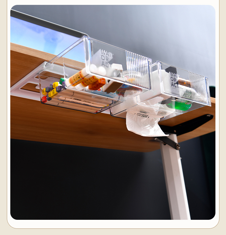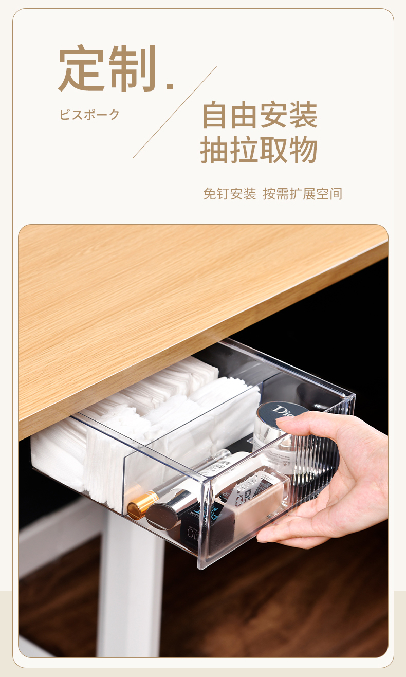 D桌底抽屉盒 桌底抽屉式收纳盒悬挂纸巾盒桌下杂物收纳盒